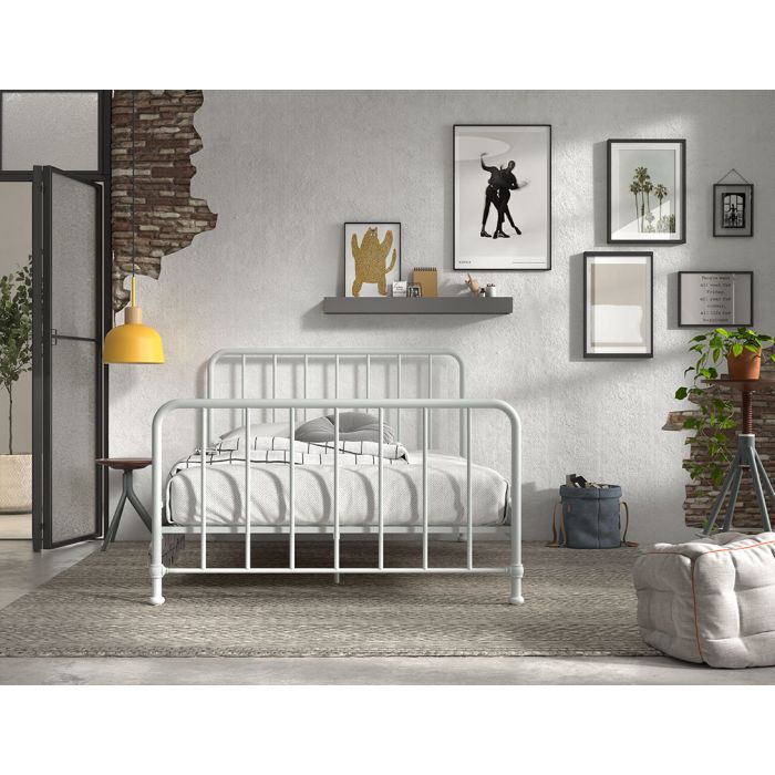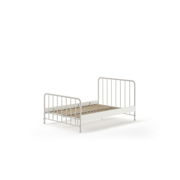 The BRONXX bed is a metal bed measuring 140 x 200 cm. The matte white finish gives the industrial design an extra boost. The slatted base is included.