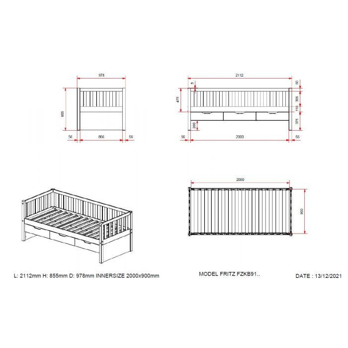 This captain bed (90x200) from the FRITZ collection is made out of solid pine and has slatted design at back and sides. The bed has 3 drawers for extra storage space. The minimalistic yet trendy design makes it perfect for every interior.