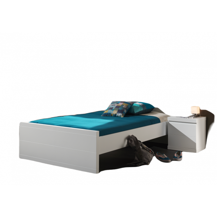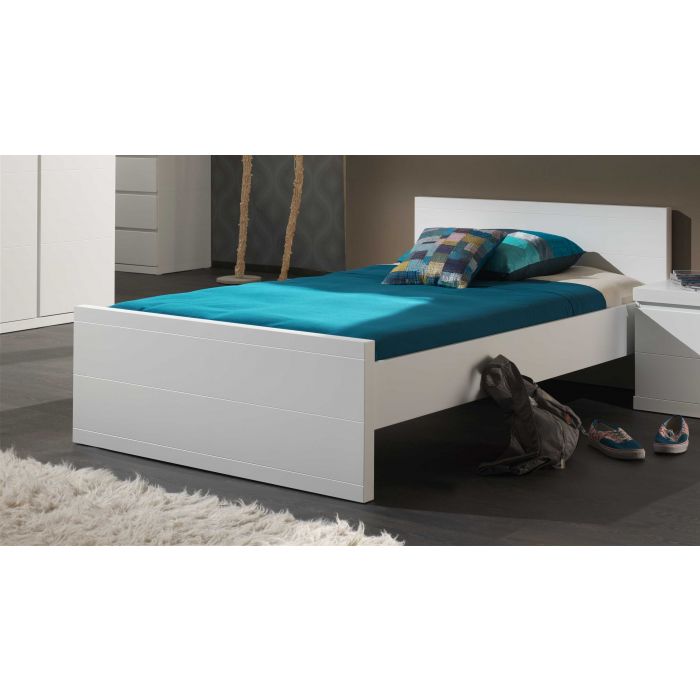 This single bed (120x200) from the LARA collection is made out of white lacquered MDF in combination with solid pine. The head and foot of the bed have horizontal grooves.