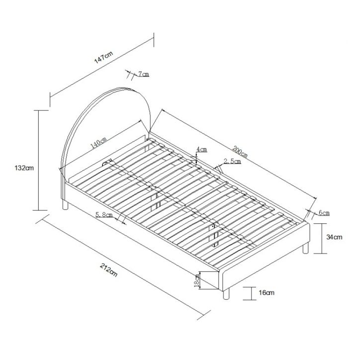 Moon bed 140x200 grey