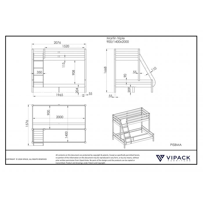 This Pino family bed is made of massive scandinavian pine and is naturally lacquered. The upper bed of this family bed is 90 x 200 cm and the lower bed is 140 x 200 cm.