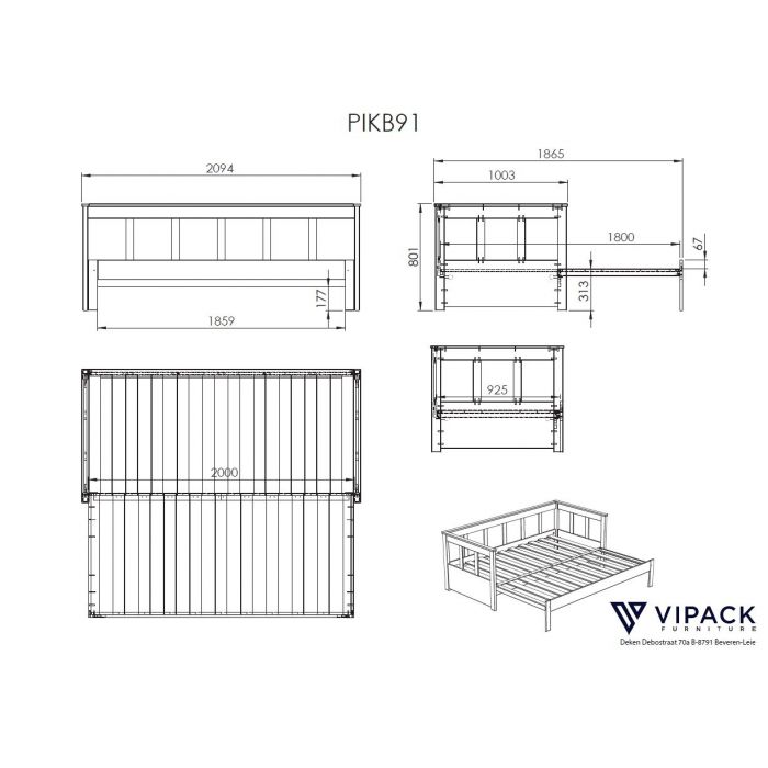 pine wood. The slatted base is included and is suitable for a mattress of 90 x