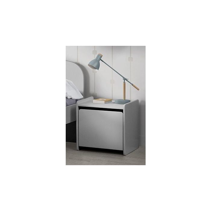 This KIDDY bedside table in grey is the perfect finishing touch for every kids bedroom. The night stand is compatible with the beds from the same collection an is made out of lacquered MDF. It has 1 door with plenty of storage room inside.
