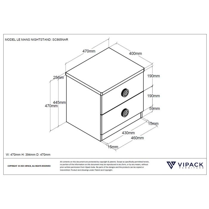 This MONZA night table is made of red lacquered MDF. This night table has 2 drawers that have a soft-close system. The drawers have a small car tire as a handle.