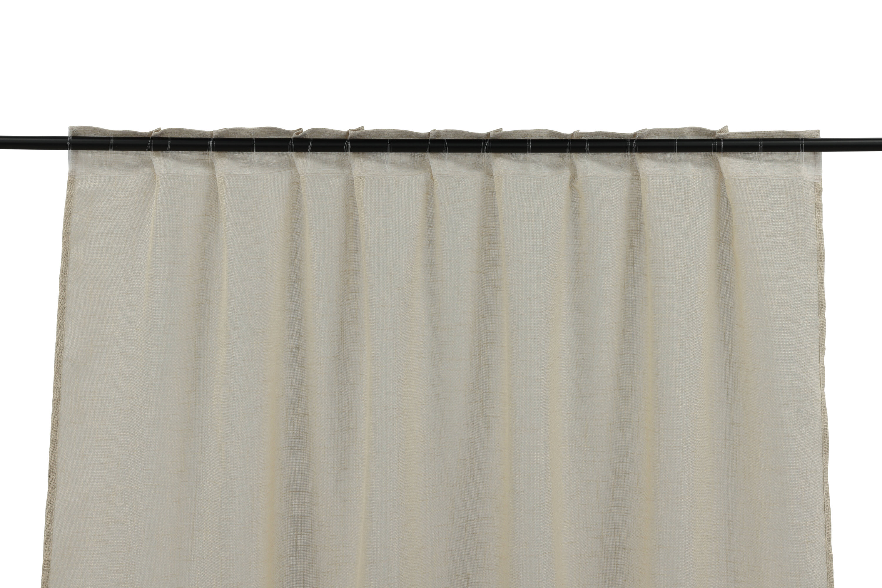 Une longueur de rideau de couleur beige qui a un tissu fin, en polyester et mesure 140x240 cm. Il dispose d'un multi-bande qui vous donne la possibilité de varier votre suspension, soit des crochets à aiguille, des anneaux et accrochés à la barre. Un conseil pour obtenir des étuis plus fins est d'utiliser un cuiseur vapeur lorsque vous accrochez les rideaux de lin sur le bar. Le vaporisateur combine la chaleur avec la vapeur et rend les rideaux plus conformes. Contient 2 rideaux.
