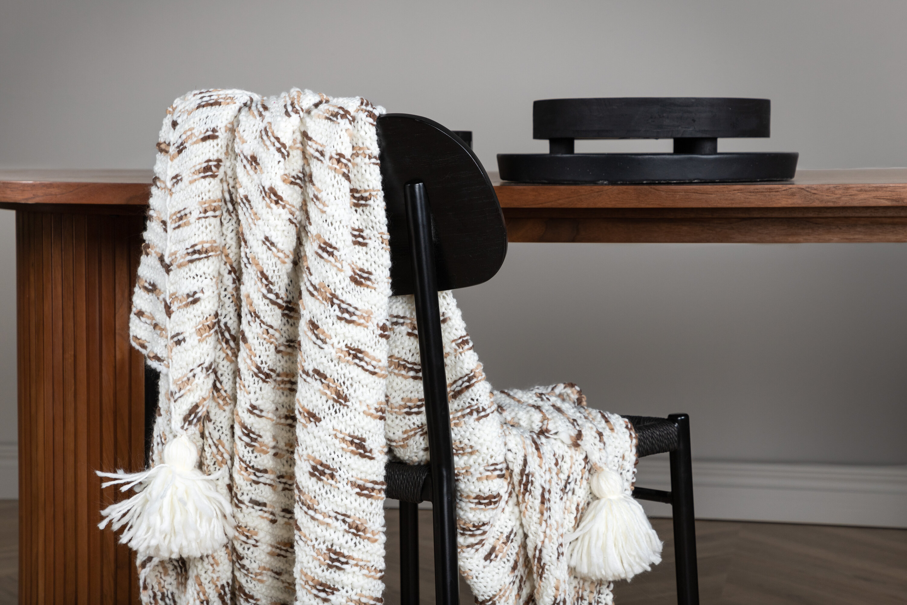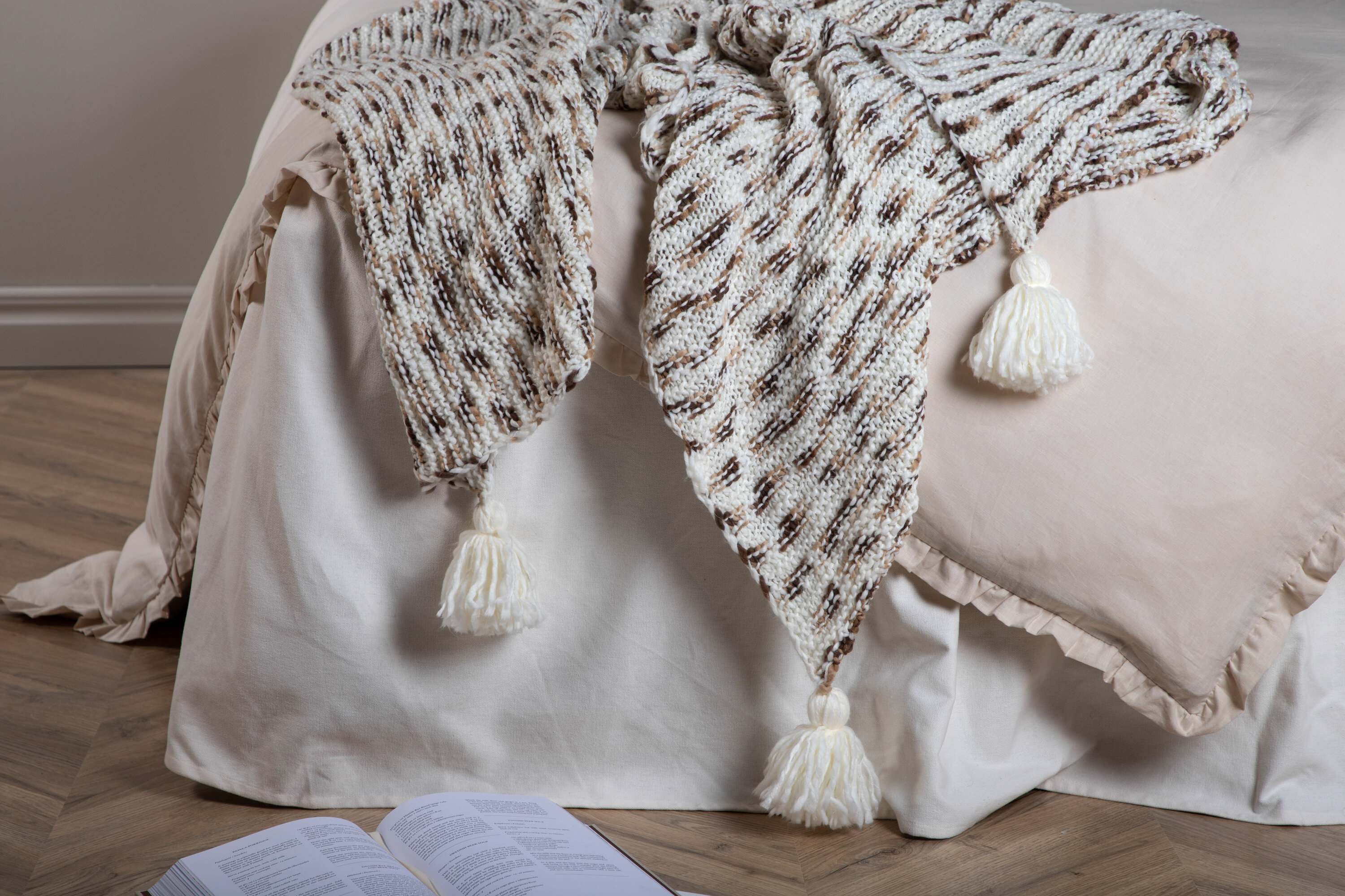 Unny est en acrylique et avec son jeu de couleurs agréable et ses pantoufles décoratives, c'est la couverture parfaite pour ceux qui veulent pimenter avec un plaid confortable et élégant ! À utiliser comme décor sur le lit ou sur le canapé pour une impression de confort. Enveloppez-vous et profitez d'une belle soirée sur le canapé avec vos proches !
