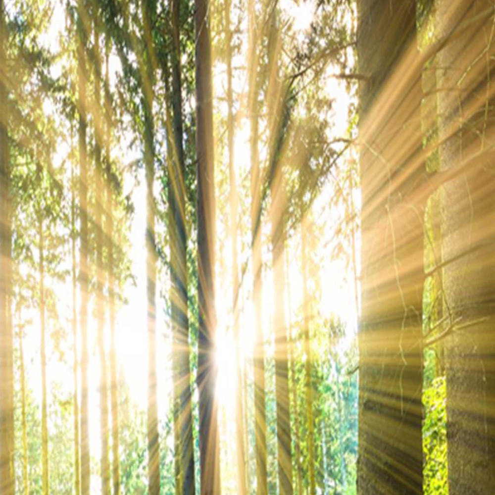 Paravent à deux faces 180 cm fabriqué en mdf et toile avec image de rayons de soleil dans la forêt