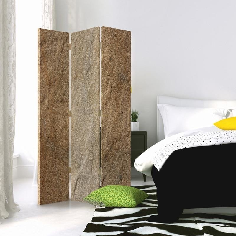 Paravent de couleur beige avec dessin imitation grès fabriqué en bois et toile