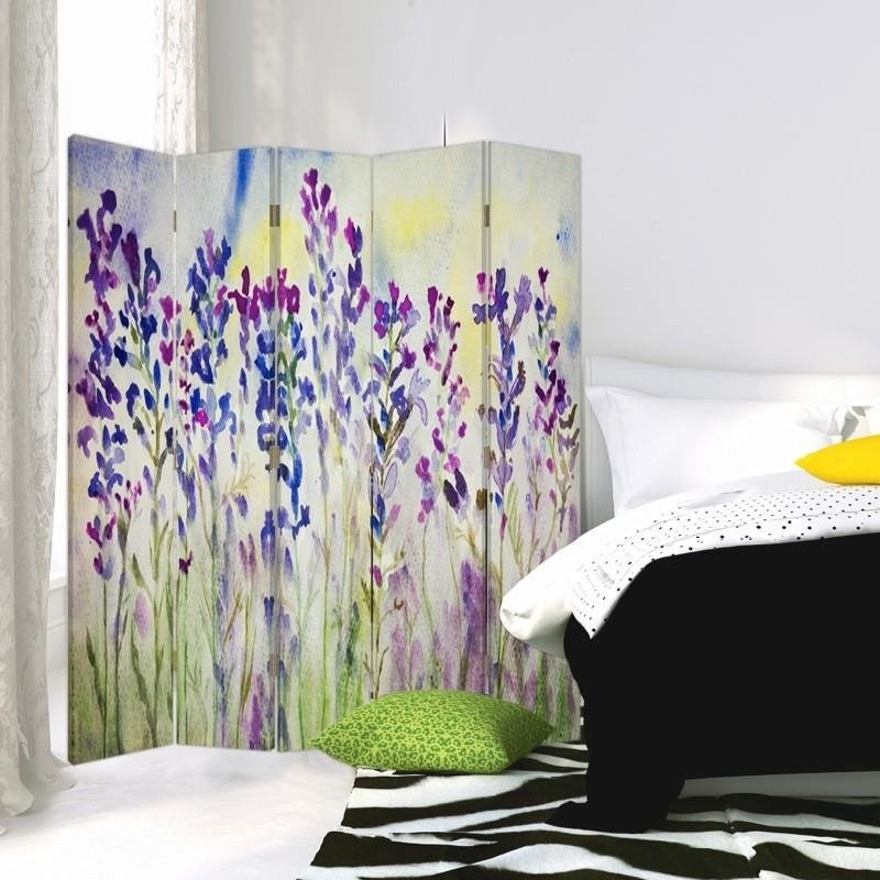 Paravent pliable composé de cinq parties fleurs peintes sur fond blanc