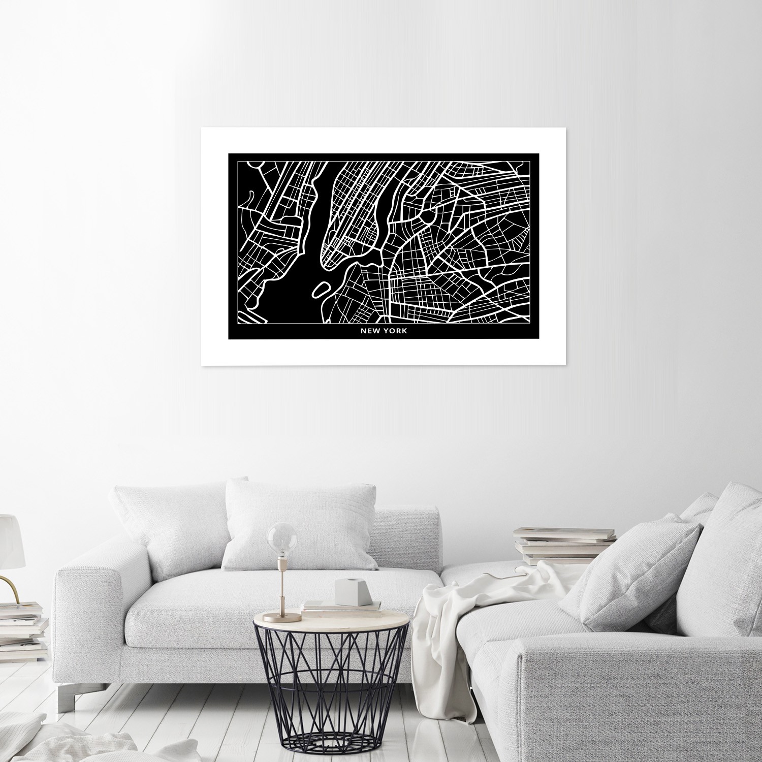 Poster mural avec image d'une carte de new york finition noir et blanc