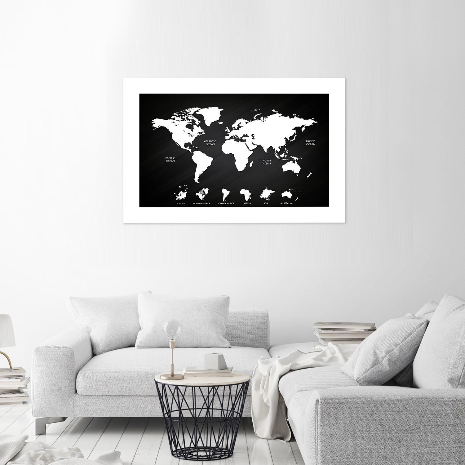Poster mural en papier premium avec image de mappemonde noir et blanc