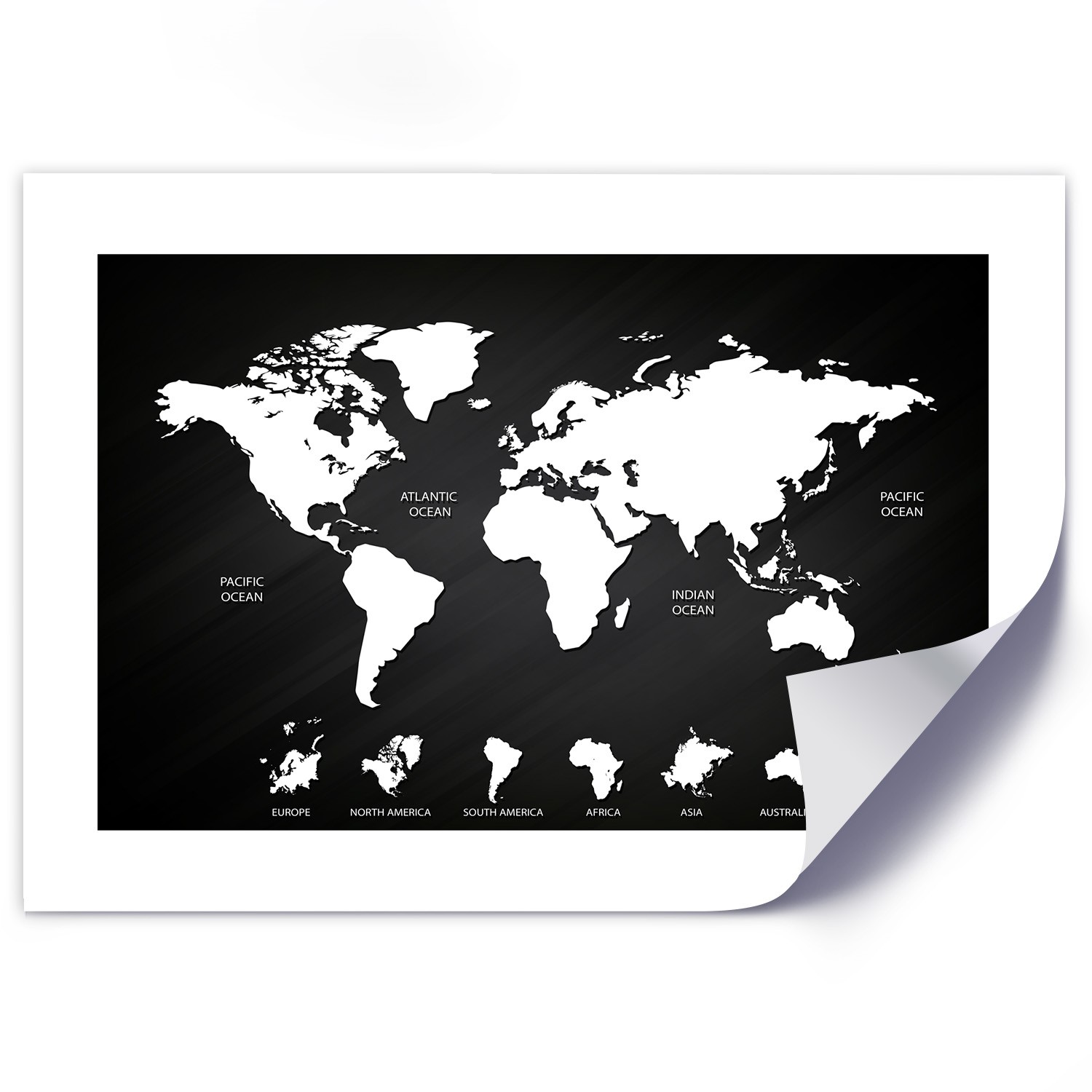 Informations sur le produit "Poster mural en papier premium avec image de mappemonde noir et blanc"