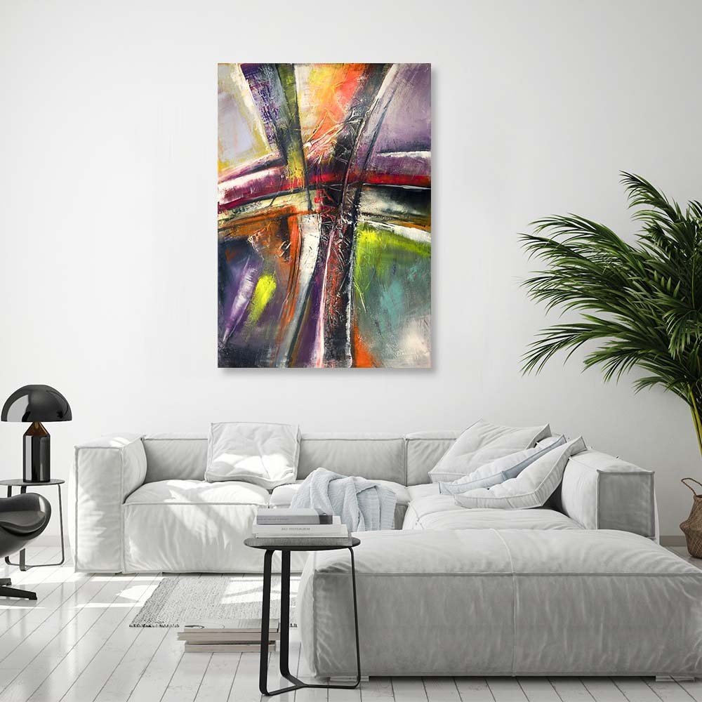 - Cadre avec toile imprimée. Motif : dessin abstrait coloré.