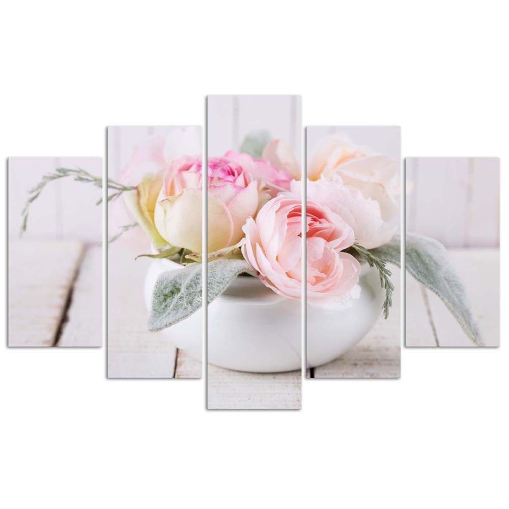 - Cadre composé de cinq pièces « roses dans un vase blanc » imprimé sur toile en MDF (fibre de densité moyenne).