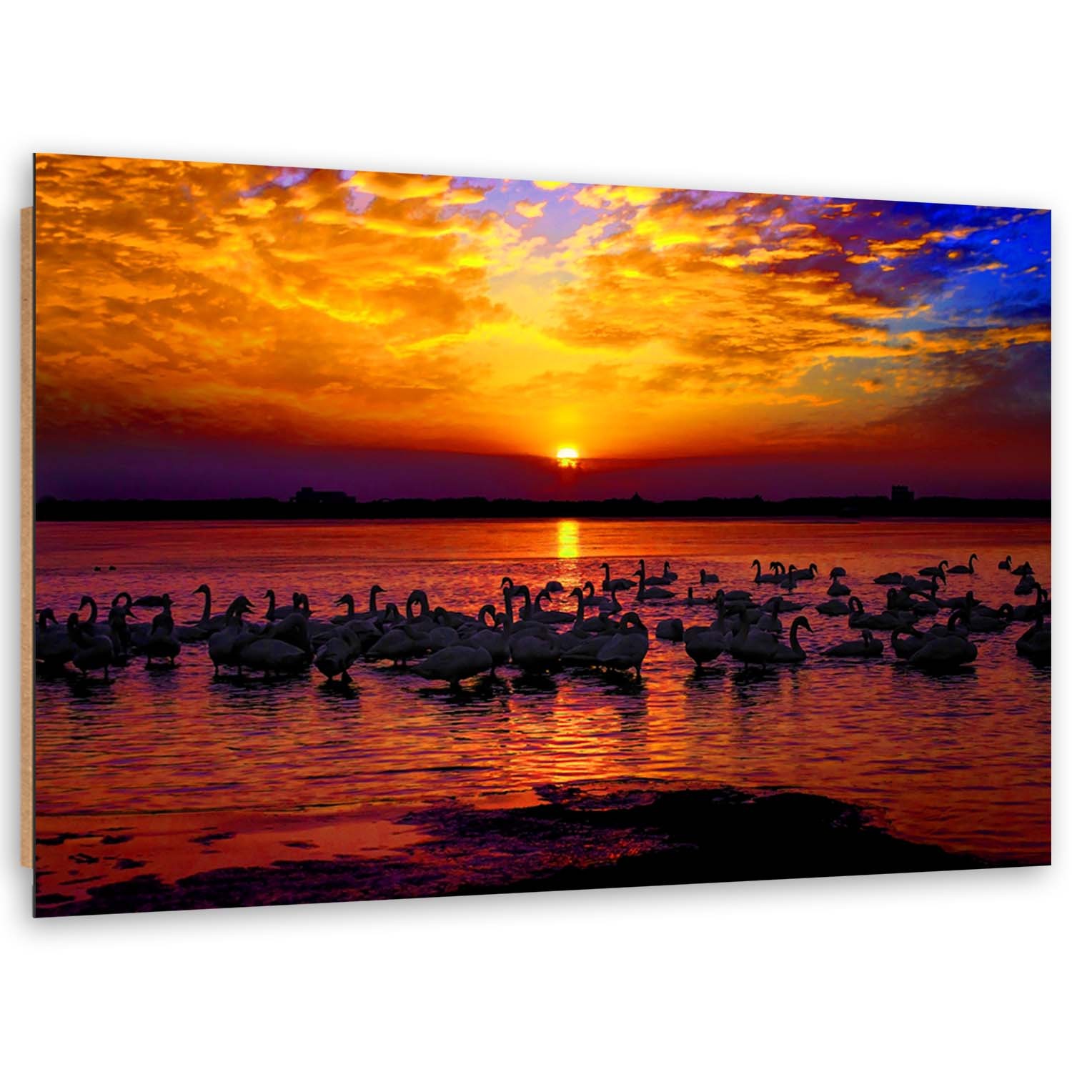 Cadre décoratif avec image de cygnes imprimée sur papier avec encadrement en mdf orange