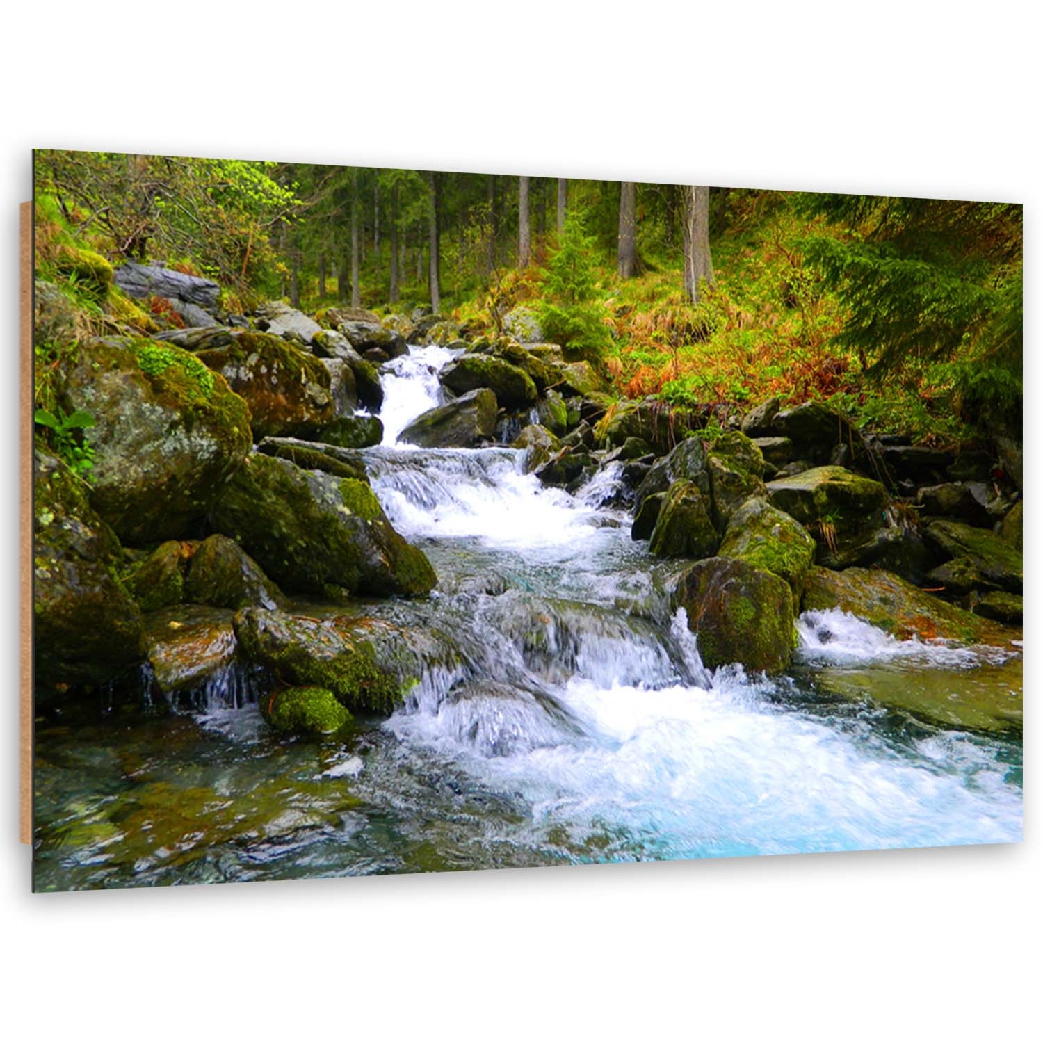 Cadre décoratif avec image de rivière de montagne imprimée sur papier avec encadrement en mdf vert