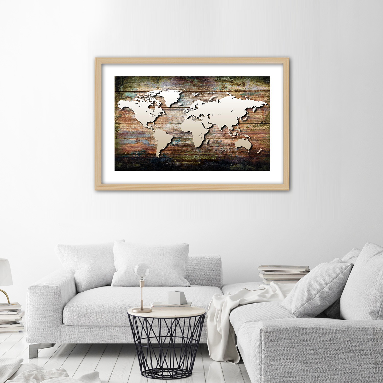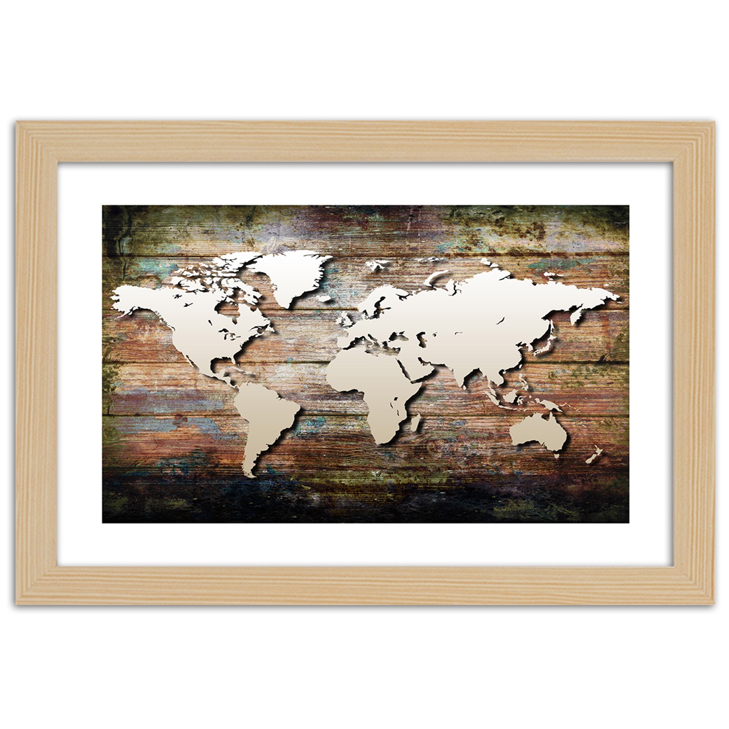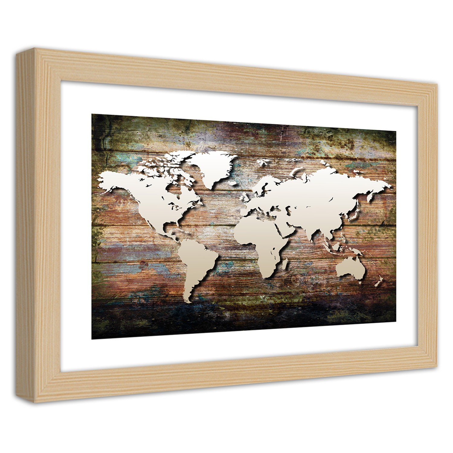 Informations sur le produit "Cadre imprimé sur toile avec illustration de carte du monde fabriqué en mdf"