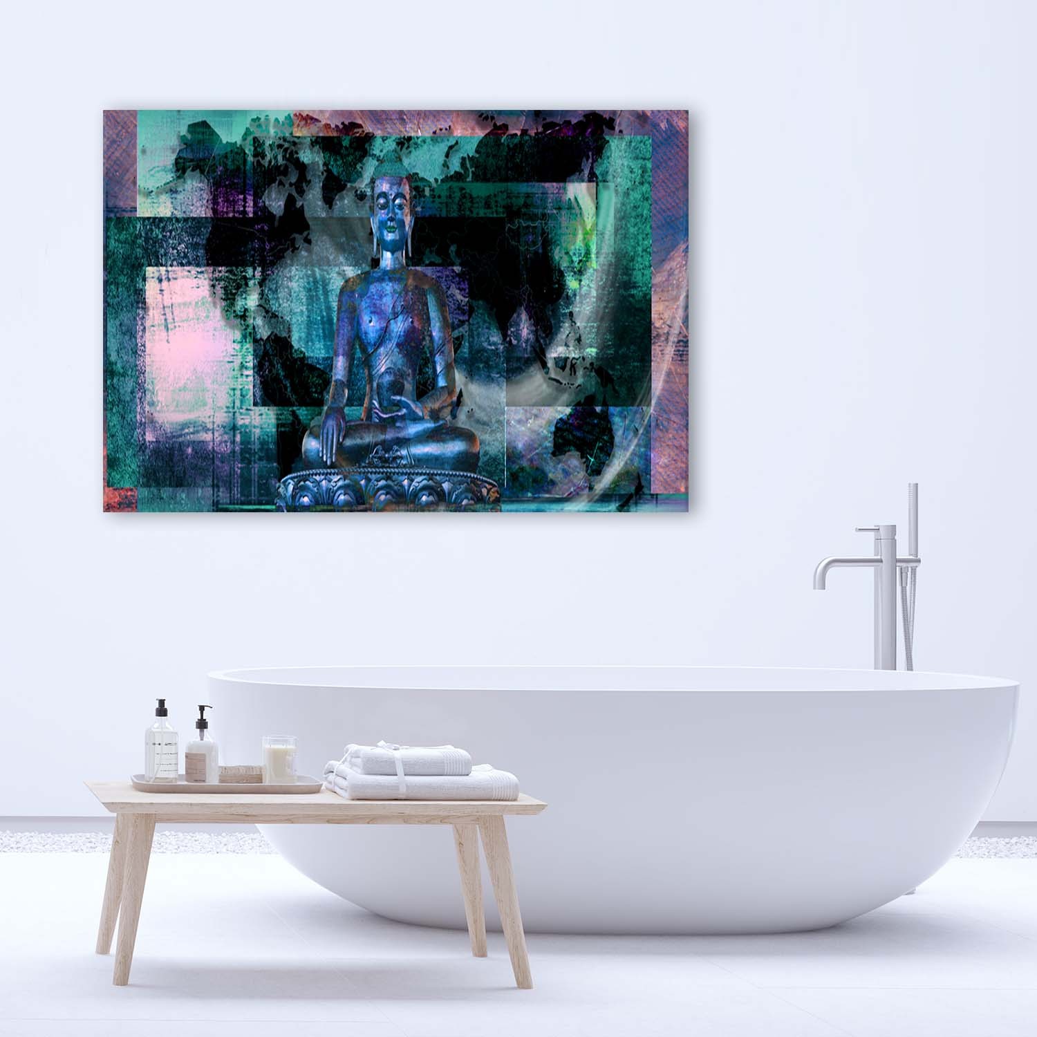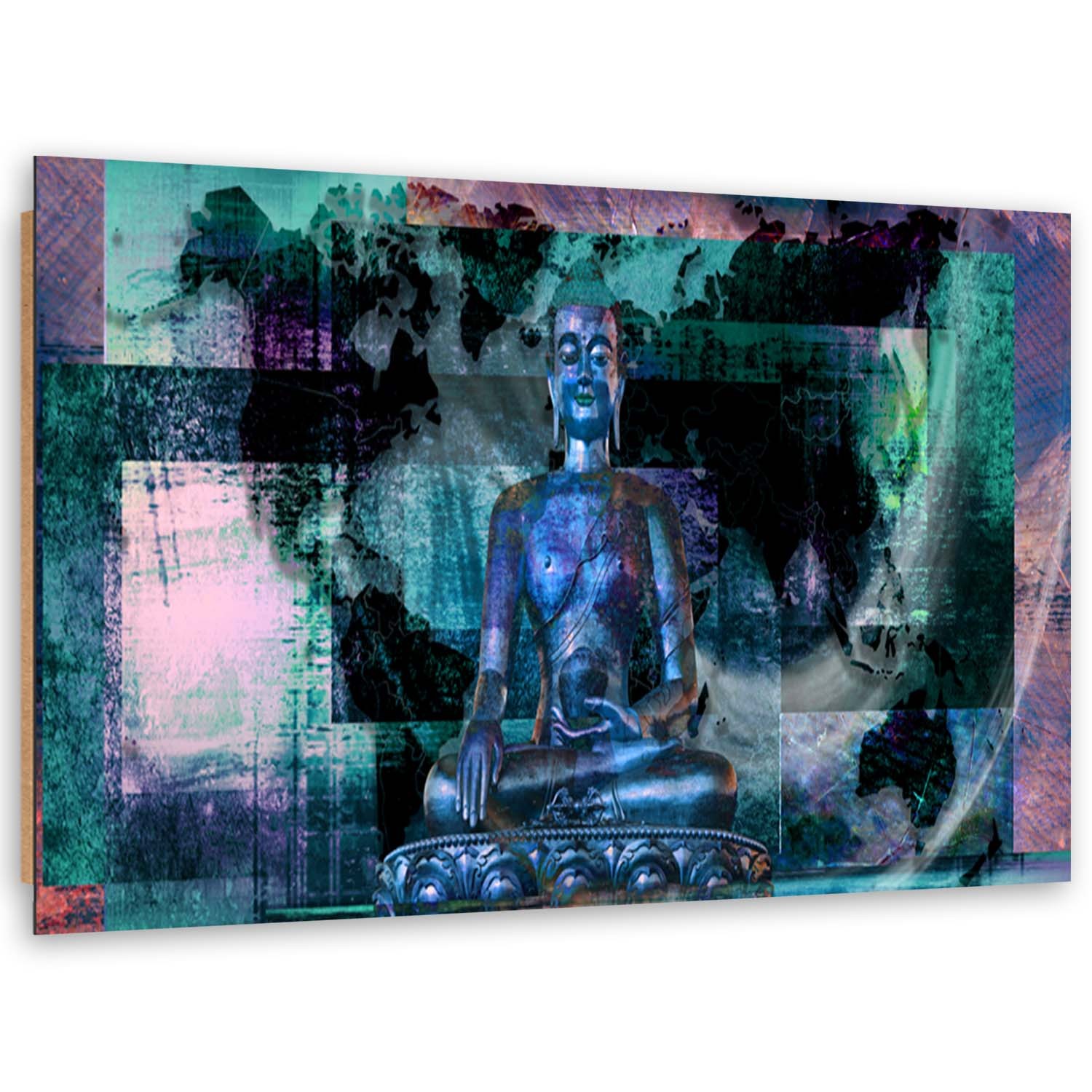 Cadre imprimé sur toile avec image de bouddha sur fond abstrait fabriqué en mdf et toile