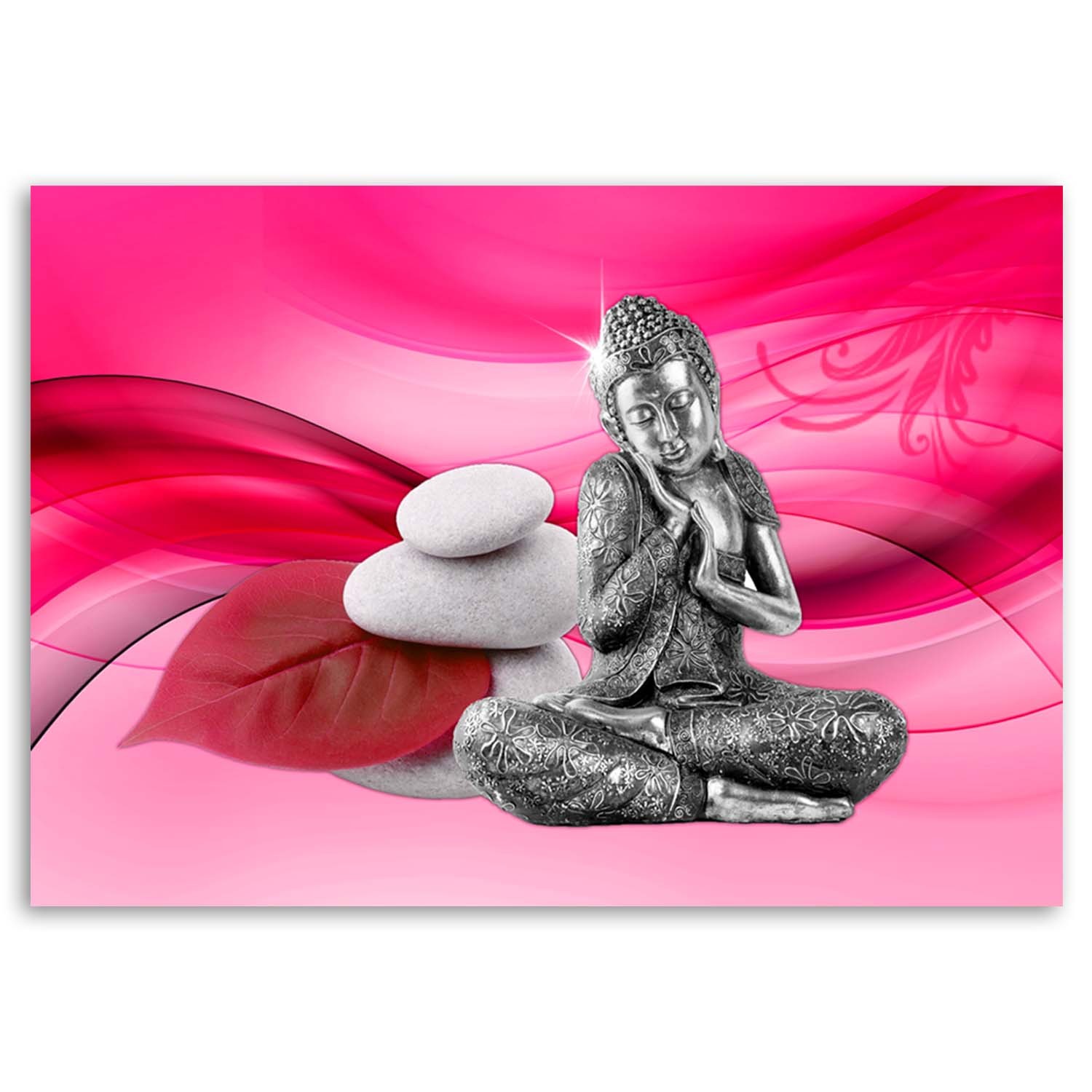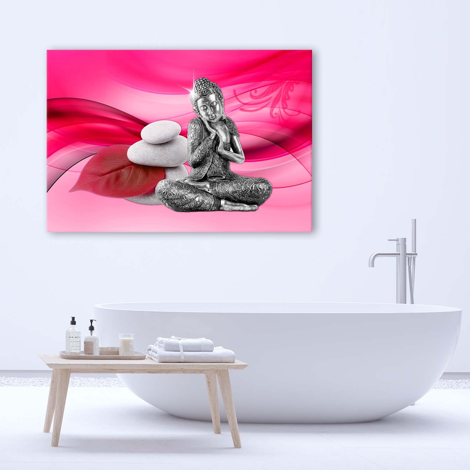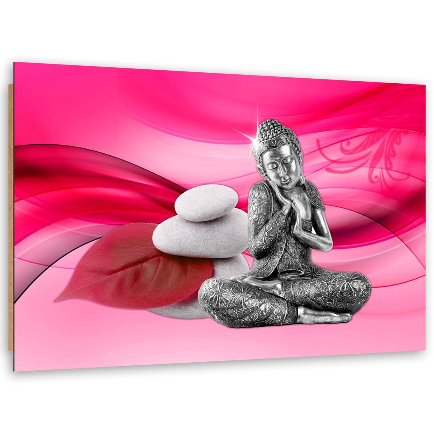 Cadre imprimé sur toile avec image de bouddha sur fond rose fabriqué en mdf et toile