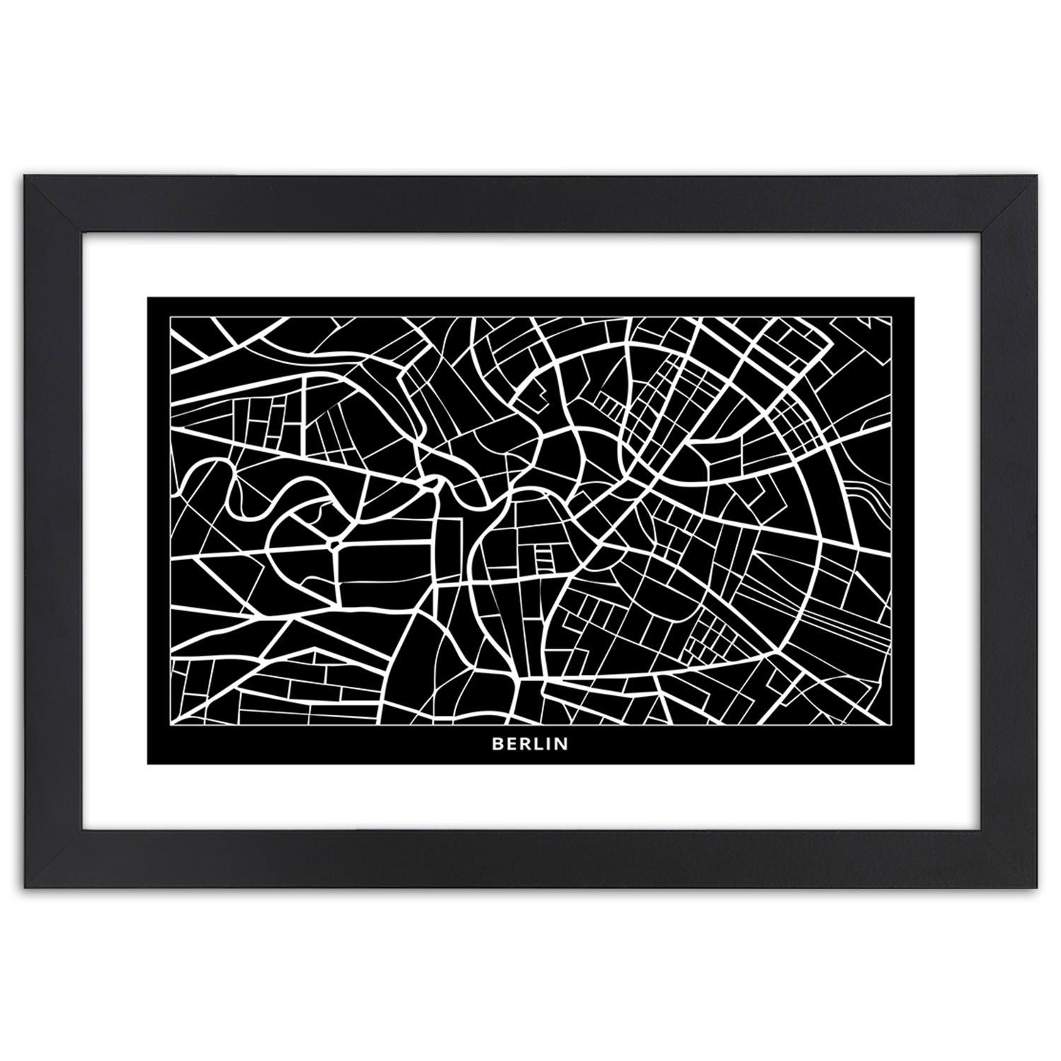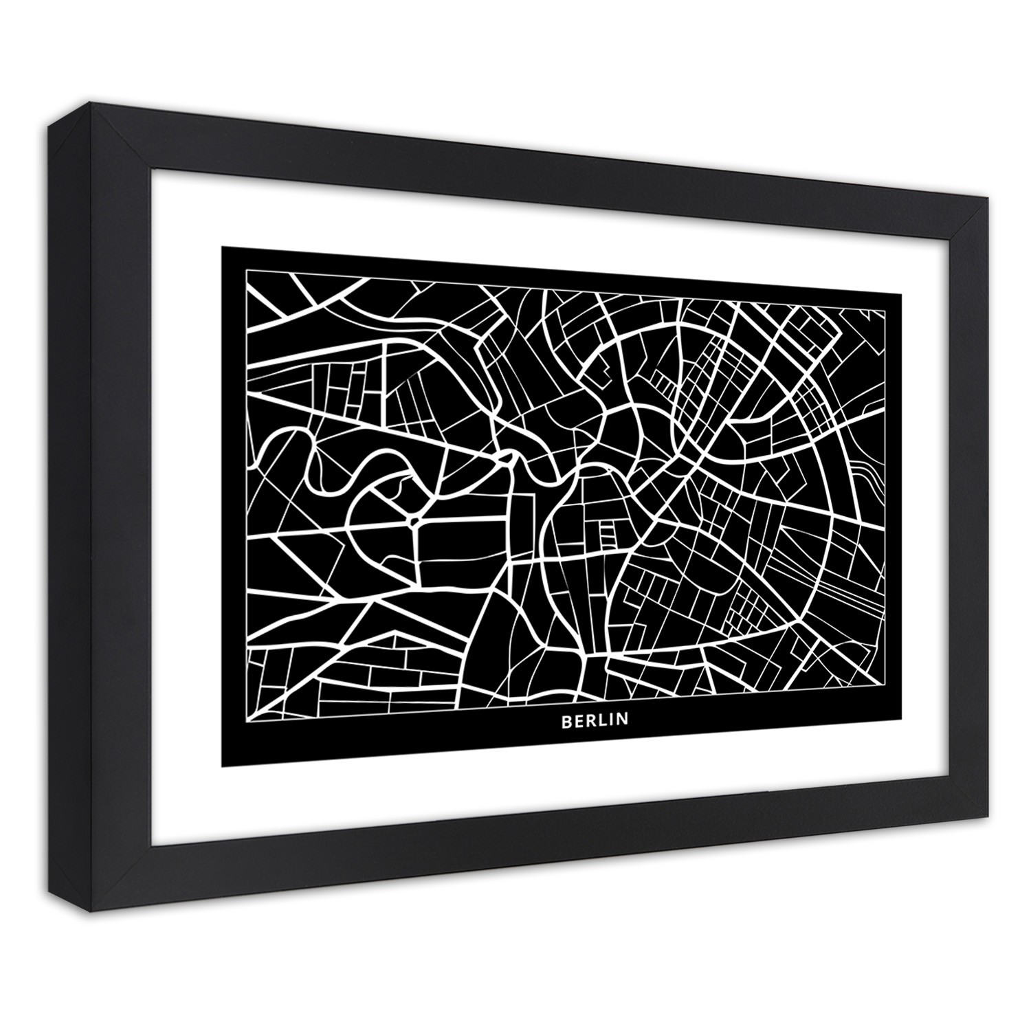 Informations sur le produit "Cadre noir en mdf plaqué avec poster carte de la ville de berlin"