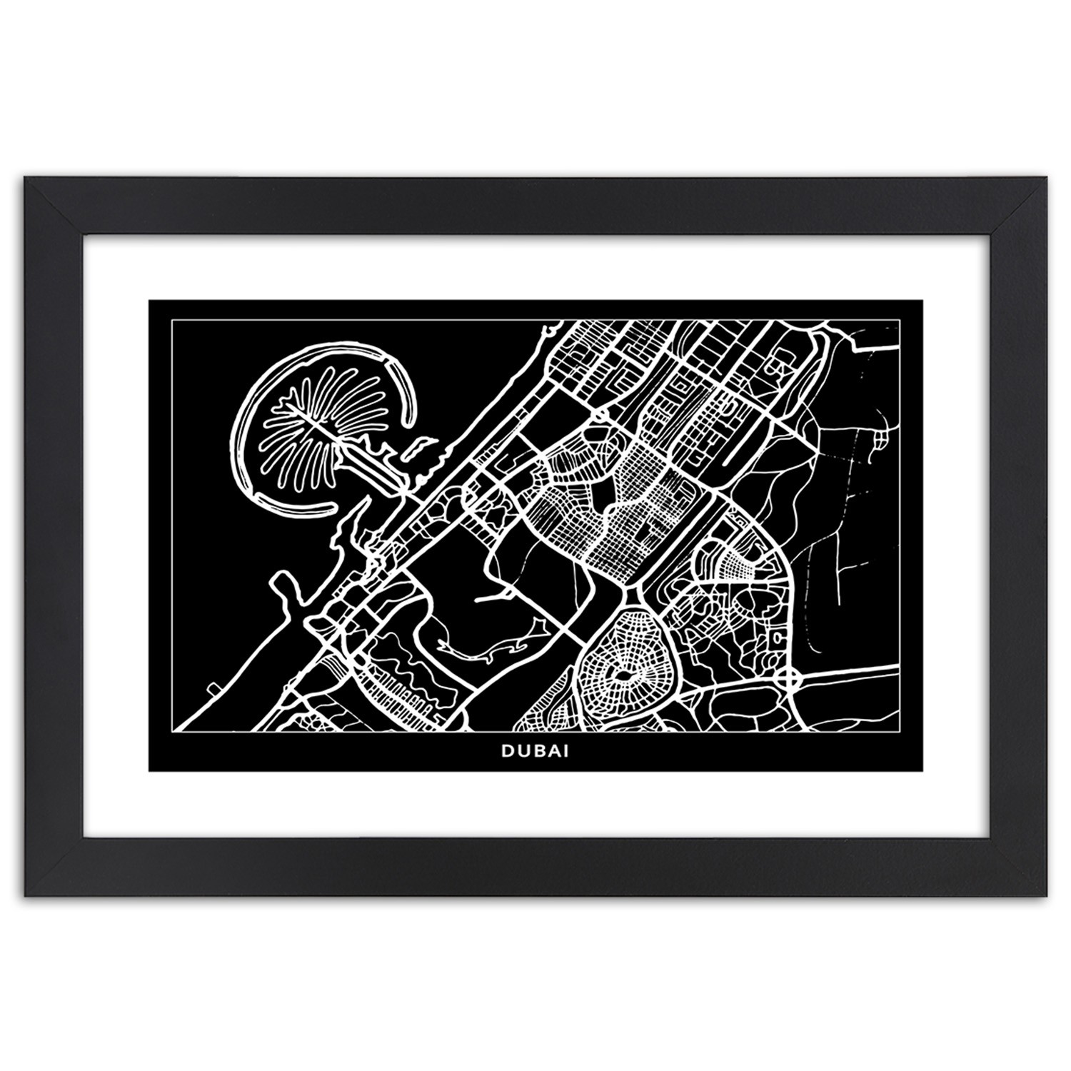 Informations sur le produit "Cadre noir en mdf plaqué avec poster carte de la ville de dubaï"