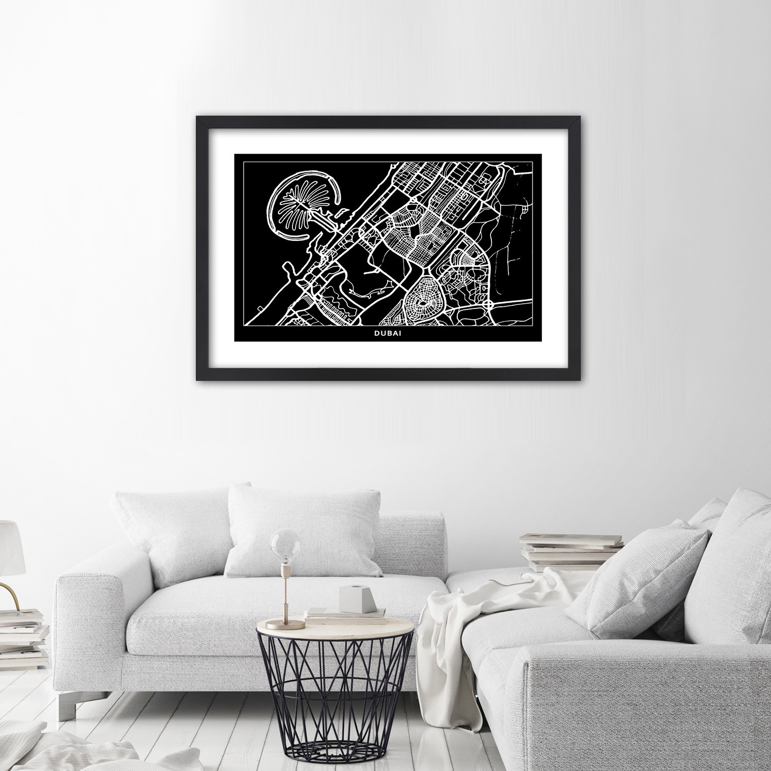 - Cadre créant une ambiance unique, motif : carte de la ville de Dubaï.