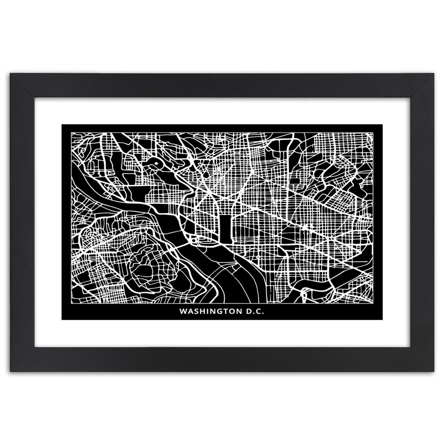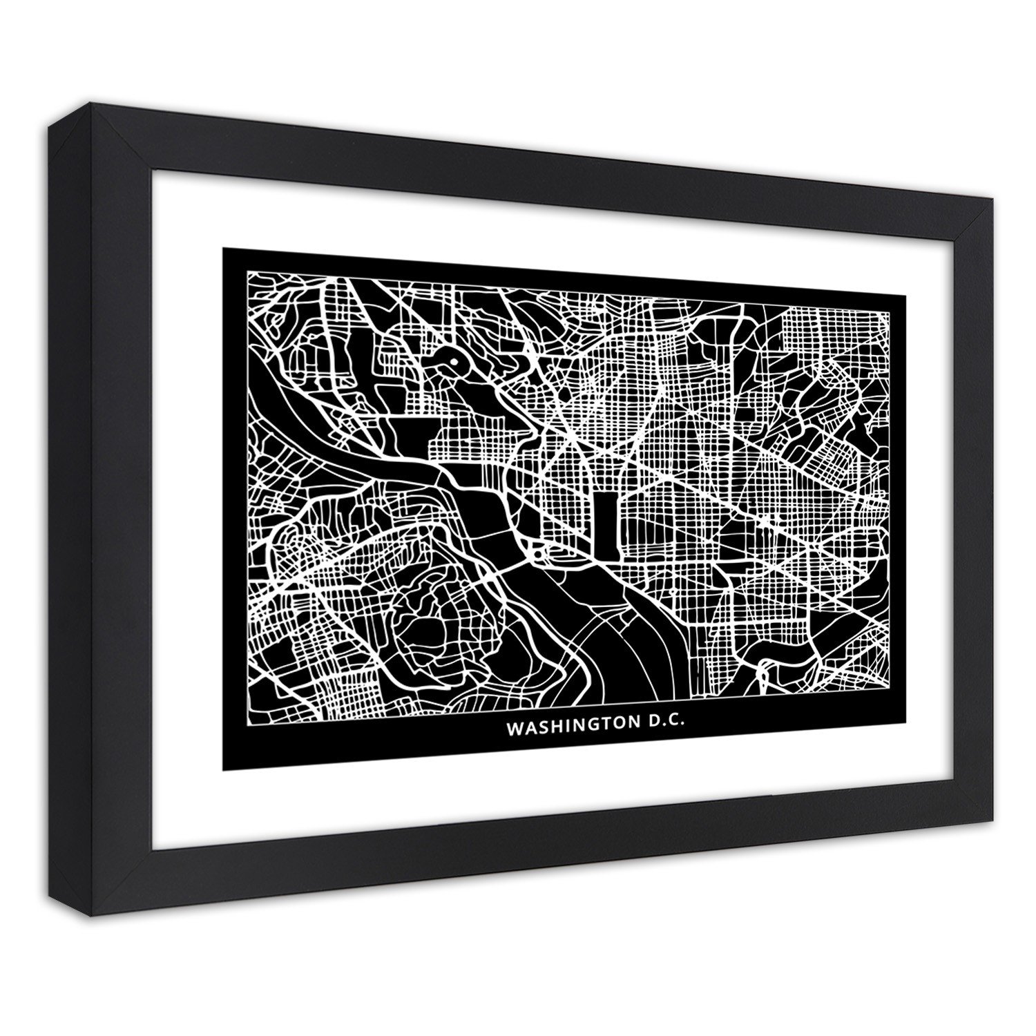 Informations sur le produit "Cadre noir en mdf plaqué avec poster carte de la ville de washington"