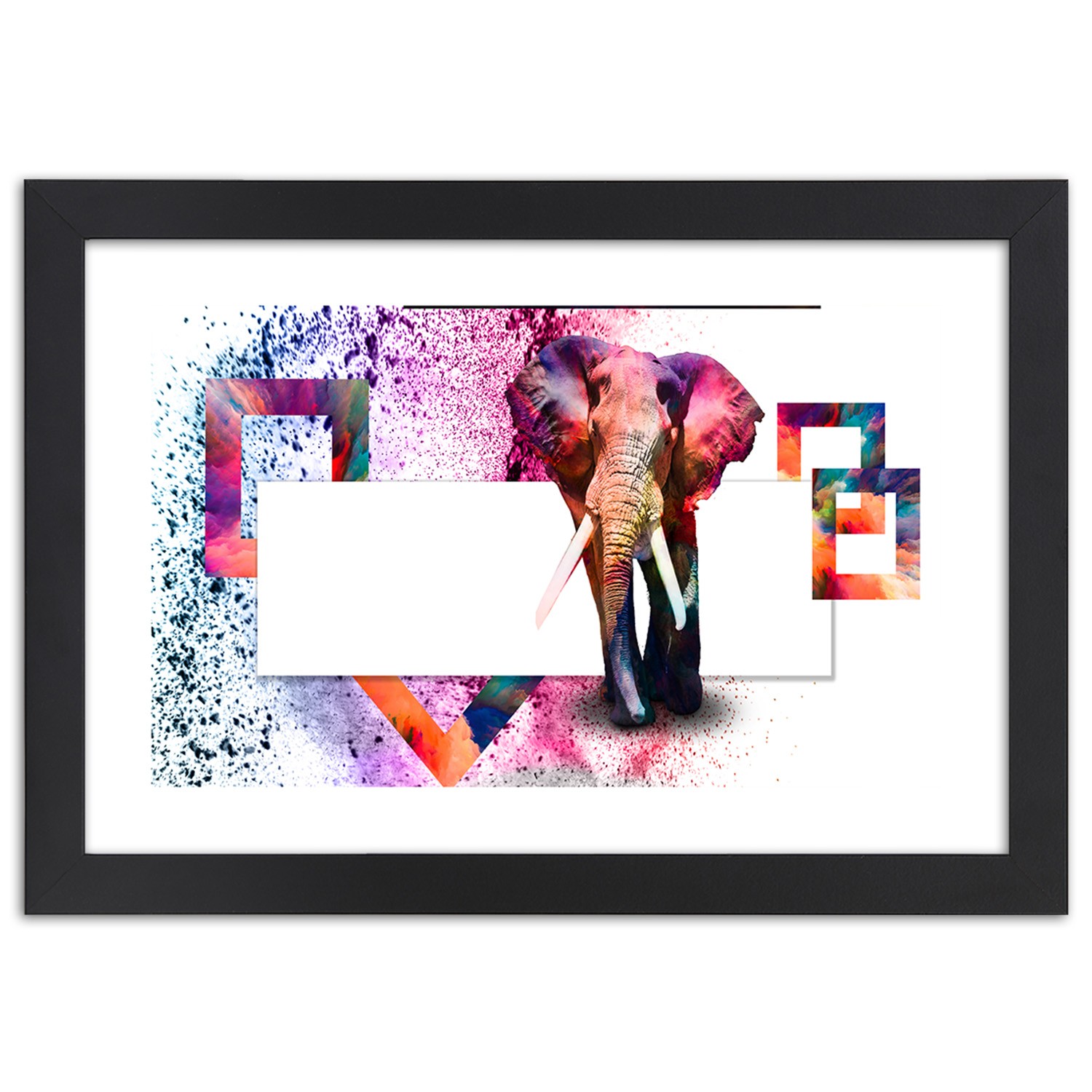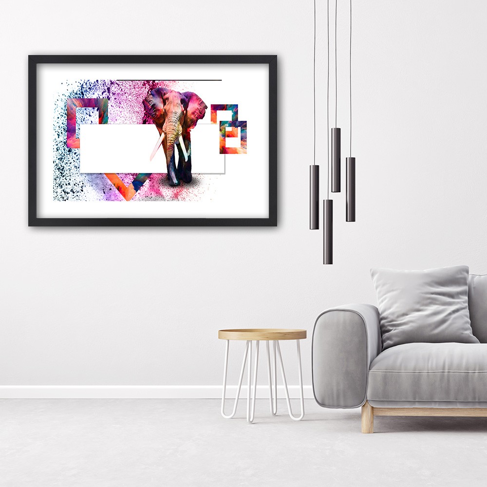 Cadre noir en mdf plaqué avec poster éléphant de couleurs