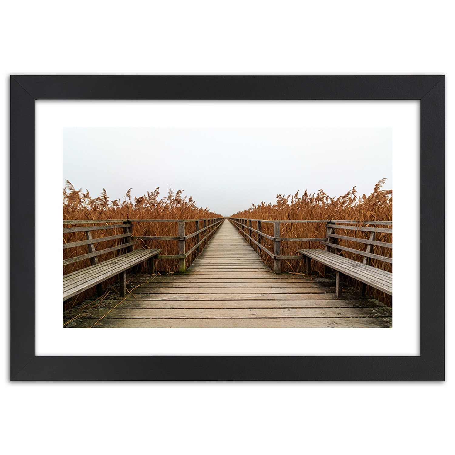 Informations sur le produit "Cadre noir en mdf plaqué avec un poster de la nature et d'un ponton sur le lac"
