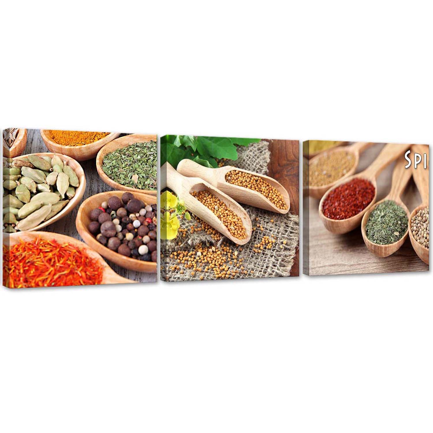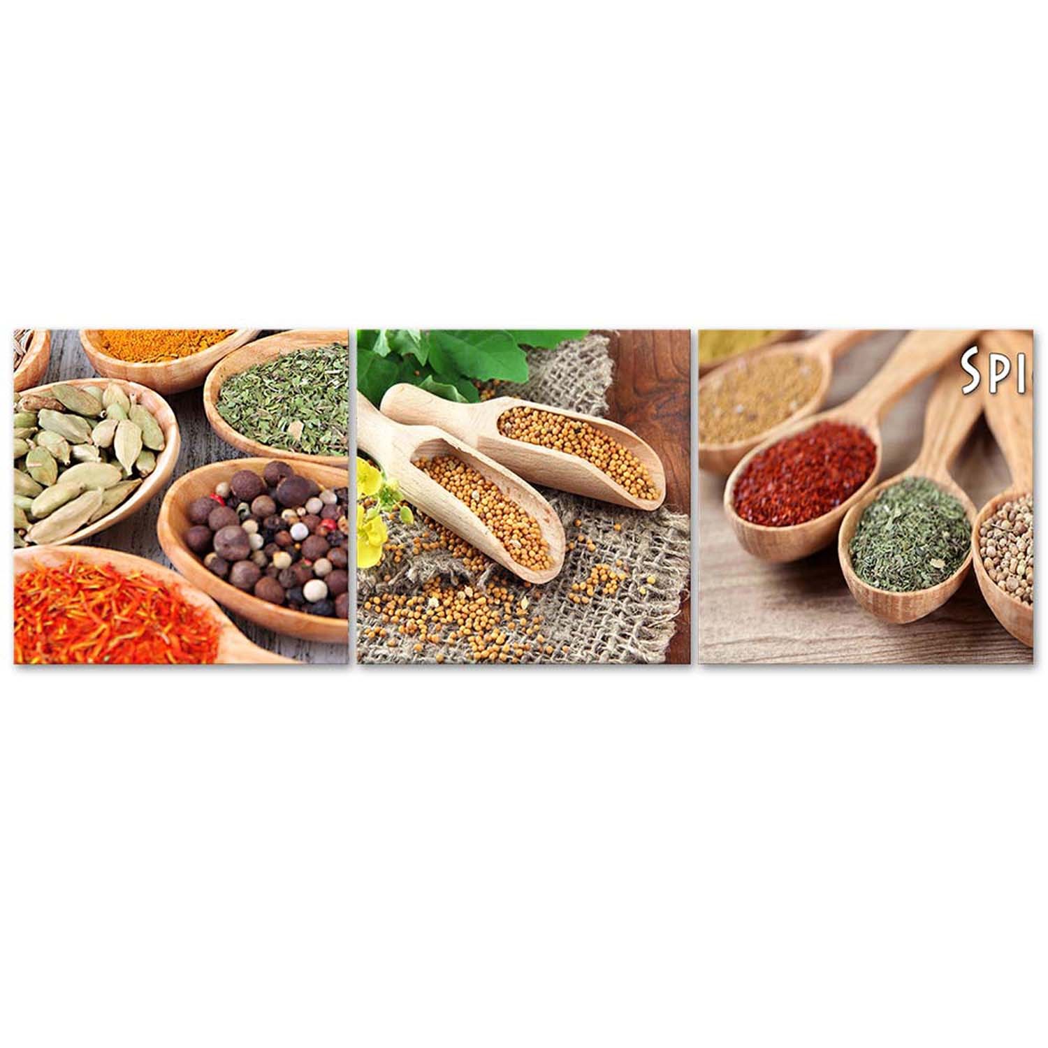 Ensemble de 3 cadres avec image d'épices du monde fabriqué en mdf et toile