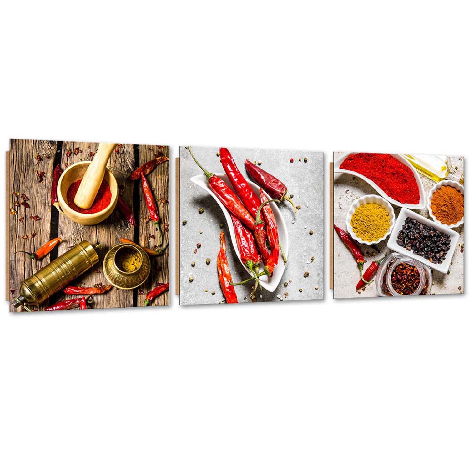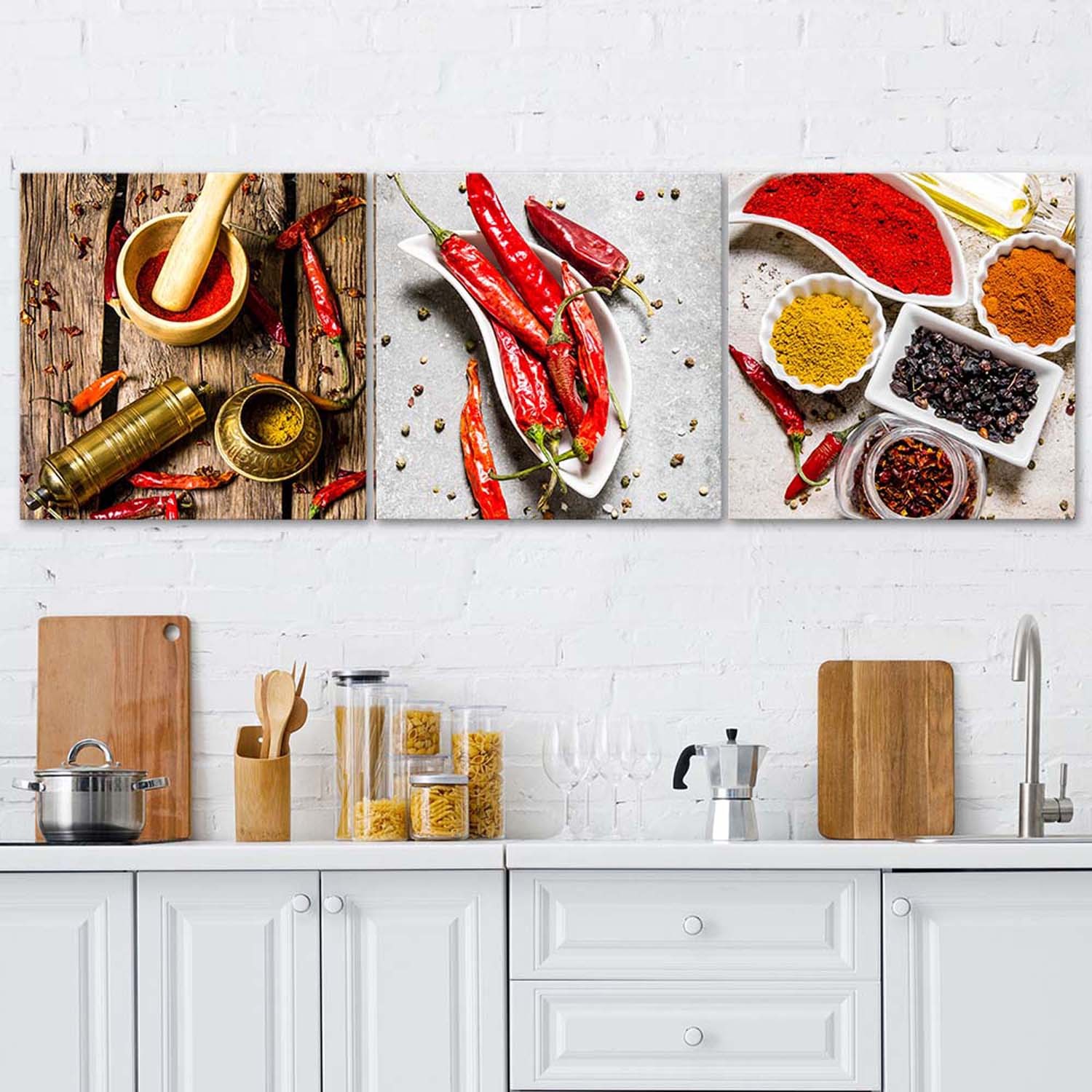 Informations sur le produit "Ensemble de cadres décoratifs panneaux en toile et mdf avec image d'épices piquantes provenant du piment"