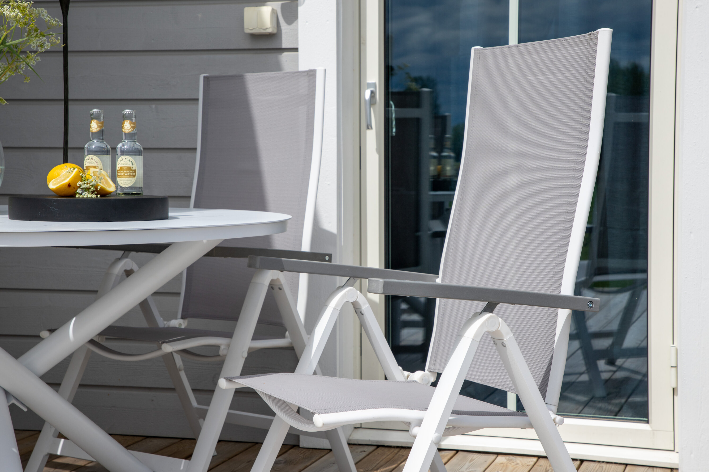 Albany - aussi confortable que pratique et élégant ! Une chaise grise à 5 positions avec un délicieux accoudoir pour plus de confort. Le dossier est pliable pour une commodité optimale. La chaise se porte aussi bien dans le jardin que sur le balcon. Profitez au mieux de l'été !