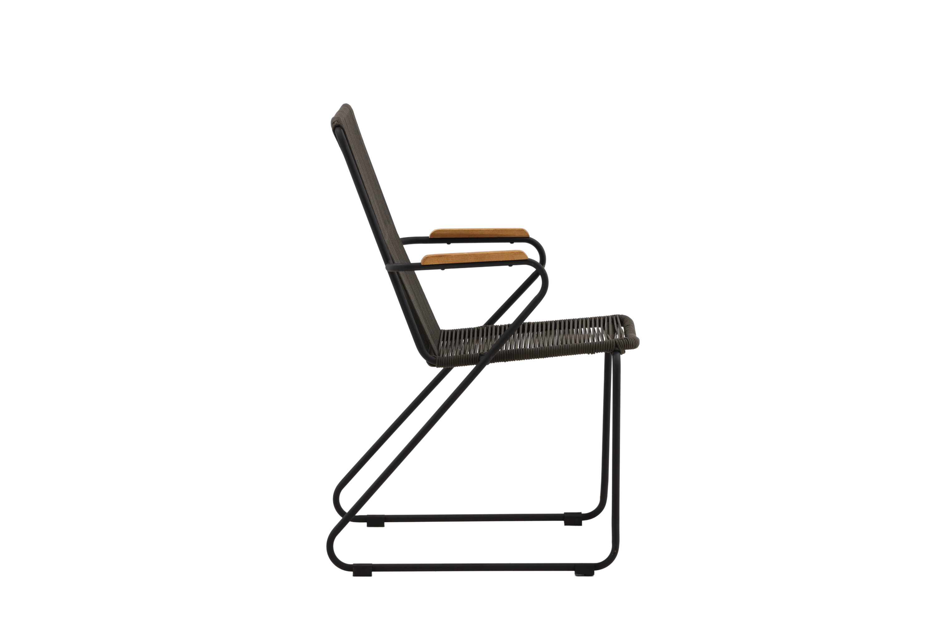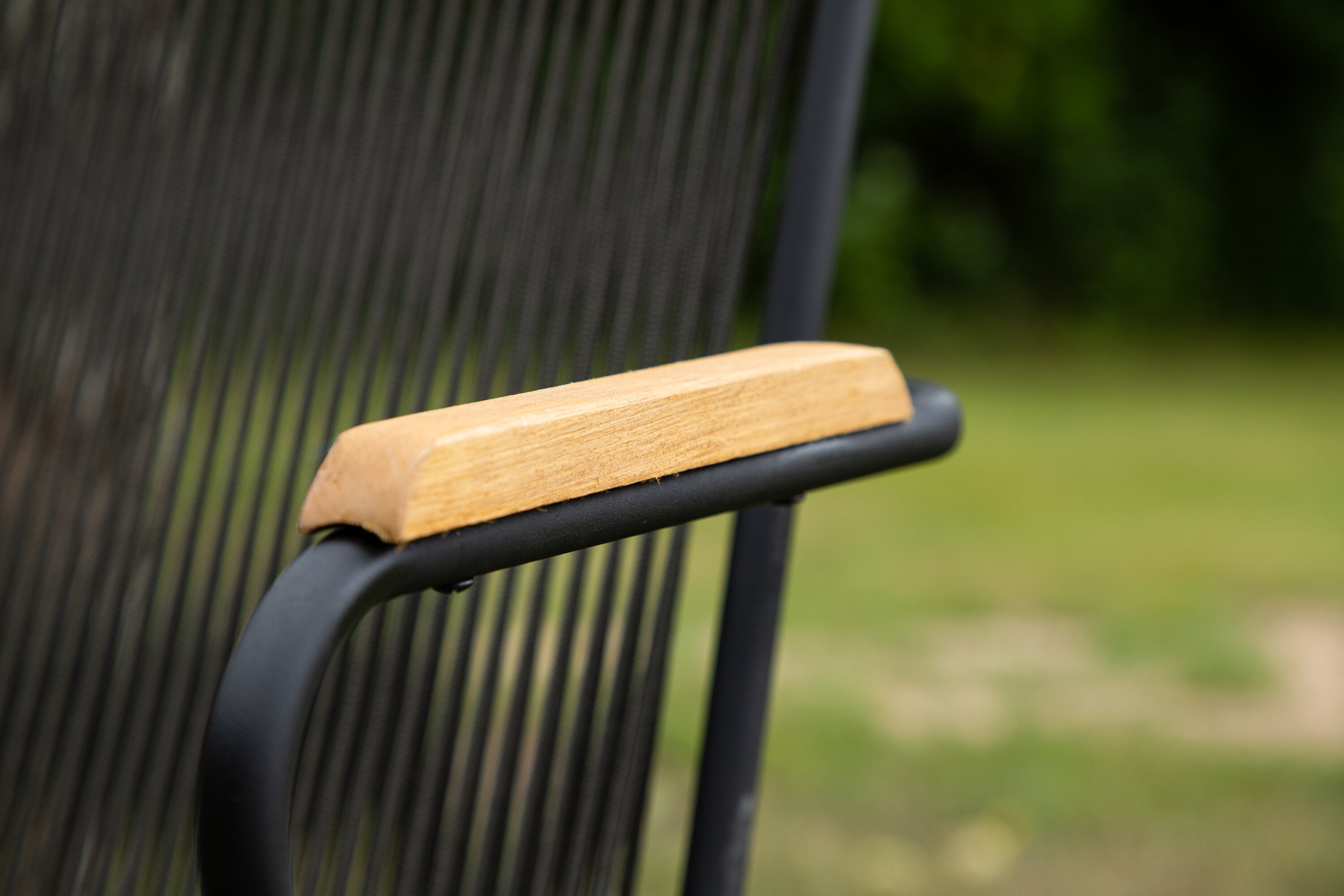 Moderne, élégante et durable - une chaise tendance avec toutes les bonnes fonctionnalités ! Bois a un design confortable avec des accoudoirs en teck et un siège en corde noire. Un meuble qui vous invite à de nombreux moments agréables. Profitez d'un petit supplément de délicieux repas à l'extérieur et meublez le balcon dans un esprit élégant ! La chaise est empilable.