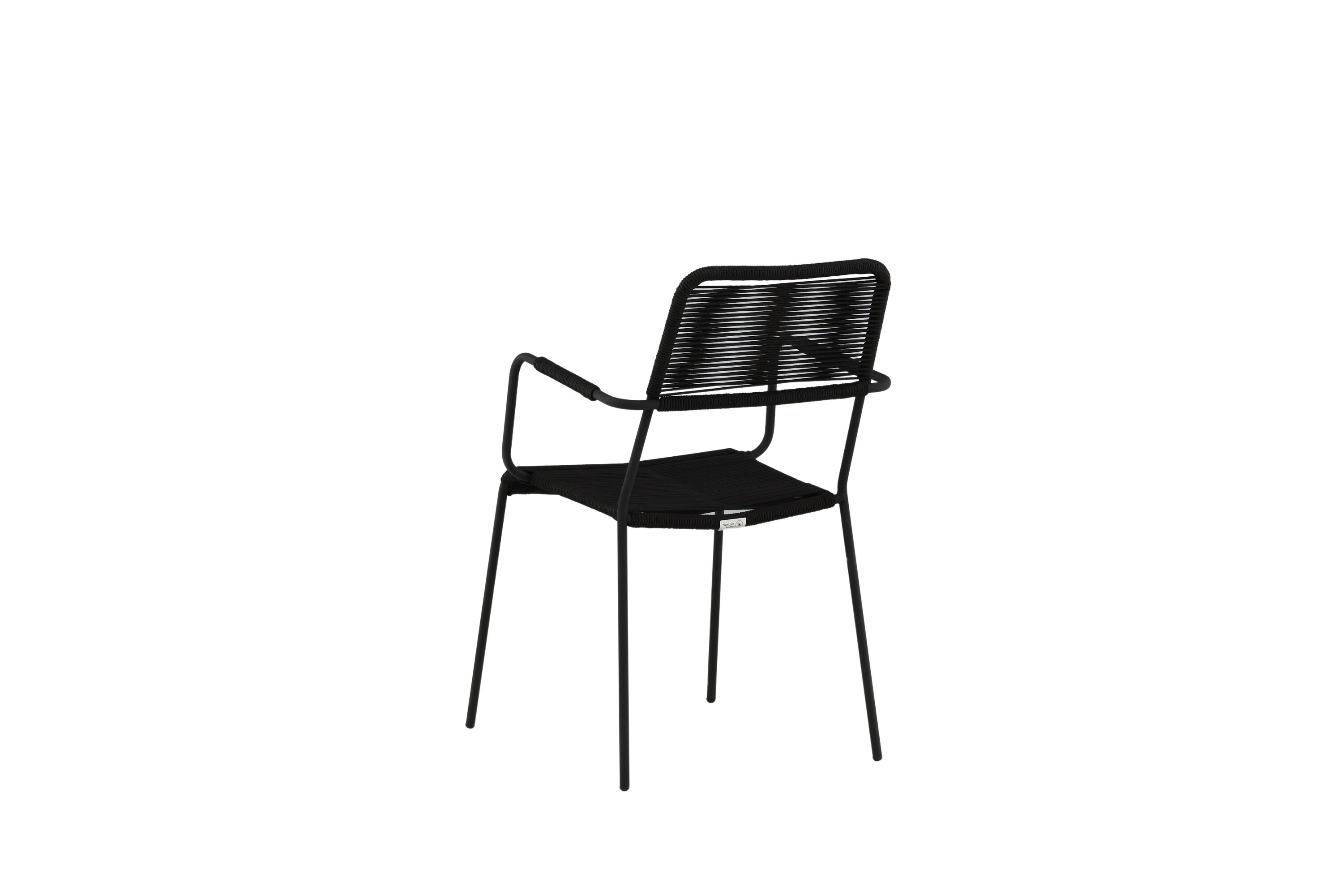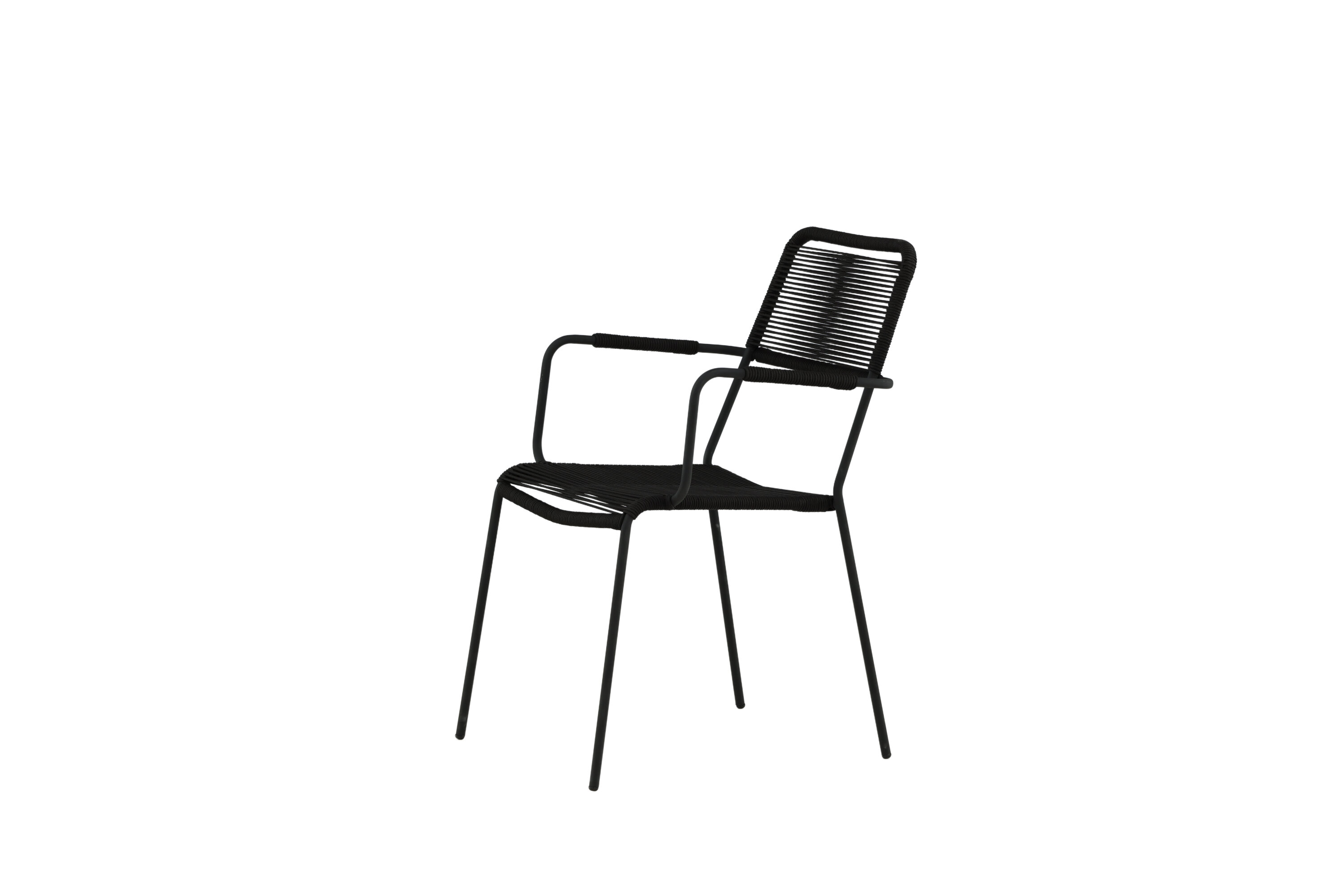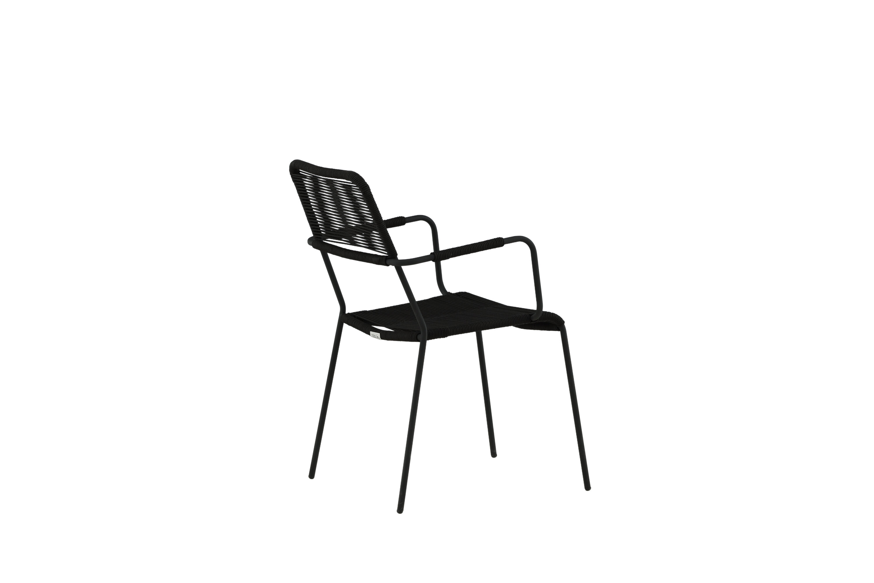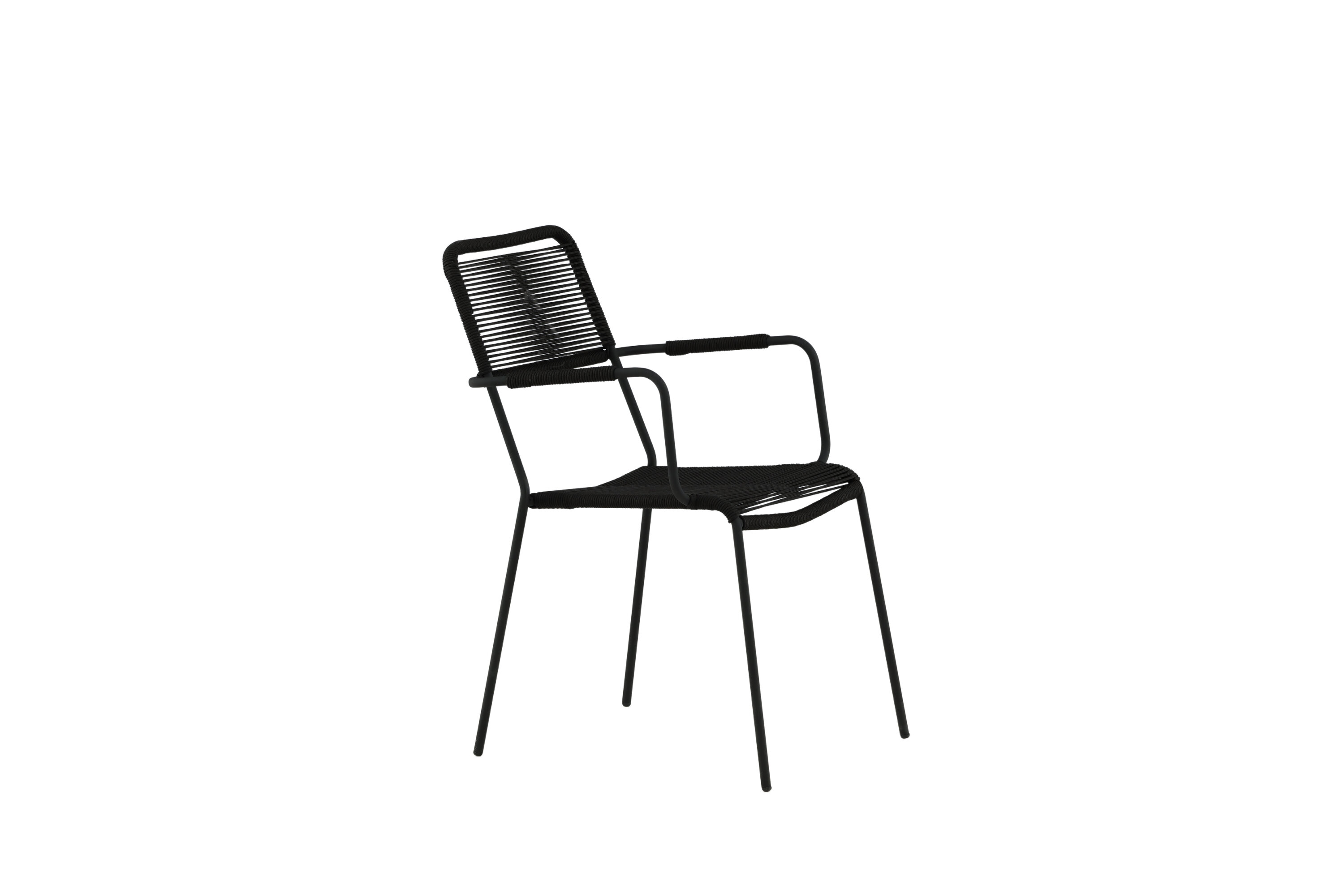 Aménagez le patio moderne avec des chaises de salle à manger élégantes de la série Lindos. Les accoudoirs sont en aluminium noir et le siège en corde tissée noire. Lindos est une véritable icône du design qui s'intègre à la fois dans des environnements classiques et modernes. Invitez à de nombreux moments sociaux à venir ! La chaise est empilable.