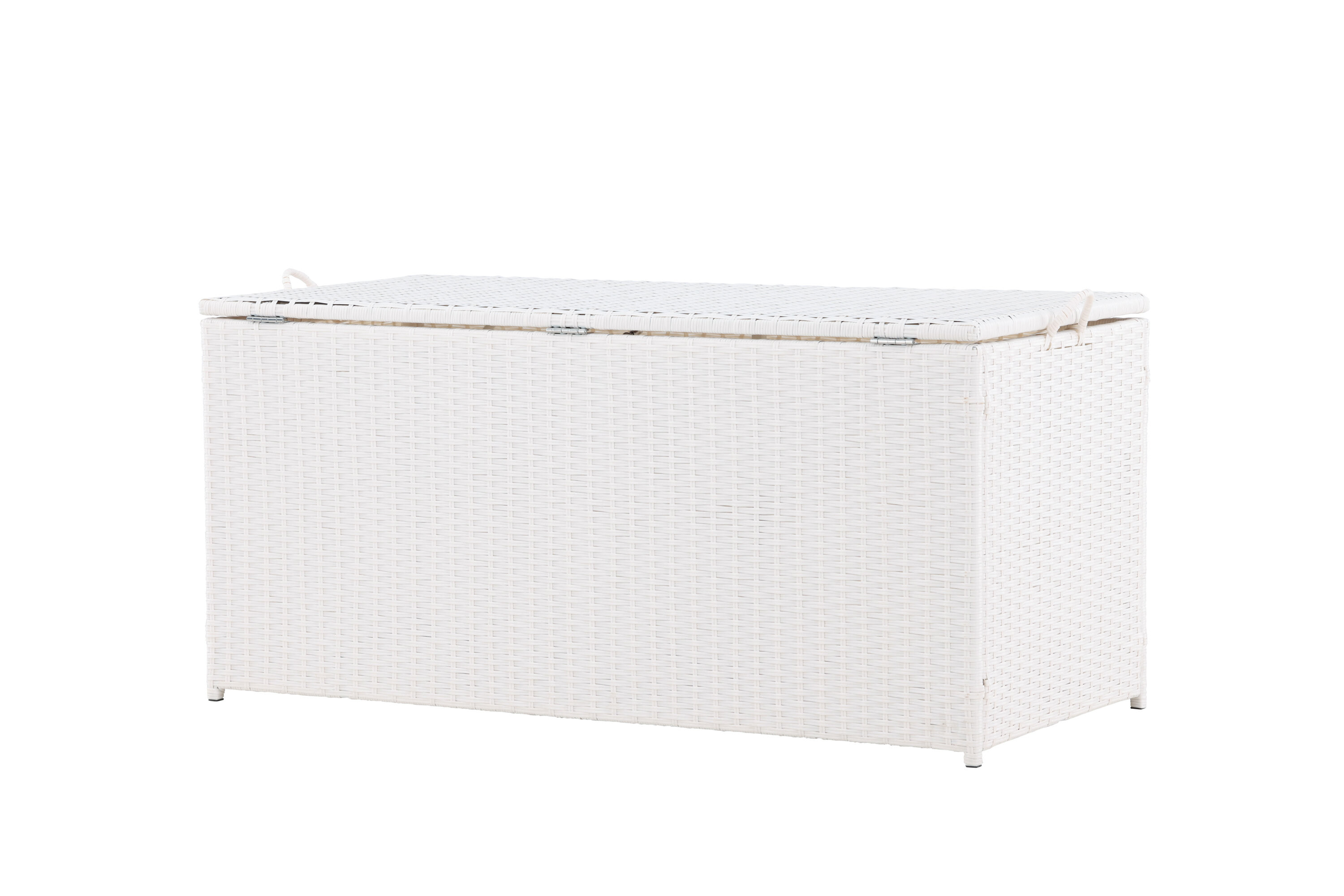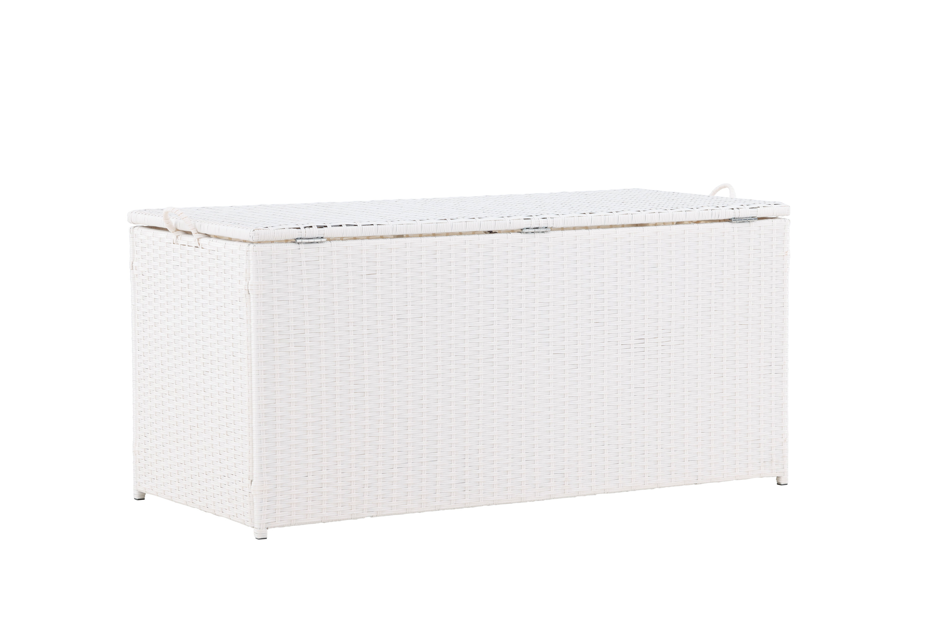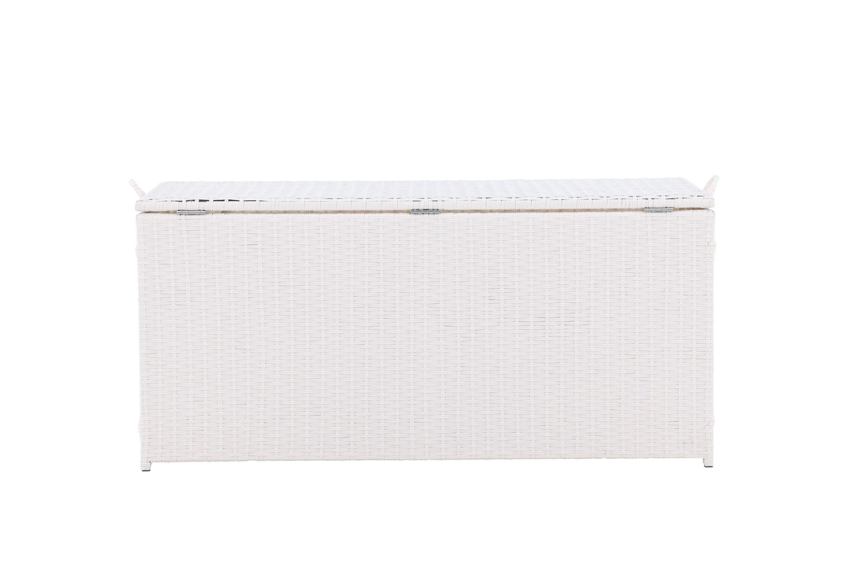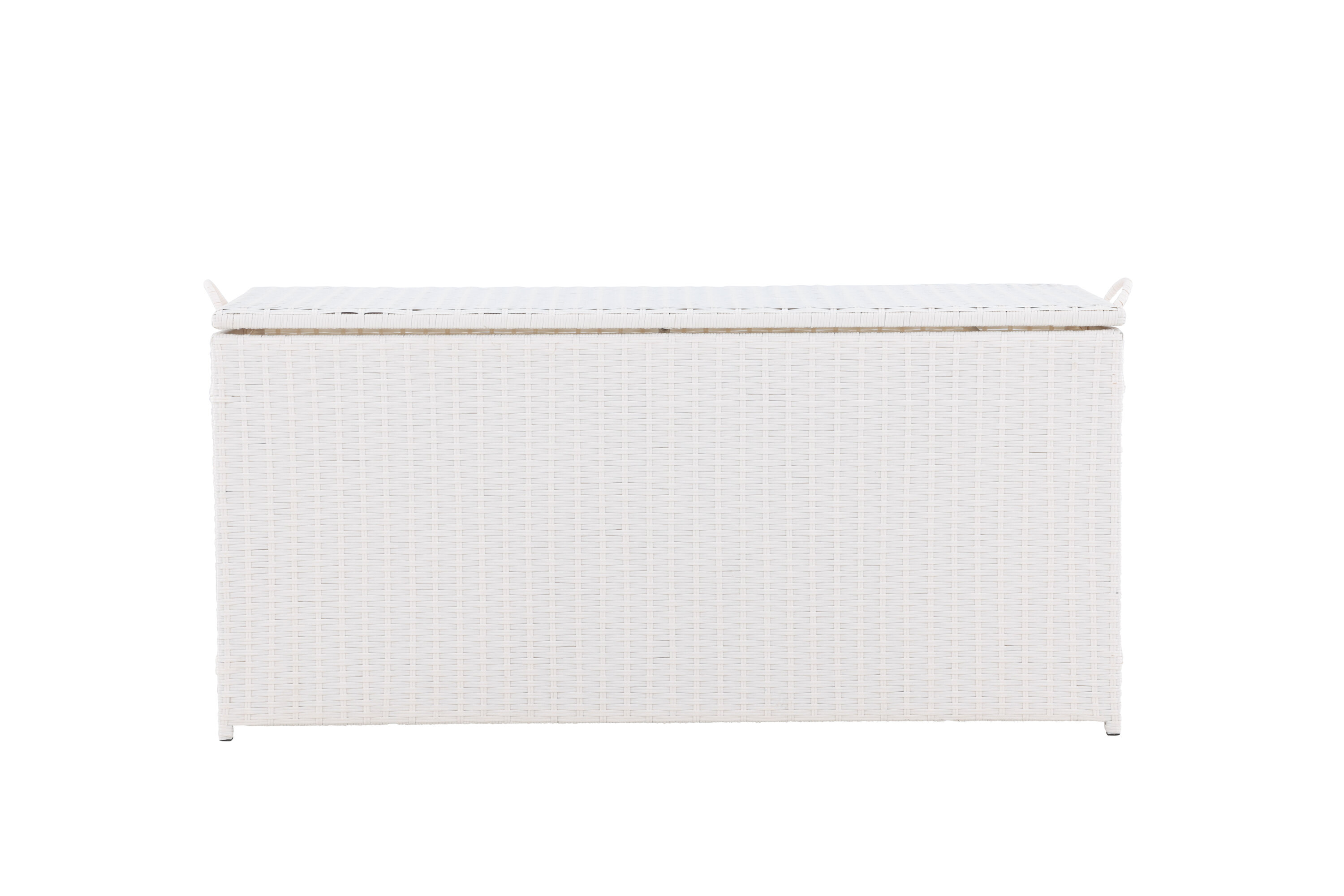 Répondez à la commande avec la boîte à coussins London – la solution de rangement parfaite pour vos coussins d'extérieur. Fabriquée en rotin durable dans une élégante couleur blanche, la boîte à coussins London apporte à la fois fonctionnalité et style à votre patio. Avec des dimensions généreuses de 130x60, il offre amplement d'espace pour organiser et ranger vos coussins d'extérieur de manière pratique.
