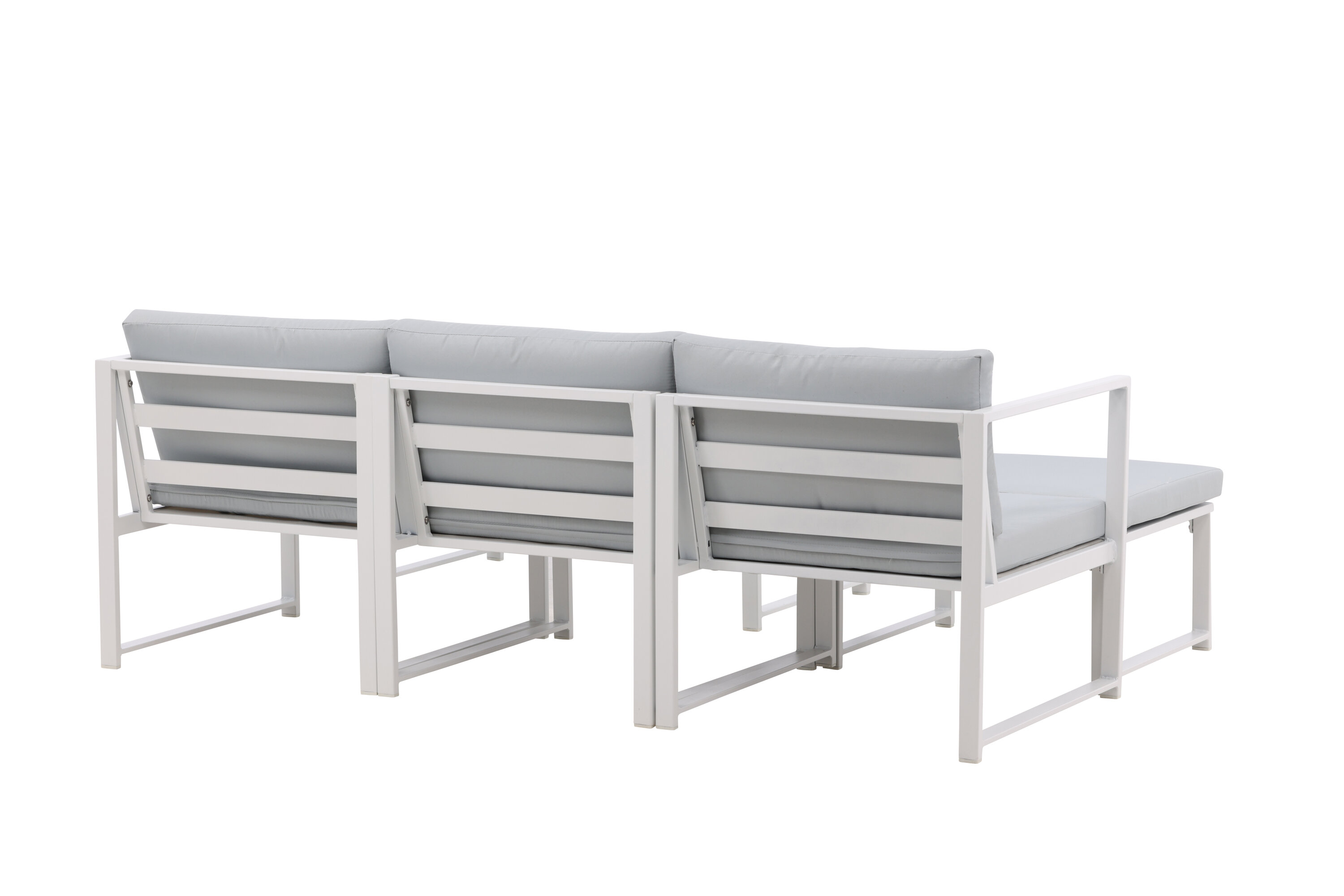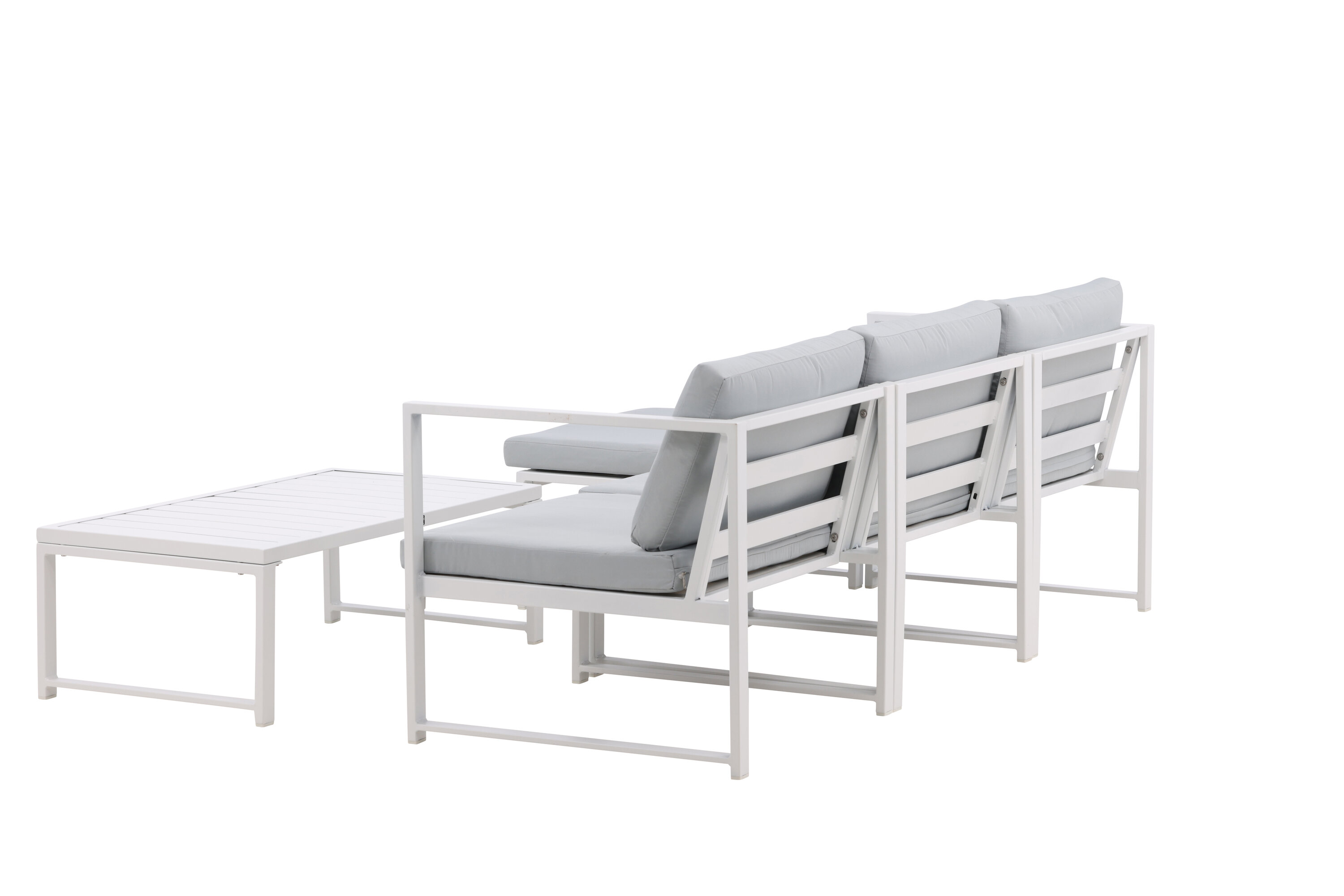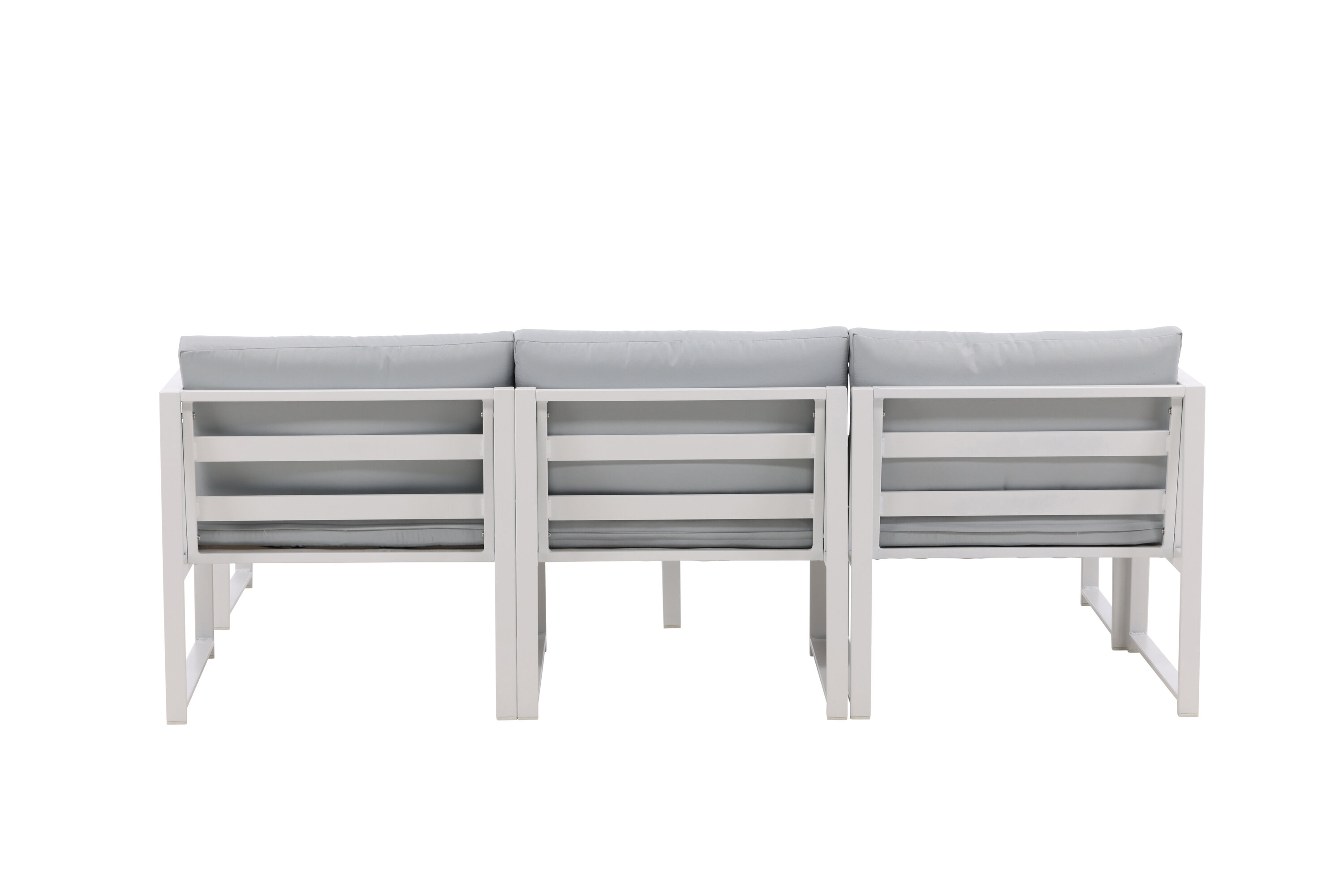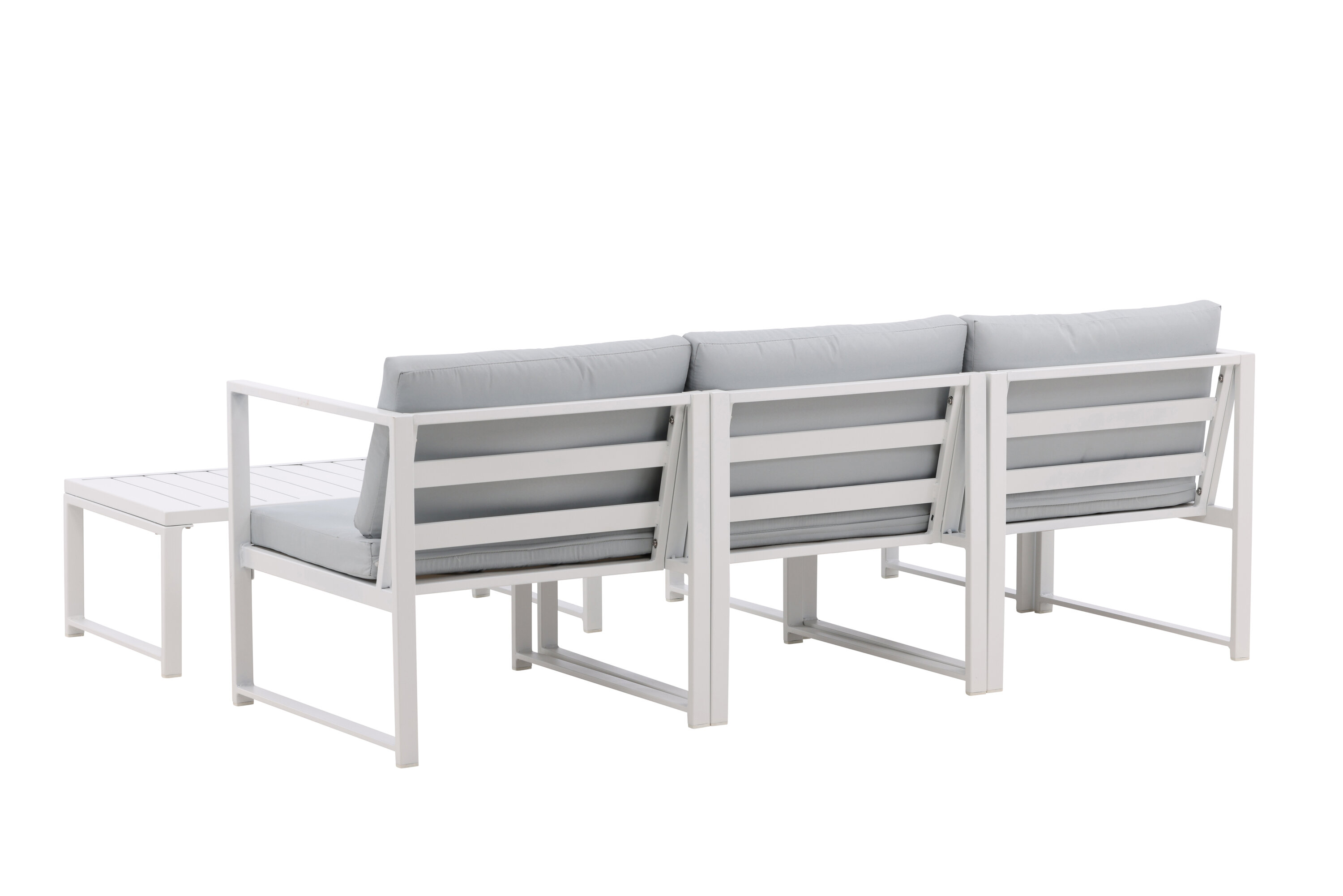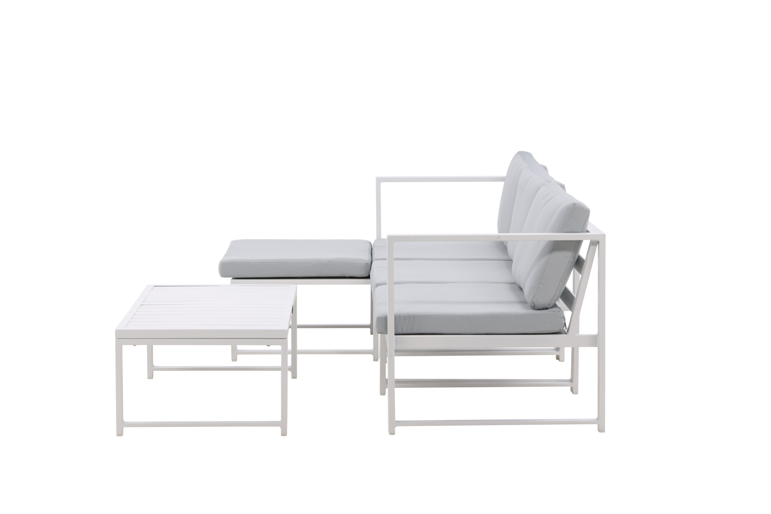 Salvador est un élégant groupe de canapés de couleur gris agréable qui impressionne par son design global réfléchi. Le groupe canapé se compose d'un canapé trois places avec division et d'une table basse. Fabriqué en métal revêtu de poudre blanche et en aluminium - facile à gérer et durable pour une utilisation en extérieur ! Des coussins doux gris clair sont inclus pour le groupe canapé. Le canapé est composé de modules qui permettent de l'adapter comme vous le souhaitez, parfait pour créer votre propre oasis de charme sur le patio !