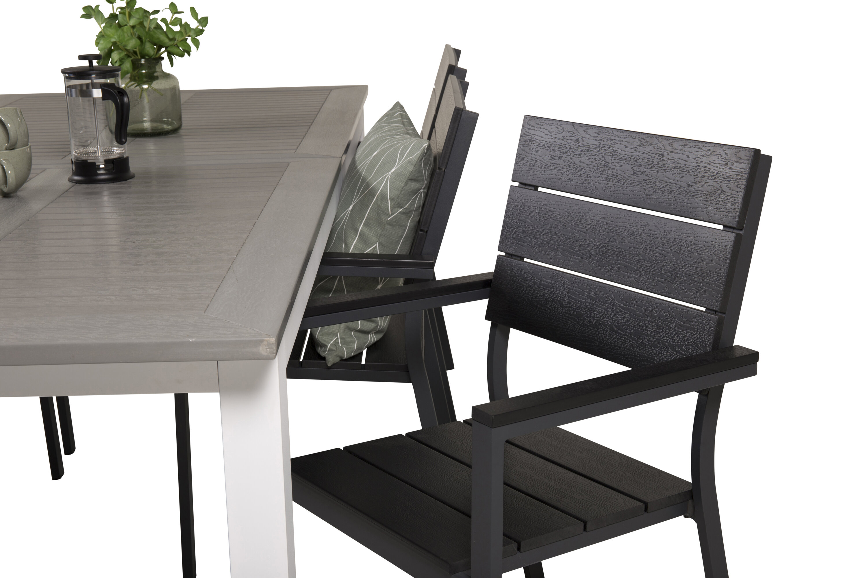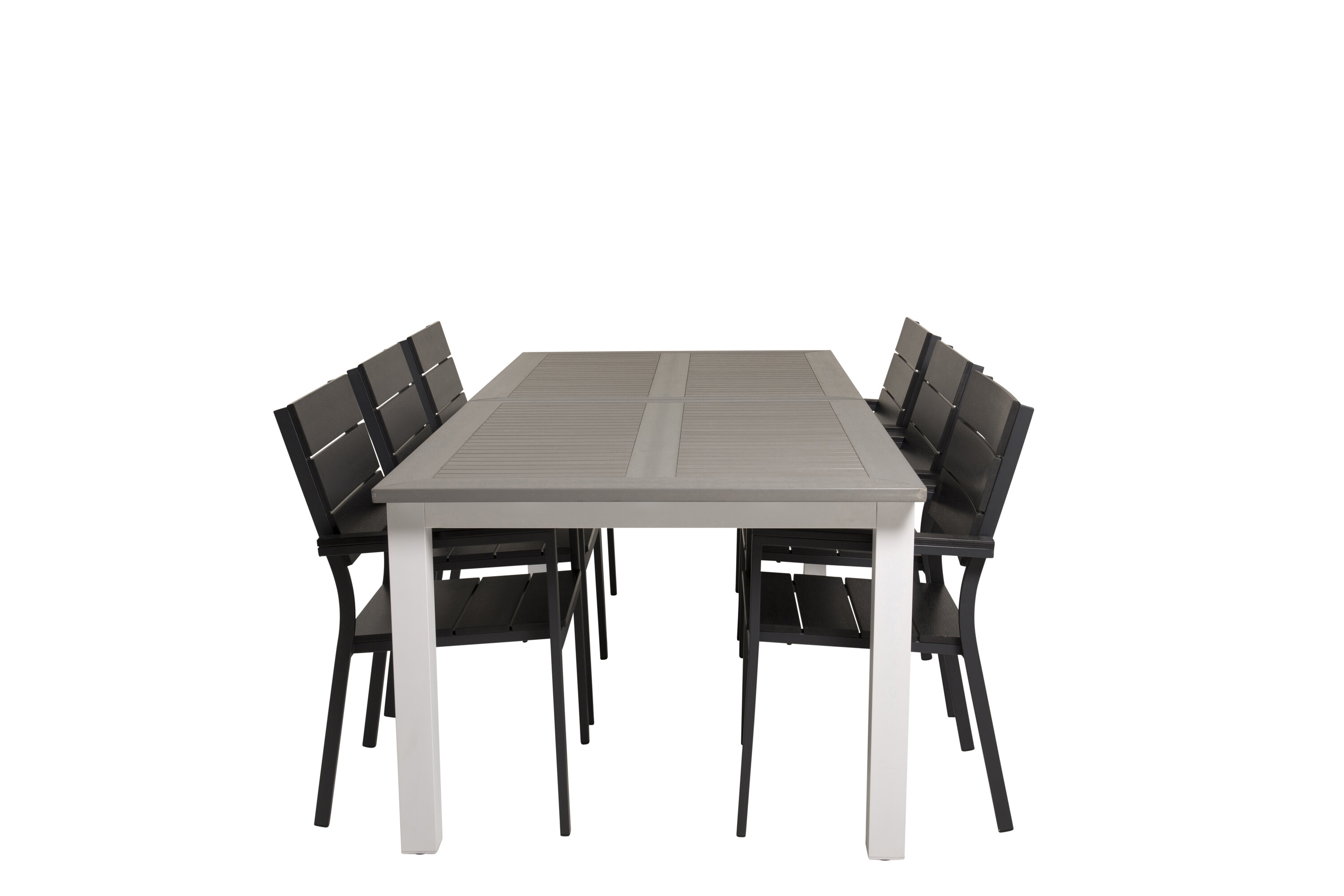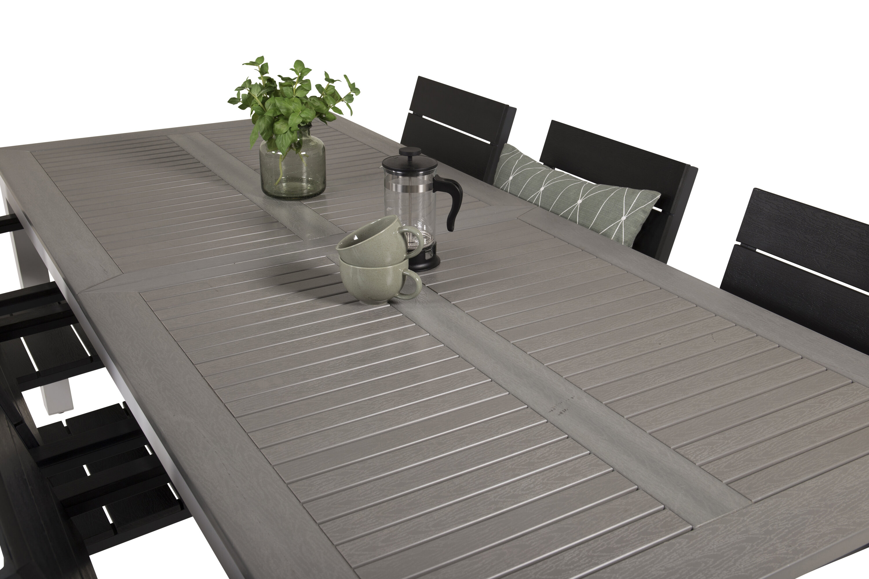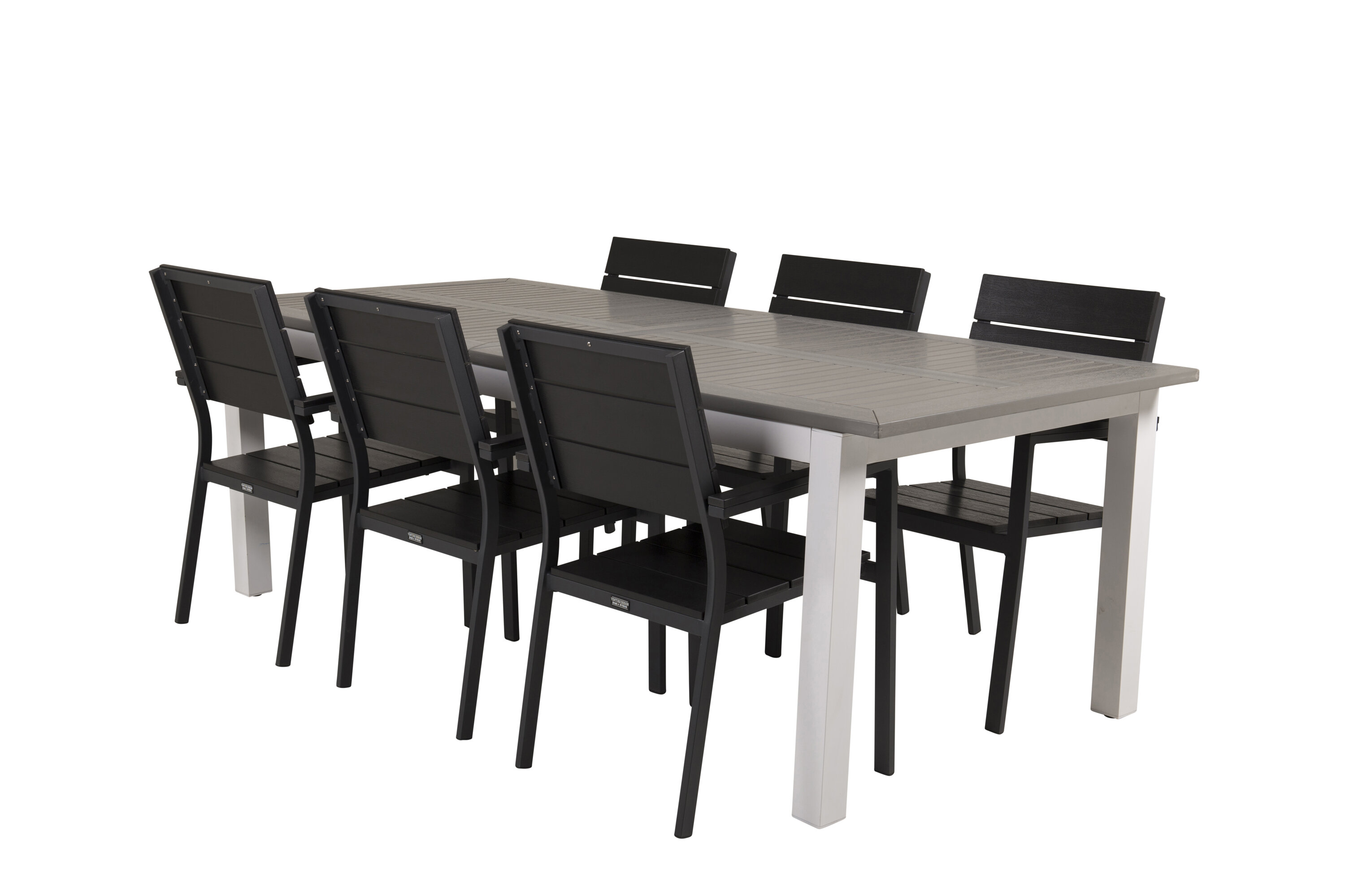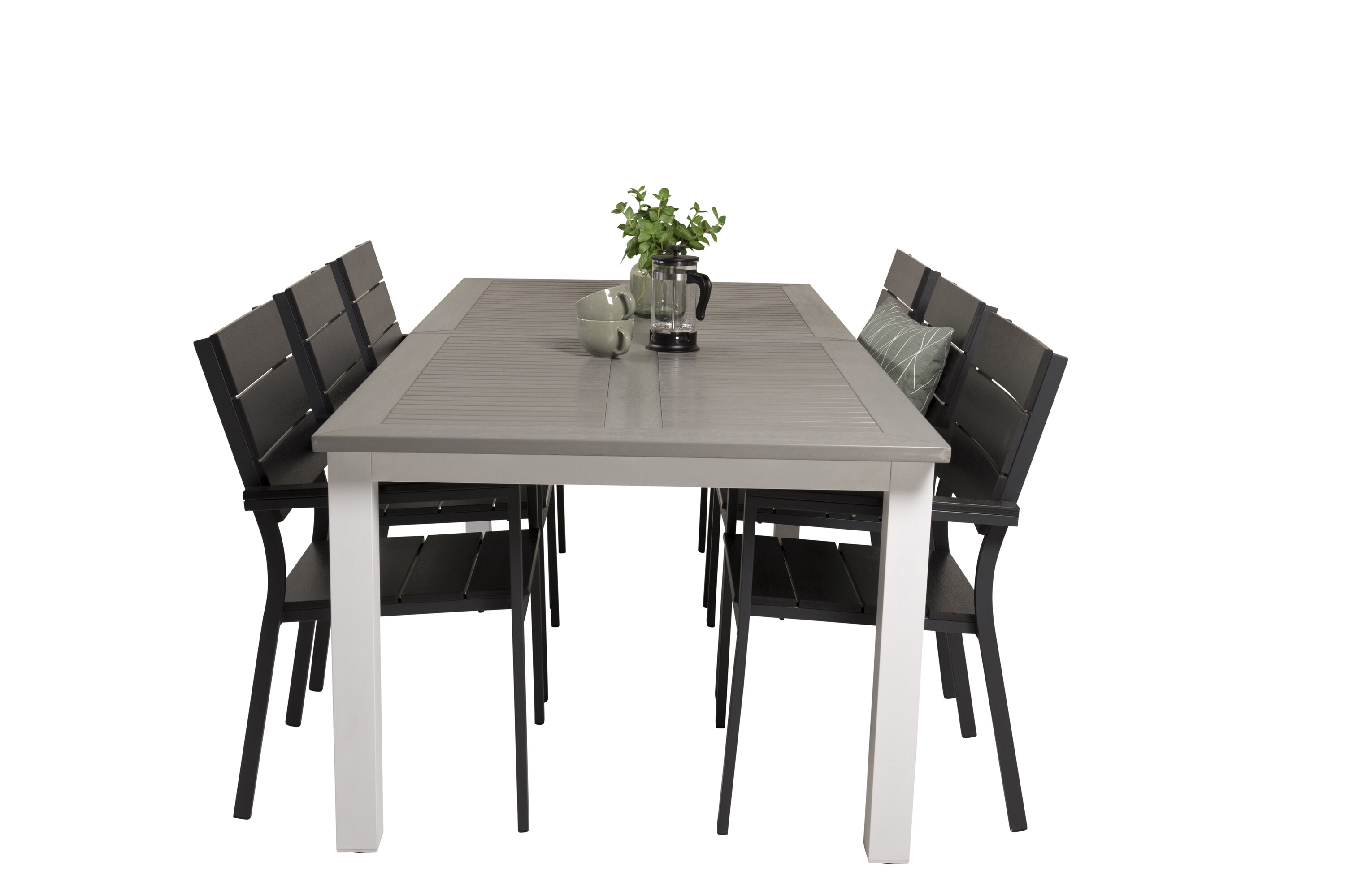 Groupe alimentaire qui s'adapte à la plupart des environnements ! Notre table à manger extensible Albany avec des chaises élégantes dans la série Levels est comme fait pour ceux qui veulent créer une sensation confortable et moderne dans le jardin ou dans l'espace extérieur. Élargissez vos invitations à dîner et évitez de vous soucier de l'hébergement de tout le monde.