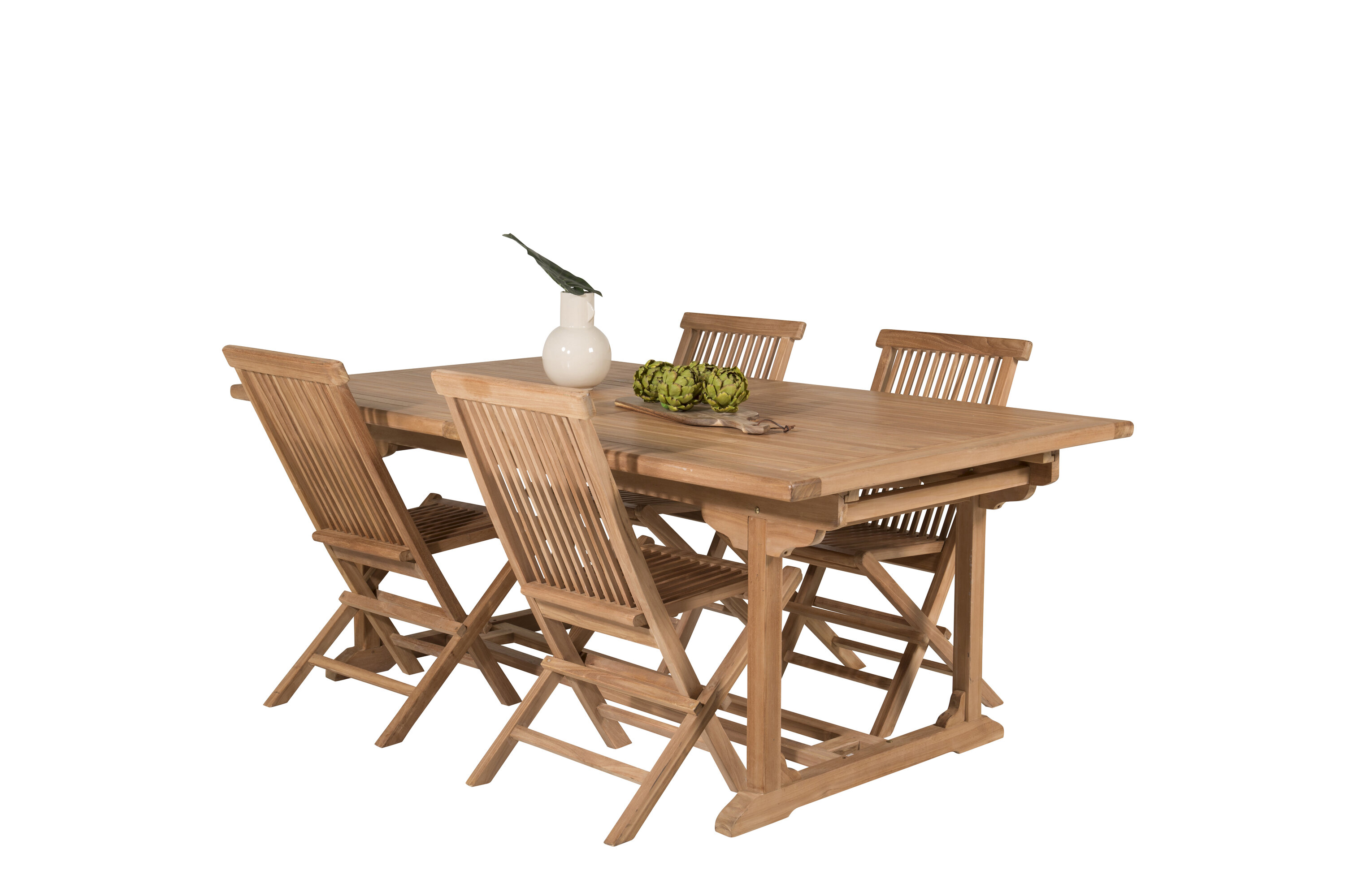 Table à manger Kenya195/295 *110*H75 - Teck+ Chaise pliante Kenya sans accoudoir - Teck