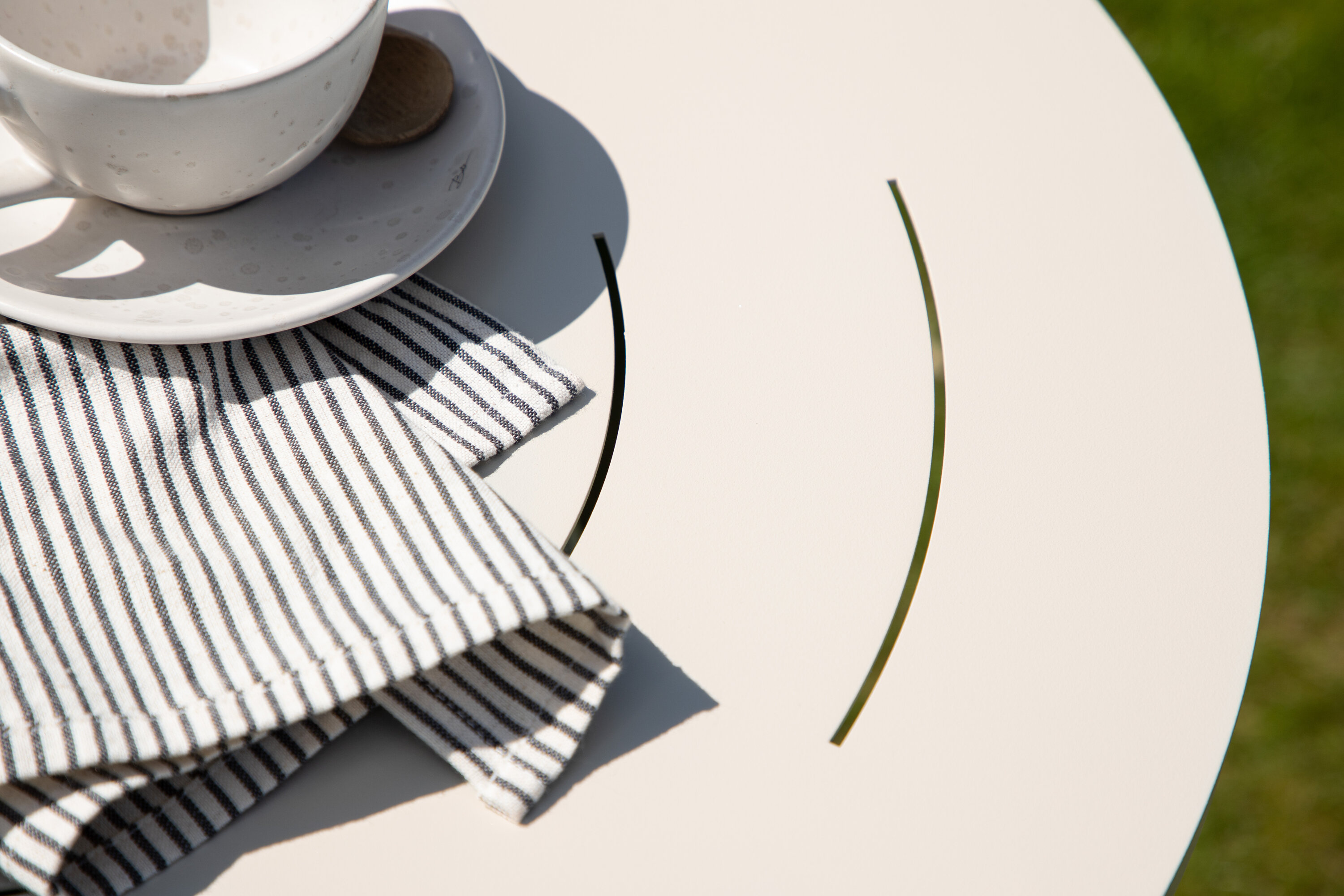 Bacong - une table de café élégante dans une couleur beige intemporelle et un joli design. Fabriquée en acier beige qui rend la table aussi pratique que durable. Le poids léger signifie que la table est facile à déplacer et s'adapte aussi bien dans le jardin que sur le petit balcon. La plaque supérieure ronde et les jambes étroites donnent une impression minimaliste et sont parfaites pour le café de l'après-midi. Profitez des merveilleux moments de l'été !