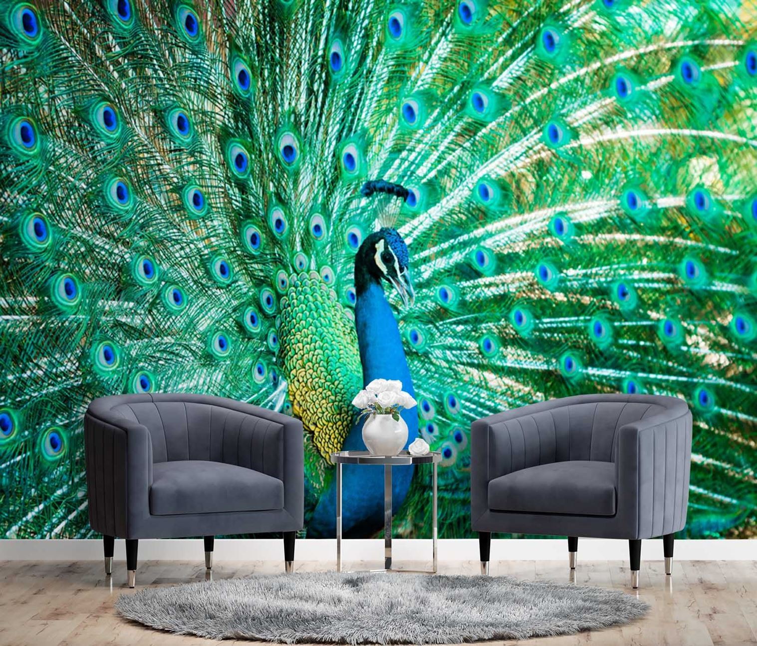 Papier peint rectangulaire imprimé sur toile avec finition verte paon coloré