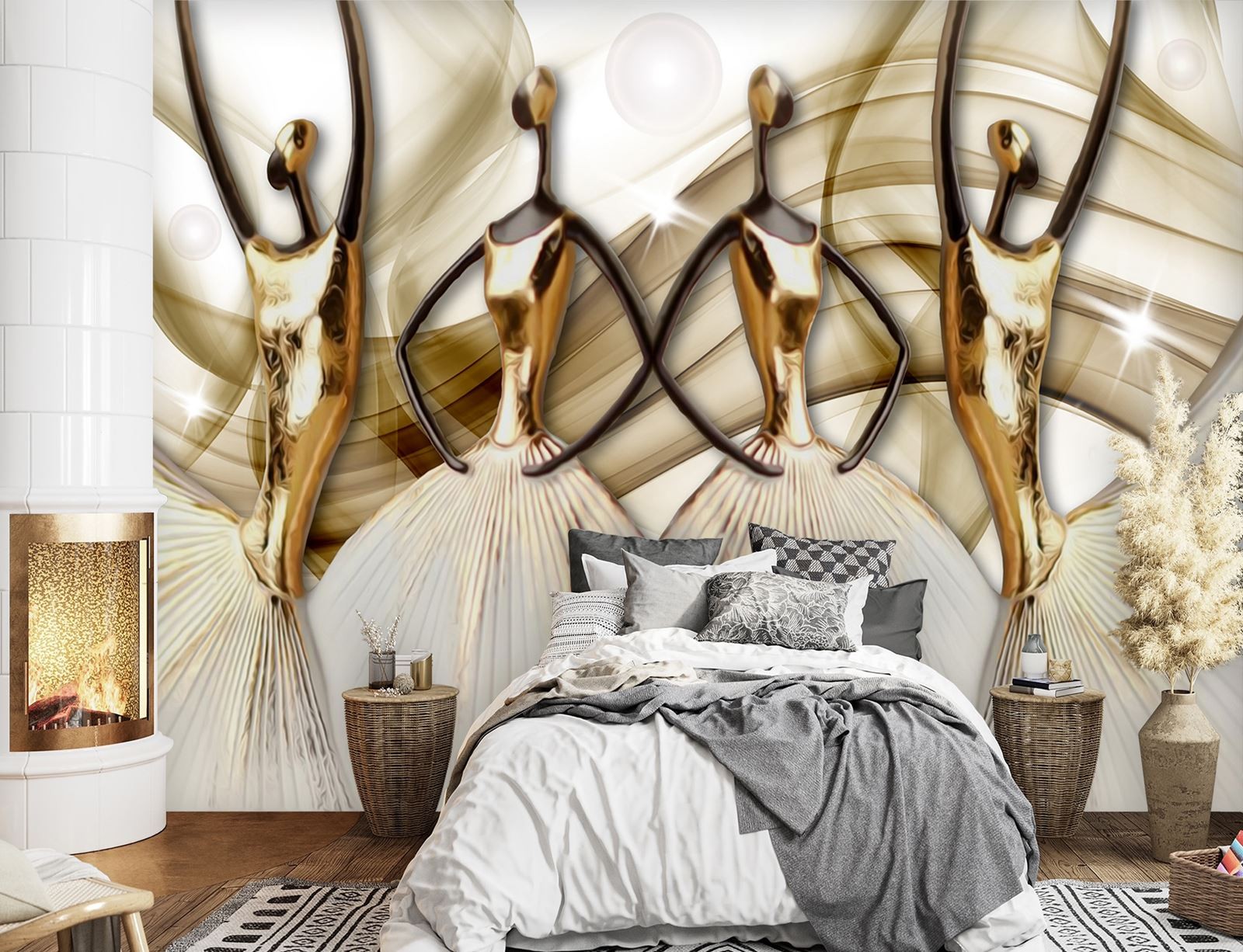 Photo murale pour salon au style glamour de couleur dorée silhouettes féminines