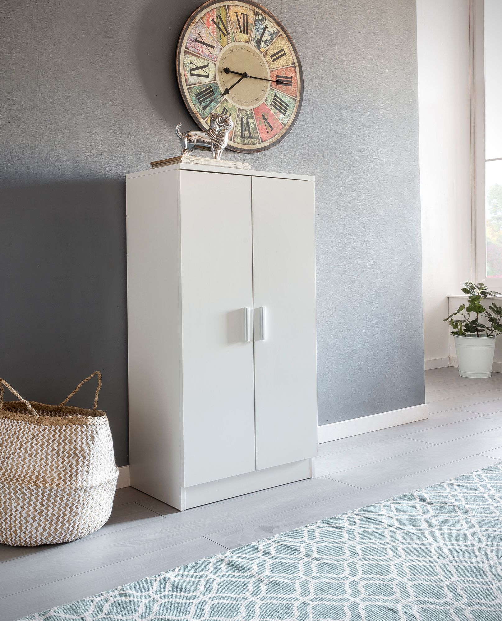 Armoire à chaussures bois blanc 55x108x35 cm | 2 portes | Design moderne