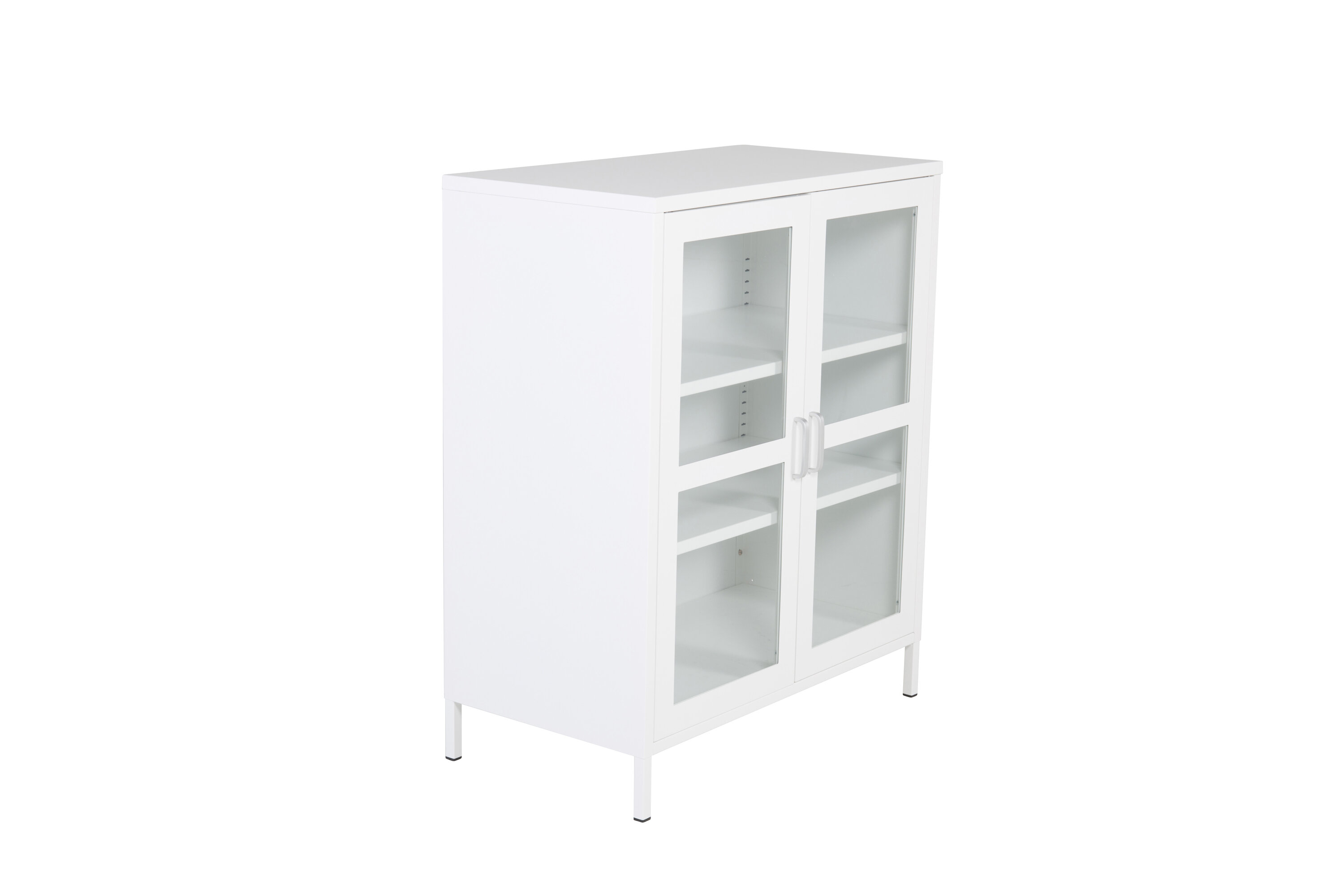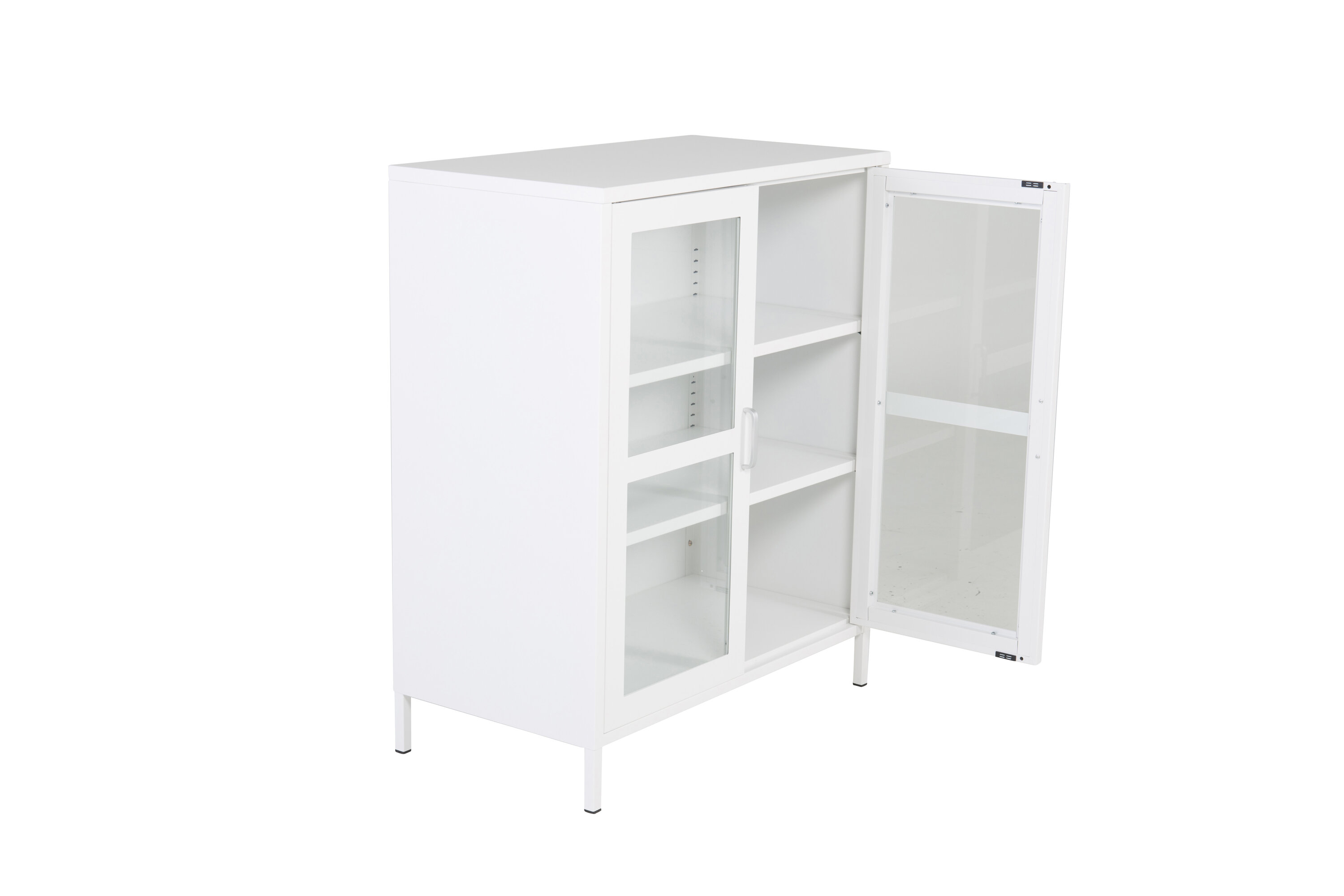 Le meuble de rangement parfait au design léger et moderne ! L'armoire en relief Acero en acier poudré blanc et 2 trappes en verre est à la fois pratique et accrocheuse. Les poignées sont en argent élégant, le verre transparent laisse entrer une belle lumière dans l'armoire et le design global scandinave avec des lignes droites élégantes donne au mobilier un look tendance. L'armoire est soutenue par des pieds hauts et étroits qui donnent au meuble un aspect aéré et facilitent également l'utilisation de l'aspirateur. Remplissez l'armoire de tout, des décorations à la mode aux livres et à la porcelaine !
