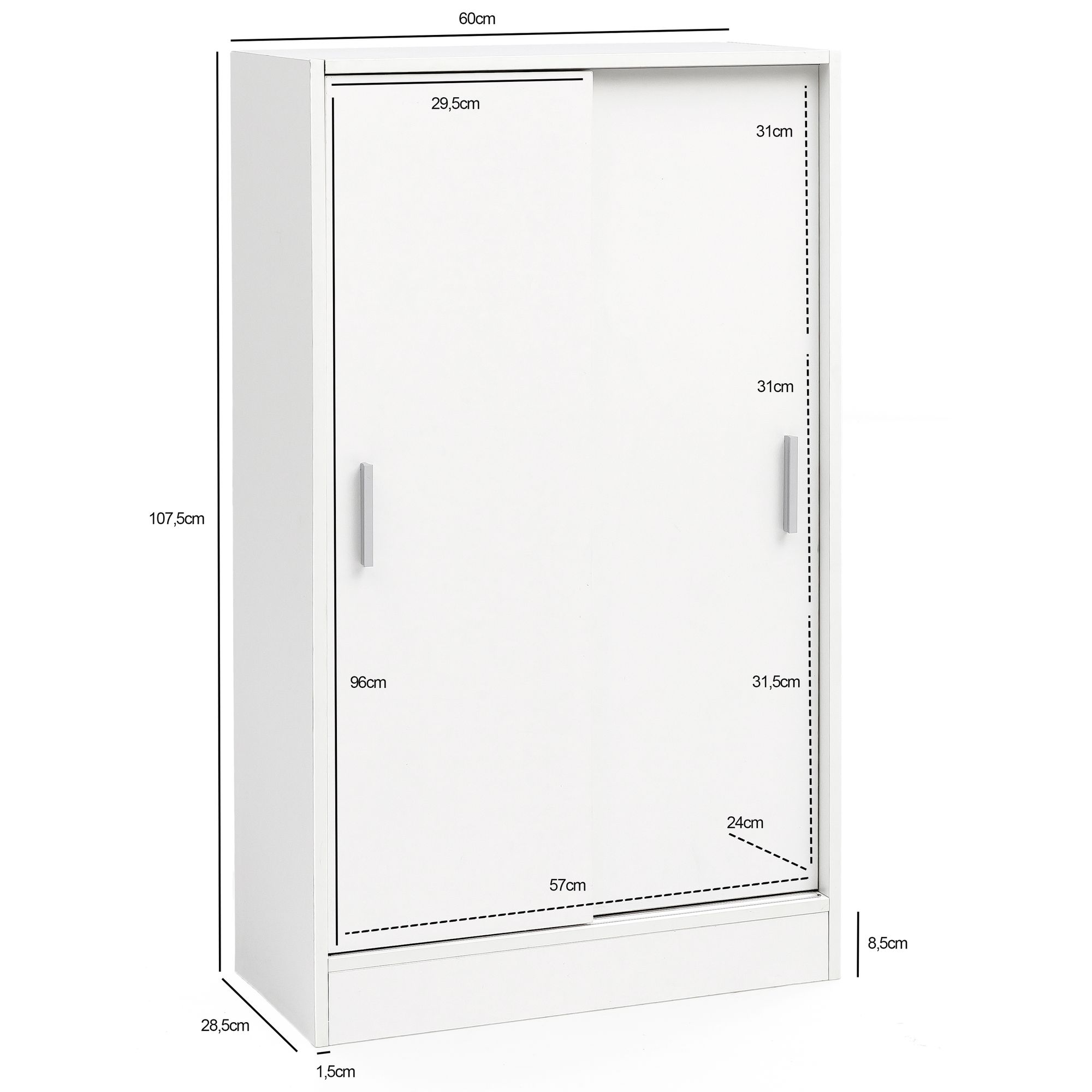 - Dimensions totales : 60 cm (L) x 107,5 cm (H) x 28,5 cm (P)
