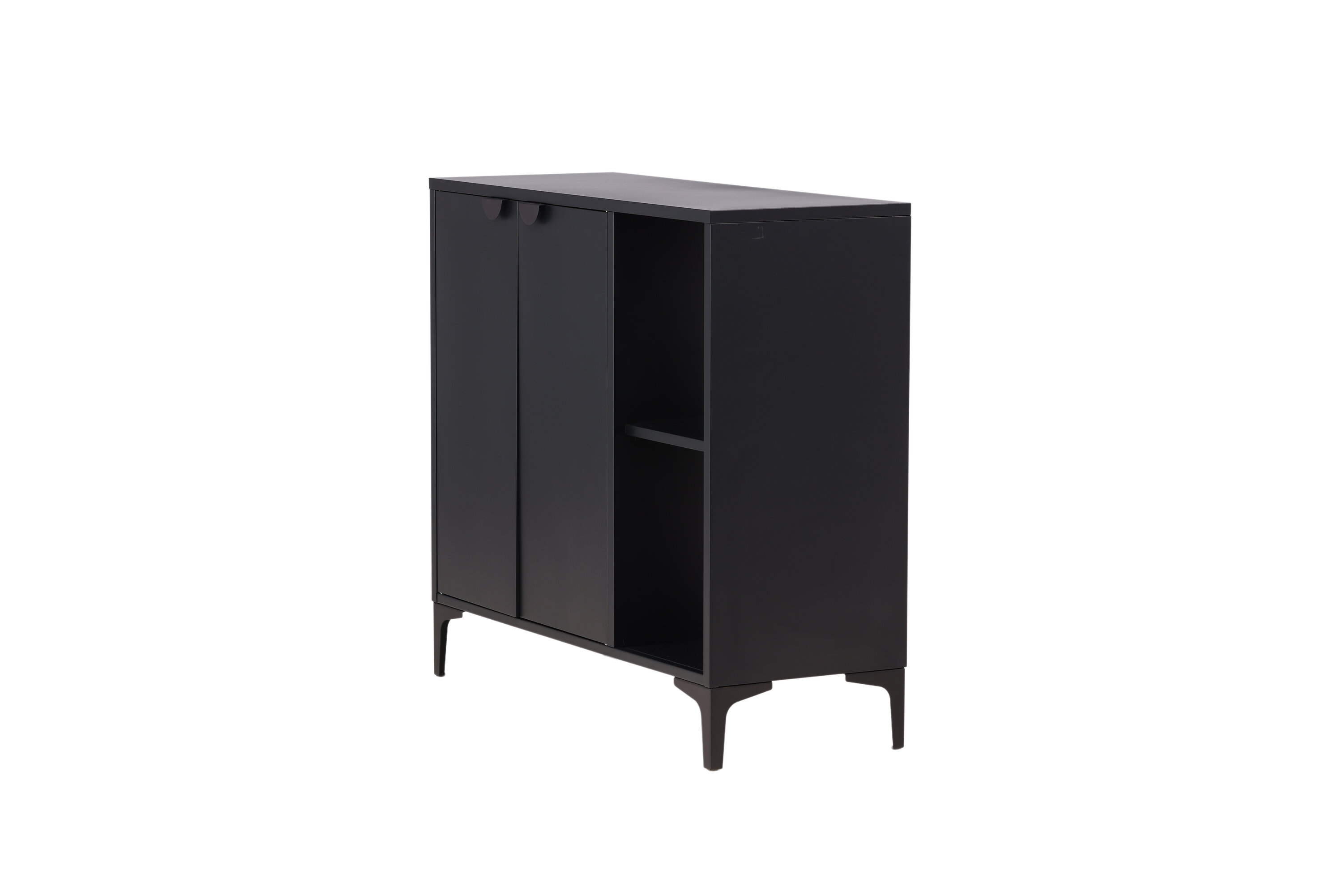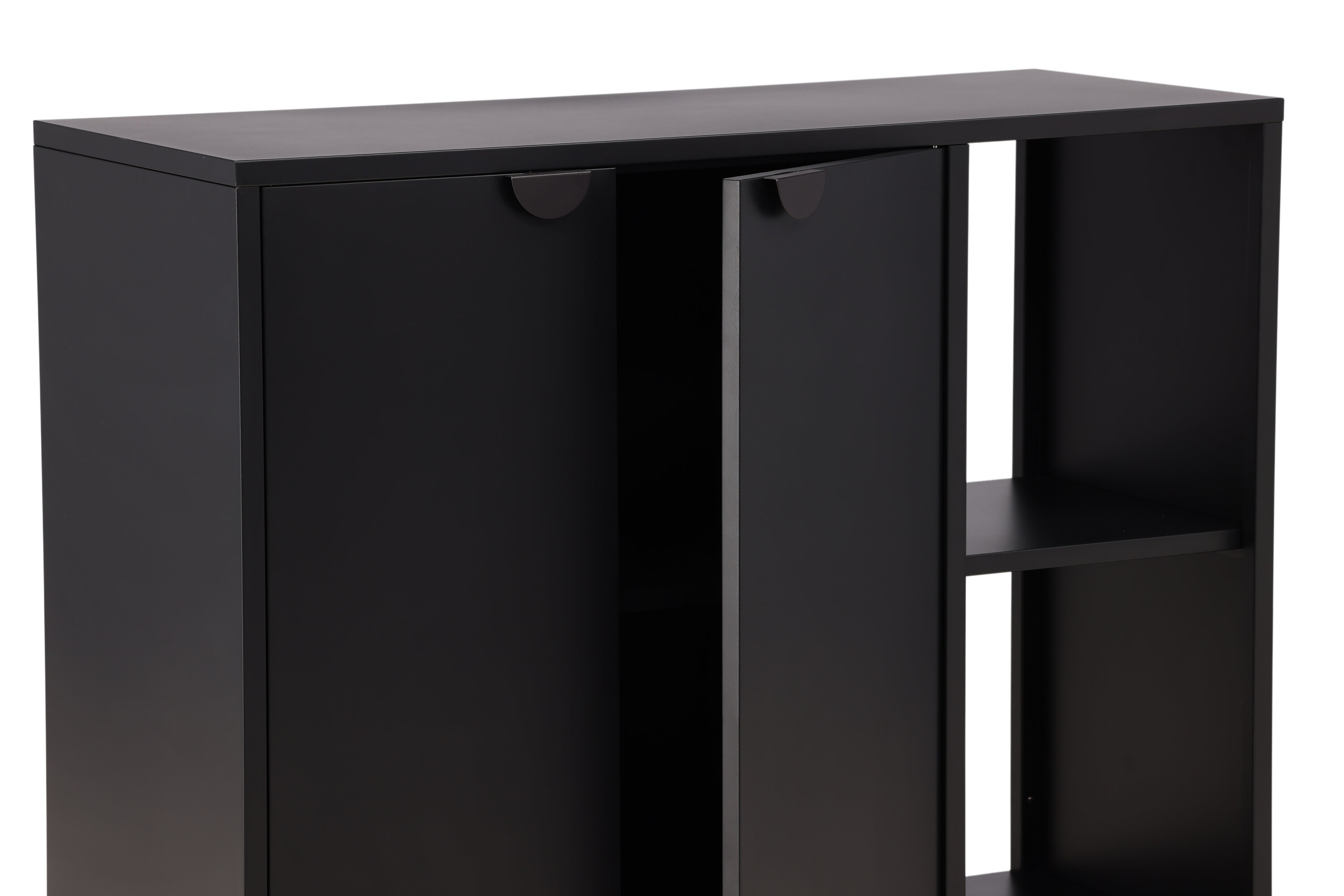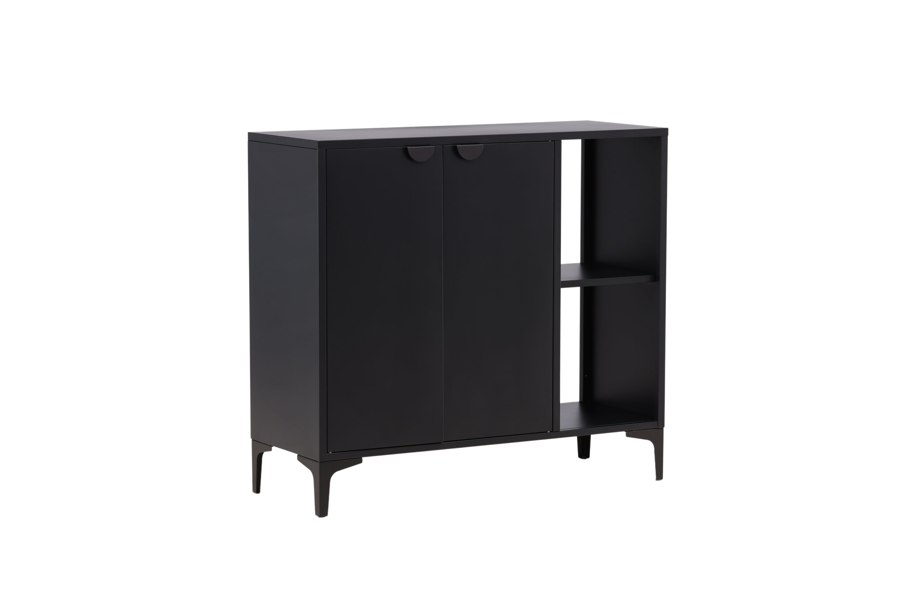 Une armoire en relief noir suie est aussi bonne qu'une solution intelligente dans votre maison ! Les armoires de décharge de filage ont un design industriel classique en acier revêtu de poudre noire. L'armoire a deux espaces pour le rangement caché et deux étagères ouvertes qui sont parfaites pour les décorations et les détails élégants. L'armoire est soulevée par des pieds étroits qui créent une sensation d'aération et facilitent également l'aspirateur. Les meubles de rangement parfaits simplement - remplissez avec de la porcelaine, des livres ou de belles décorations. La taille flexible de l'armoire le rend également facile à placer et s'intègre bien dans la plupart des pièces de la maison !