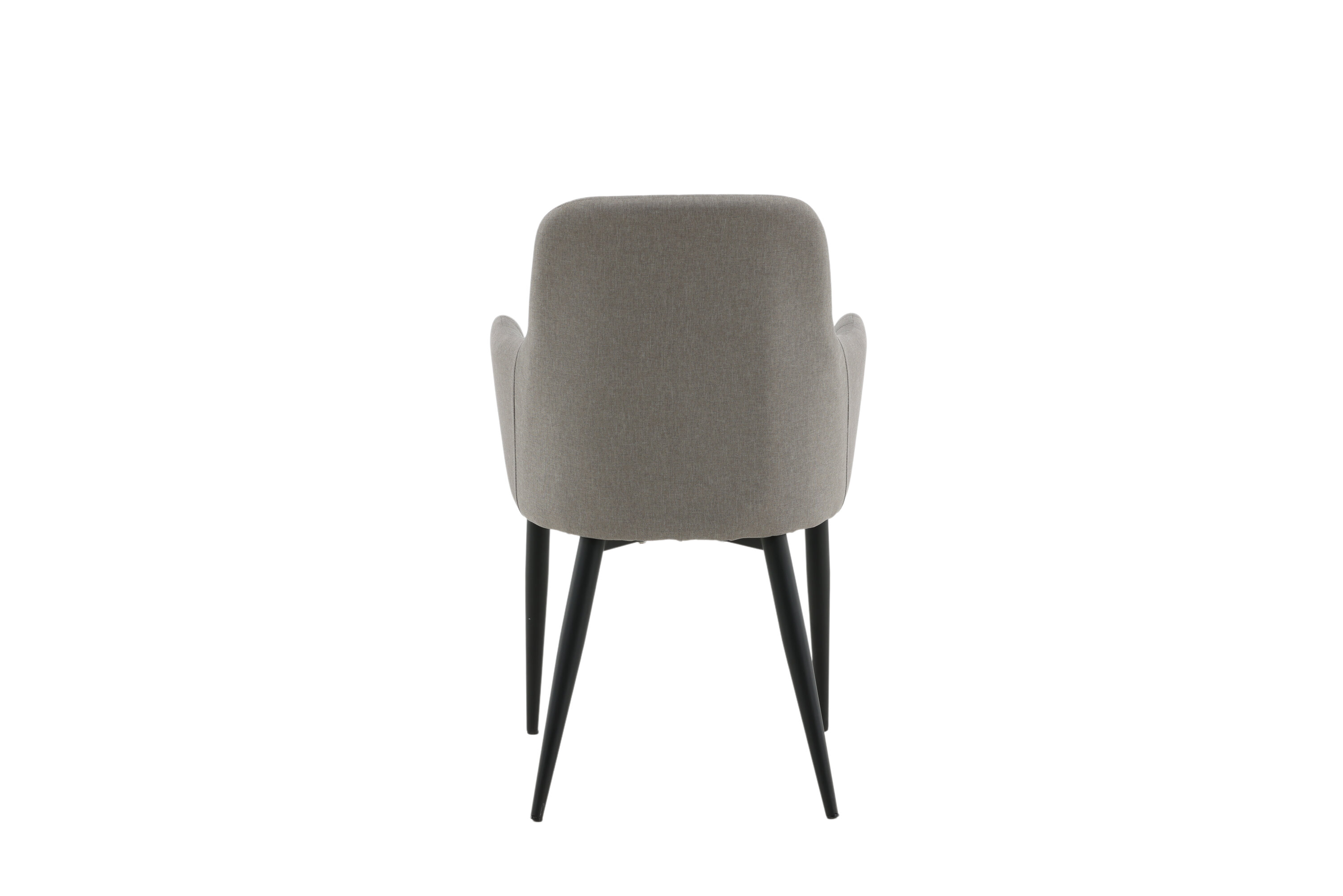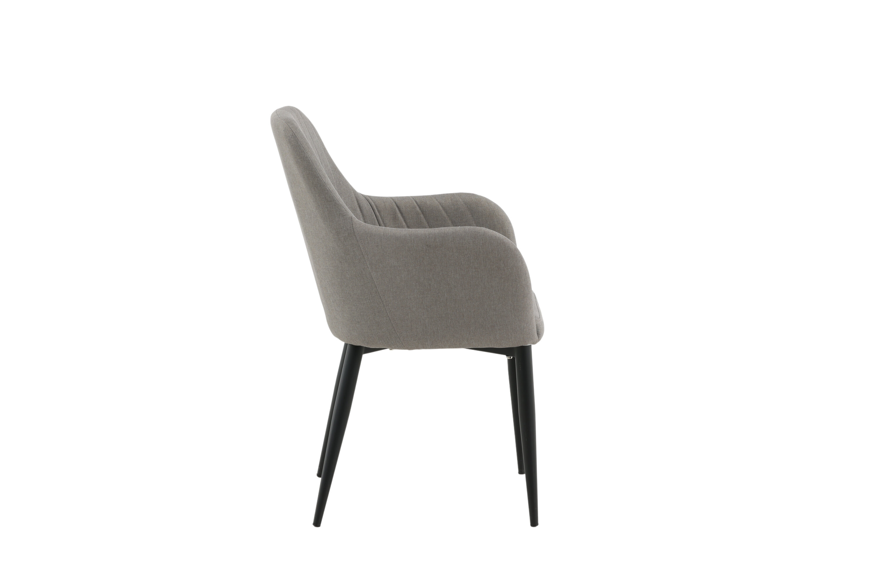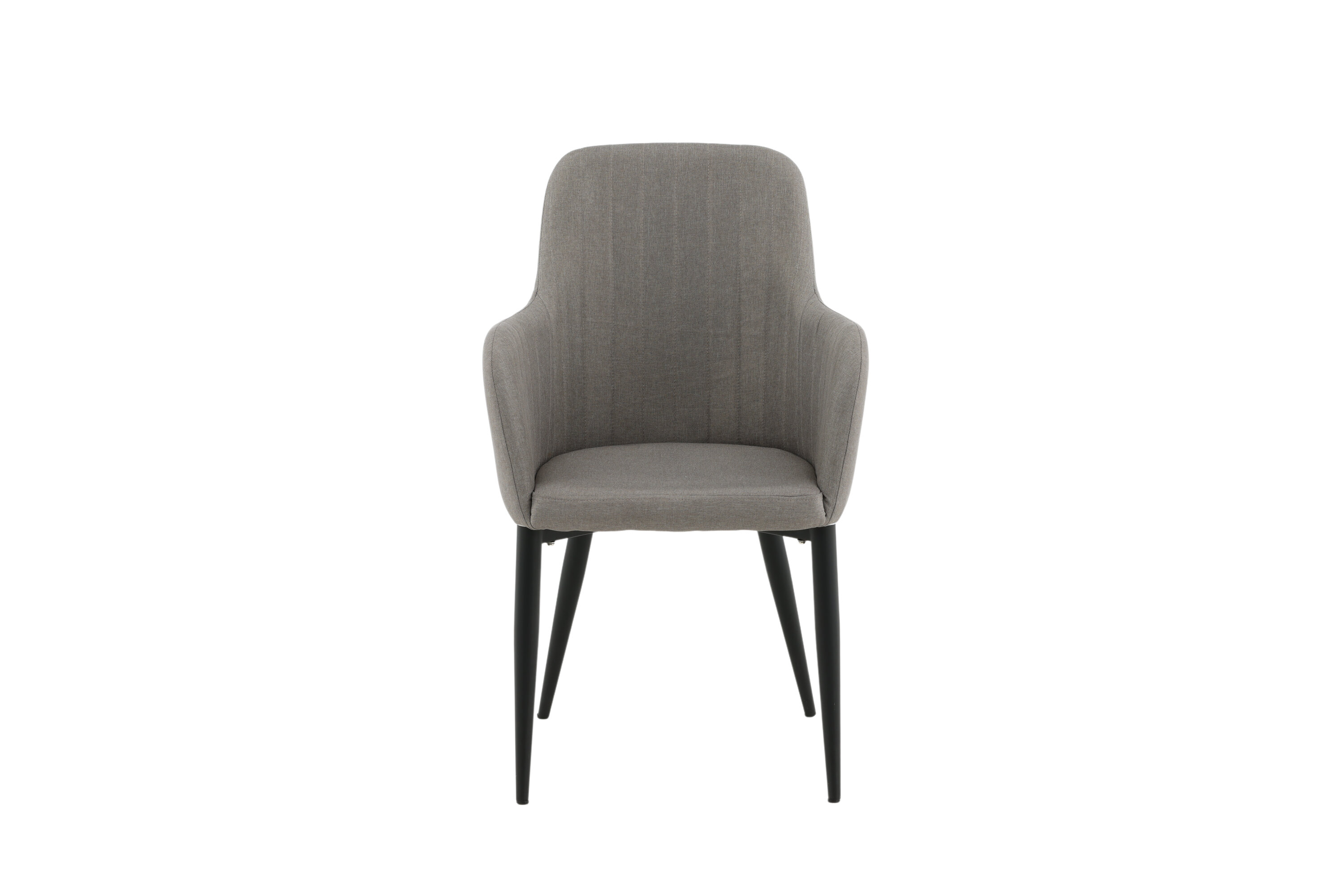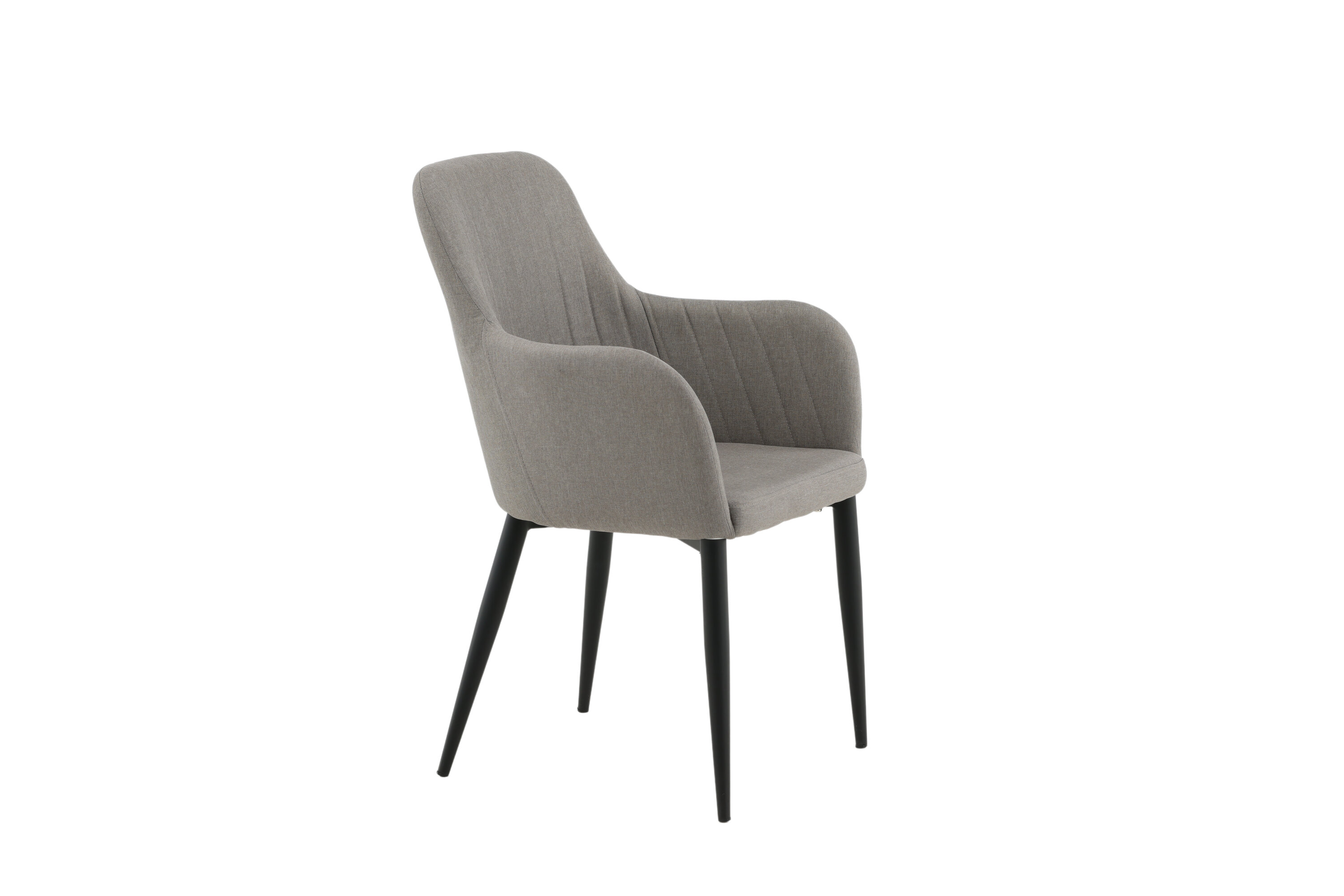 Asseyez-vous confortablement dans des chaises de salle à manger de la série Confort ! Une chaise à cadre dans un design robuste et entièrement habillé avec des pieds en métal revêtu de poudre noire. Le dossier et le siège avec accoudoirs intégrés en tissu polyester gris offrent un confort d'assise agréable et une profondeur d'assise confortable. Les points décoratifs à l'intérieur du dos et des accoudoirs deviennent un joli détail. Un assemblage plus léger est requis.