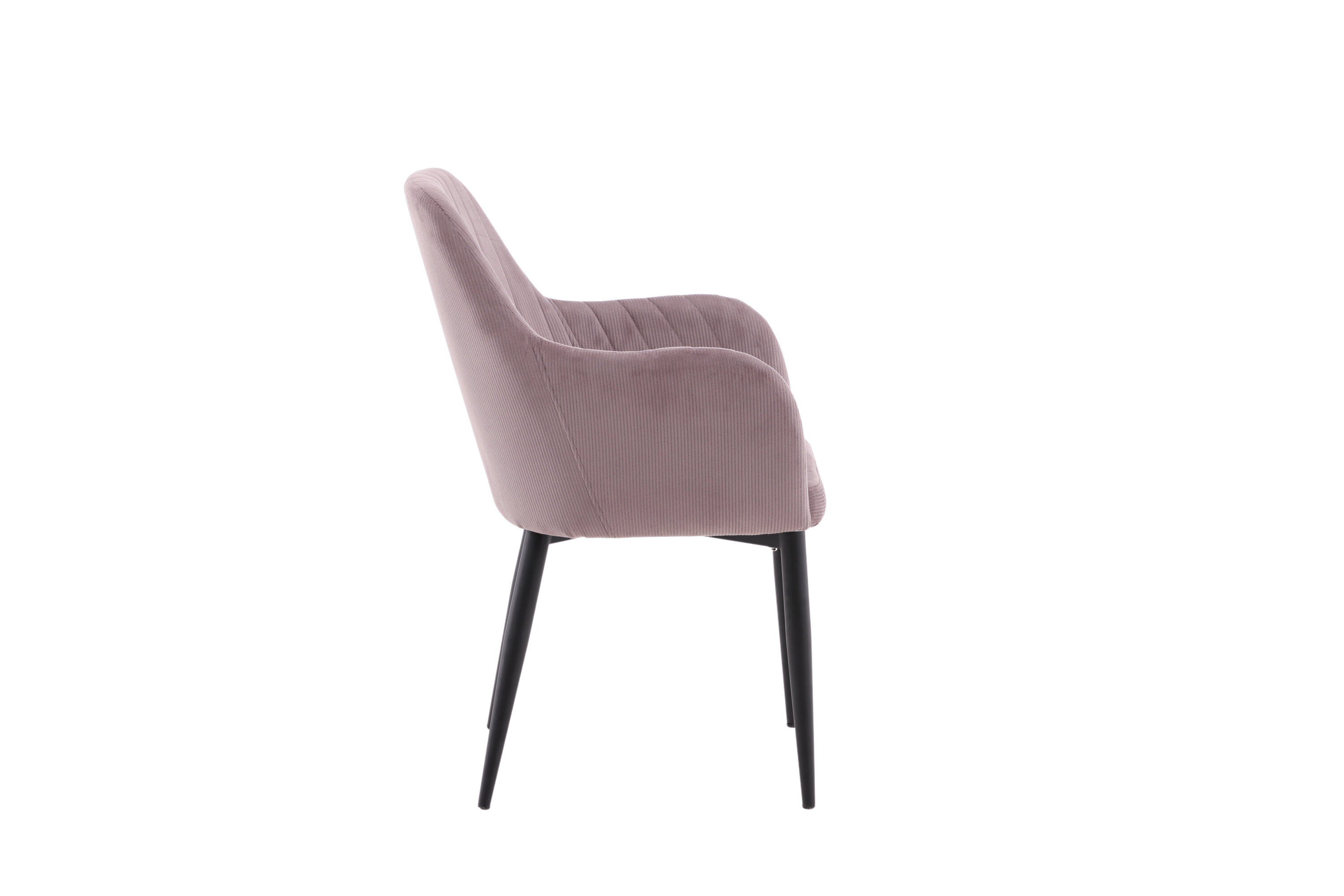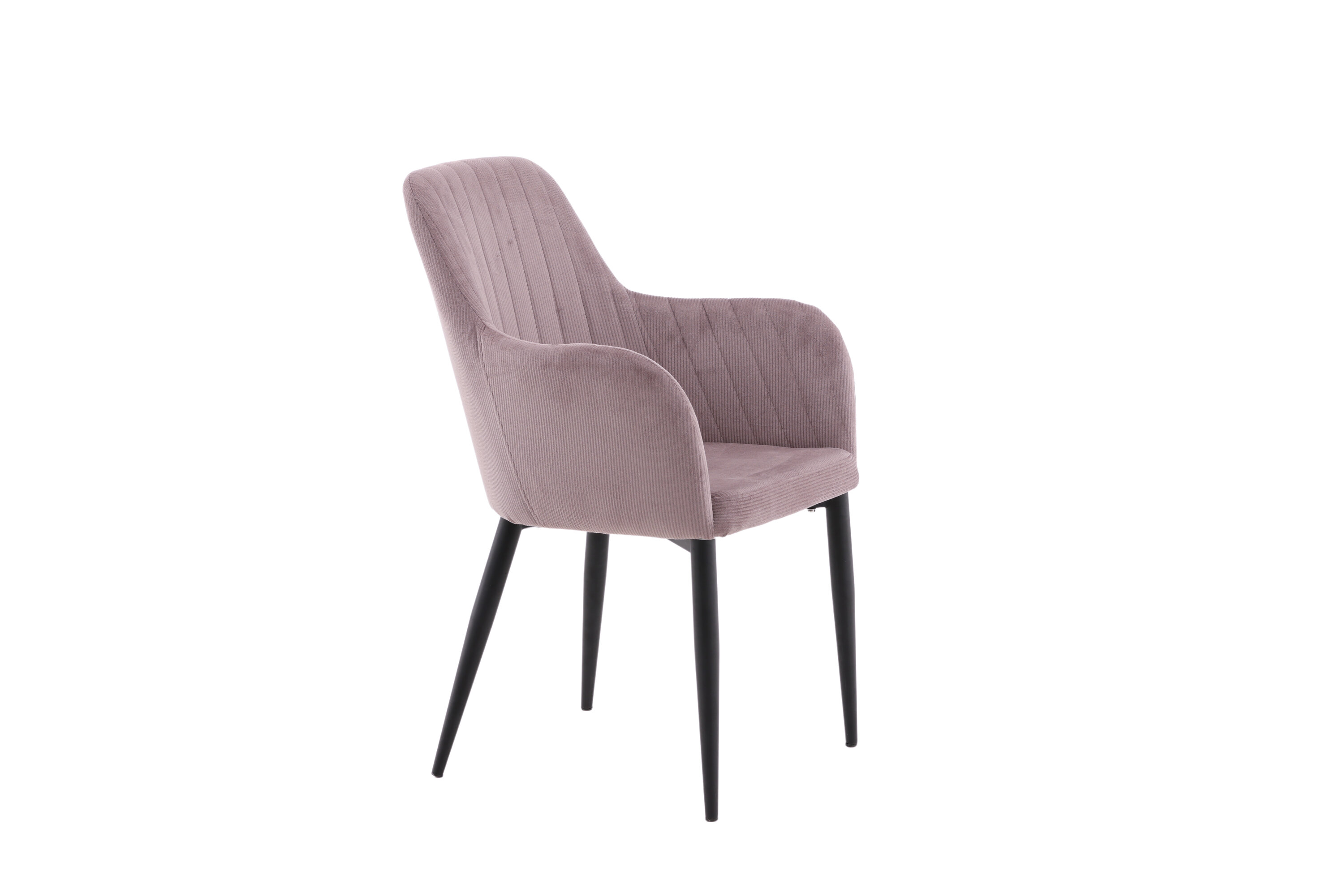 Un coffre manchester nostalgique ne sort jamais du temps ! Cette chaise de salle à manger de la série Comfort est habillée du tissu en velours rose clair qui crée un look moderne pour le cœur de la maison. Les pieds sont en métal enduit de poudre noire et le siège avec accoudoirs intégrés en tissu gris manchester offre un confort d'assise agréable. Les points décoratifs à l'intérieur du dos et des accoudoirs deviennent un joli détail. Un assemblage plus léger est requis.