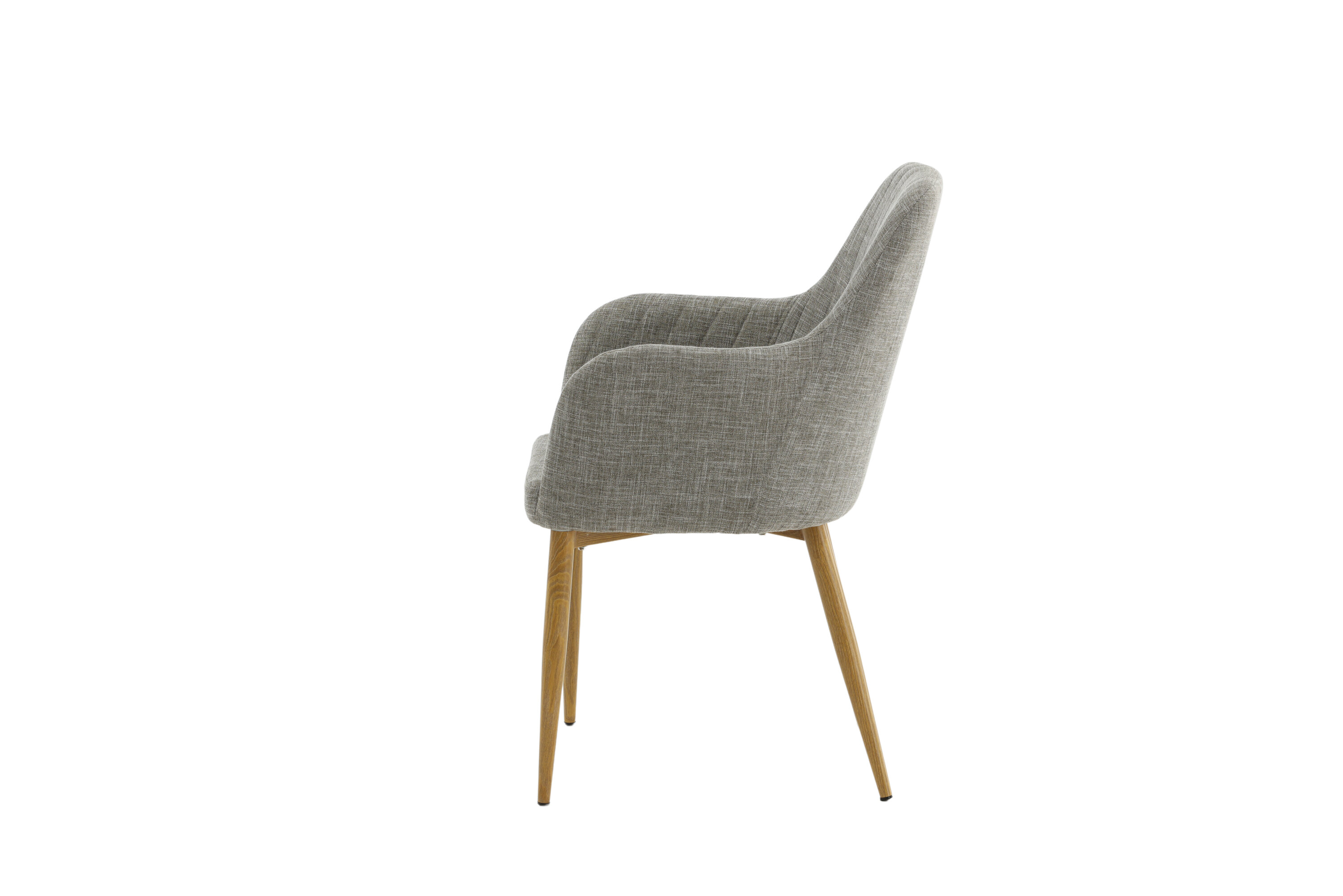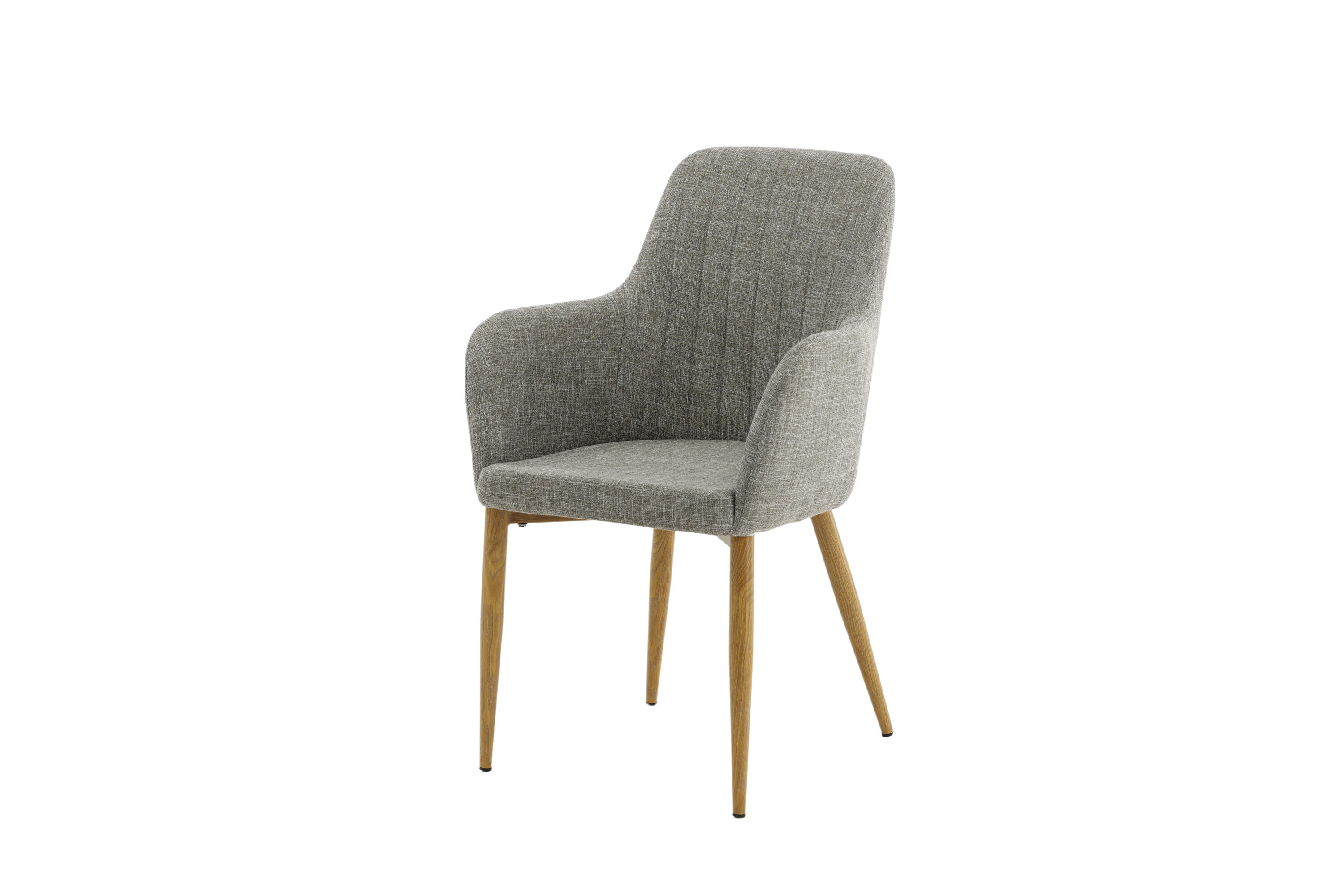 Évitez de faire des compromis entre design et confort ! Cette chaise de salle à manger de la série Comfort vous offre le meilleur des deux mondes. Dans un design robuste entièrement rembourré avec des pieds en métal plaqué chêne et un dossier et un siège avec accoudoirs intégrés en tissu polyester gris clair, cette chaise offre des sièges confortables. Les coutures décoratives à l'intérieur du dossier et des accoudoirs ajoutent une touche élégante. Un certain montage est nécessaire.