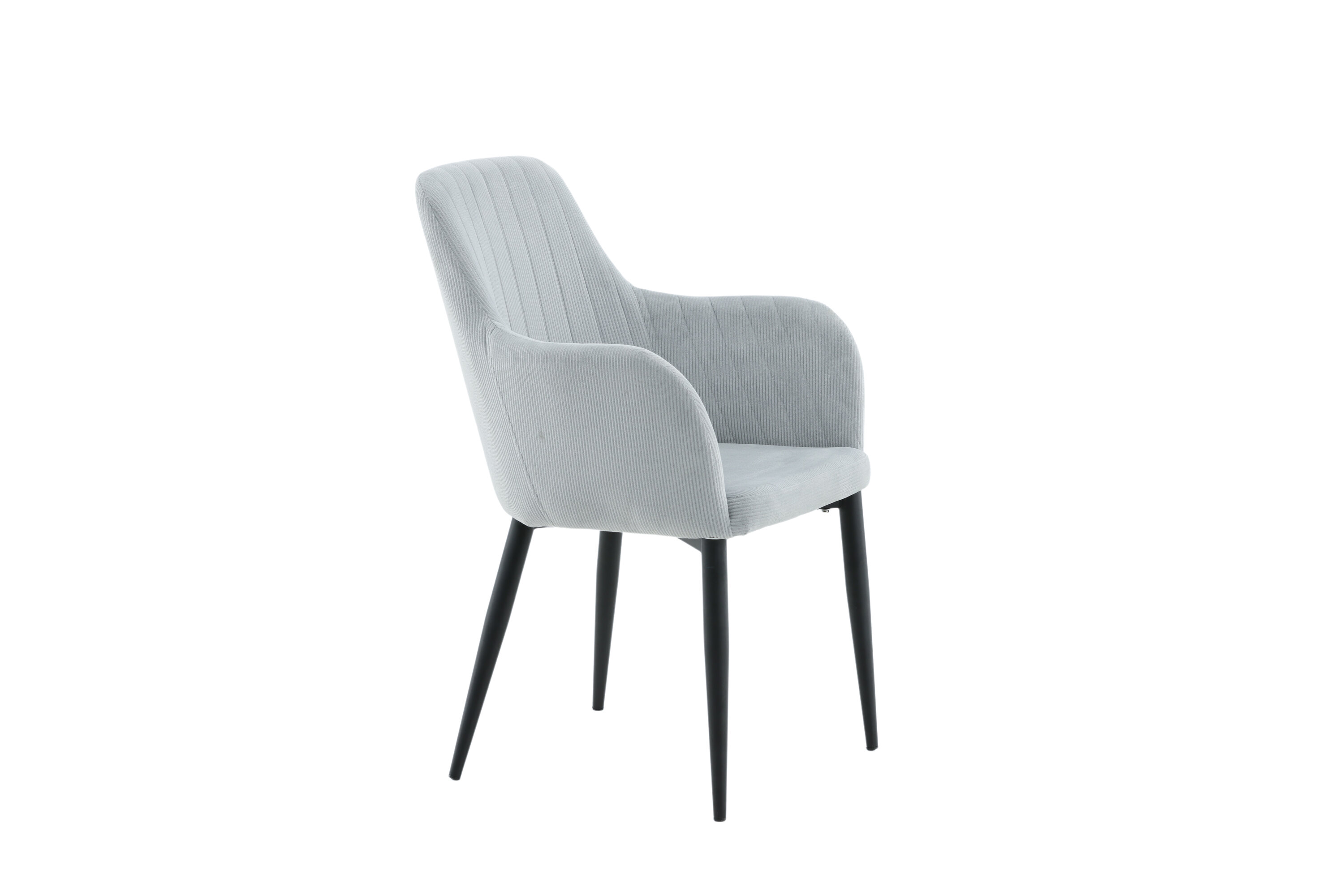 Laissez le design moderne rencontrer la nostalgie des années 50 avec cette chaise en velours tendance de la série Comfort ! Vêtue d'un doux tissu de velours gris qui crée un look moderne pour le cœur de la maison. Les pieds sont en métal noir thermolaqué et le siège avec accoudoirs intégrés en velours gris offre un siège confortable. Les coutures décoratives à l'intérieur du dossier et des accoudoirs ajoutent un détail élégant. Un certain montage est nécessaire.