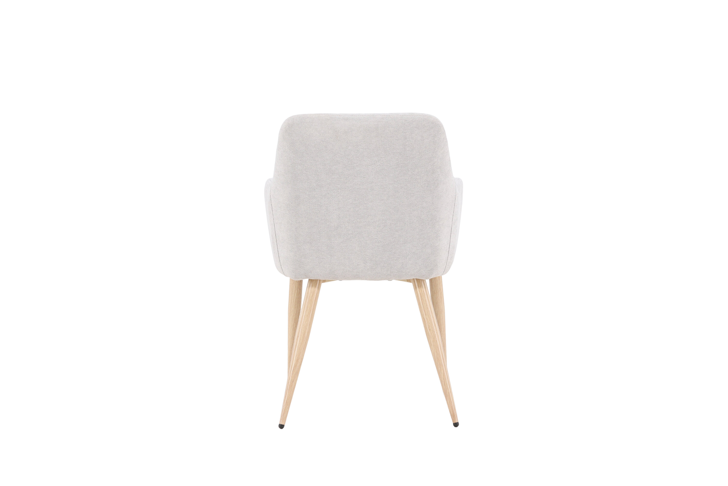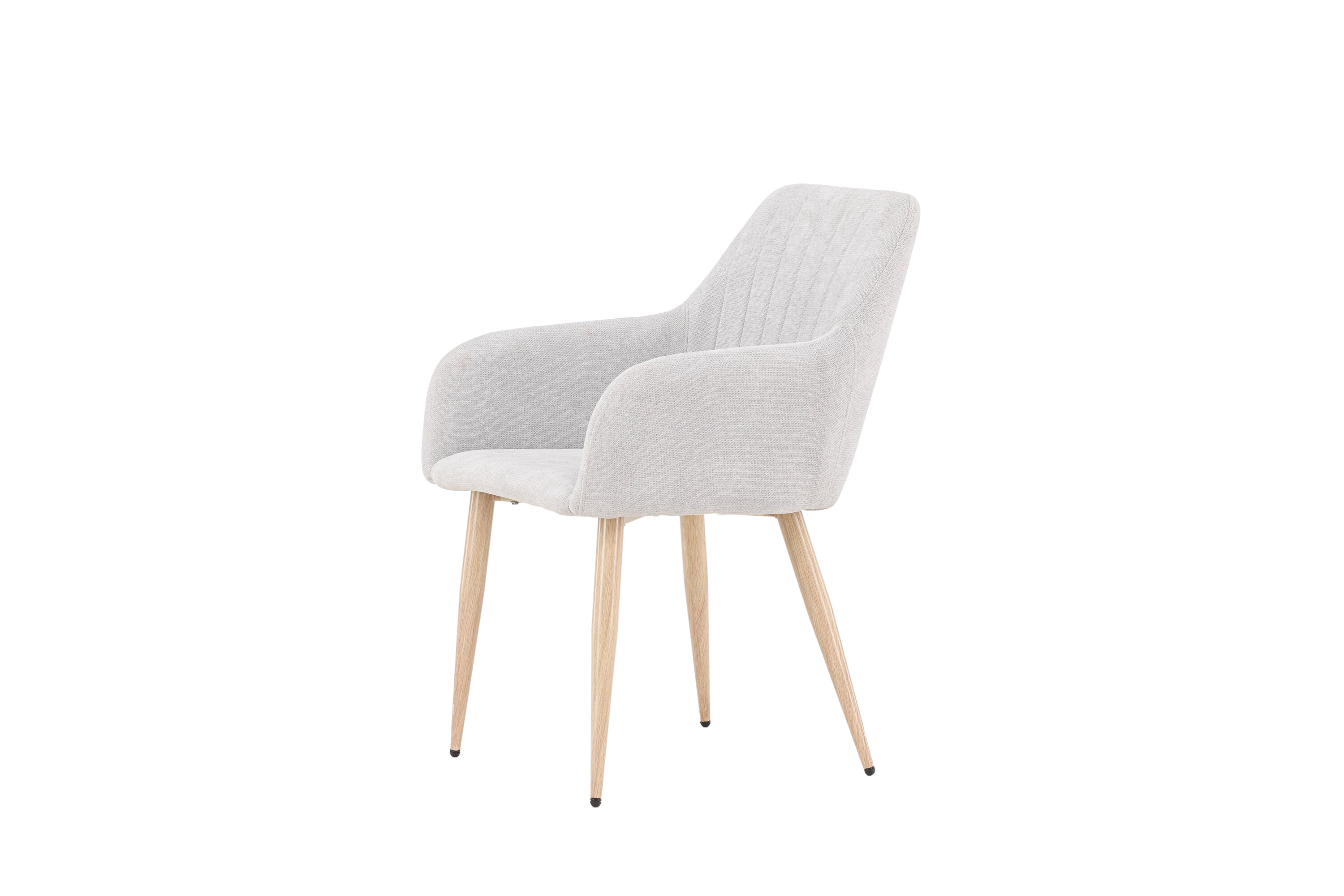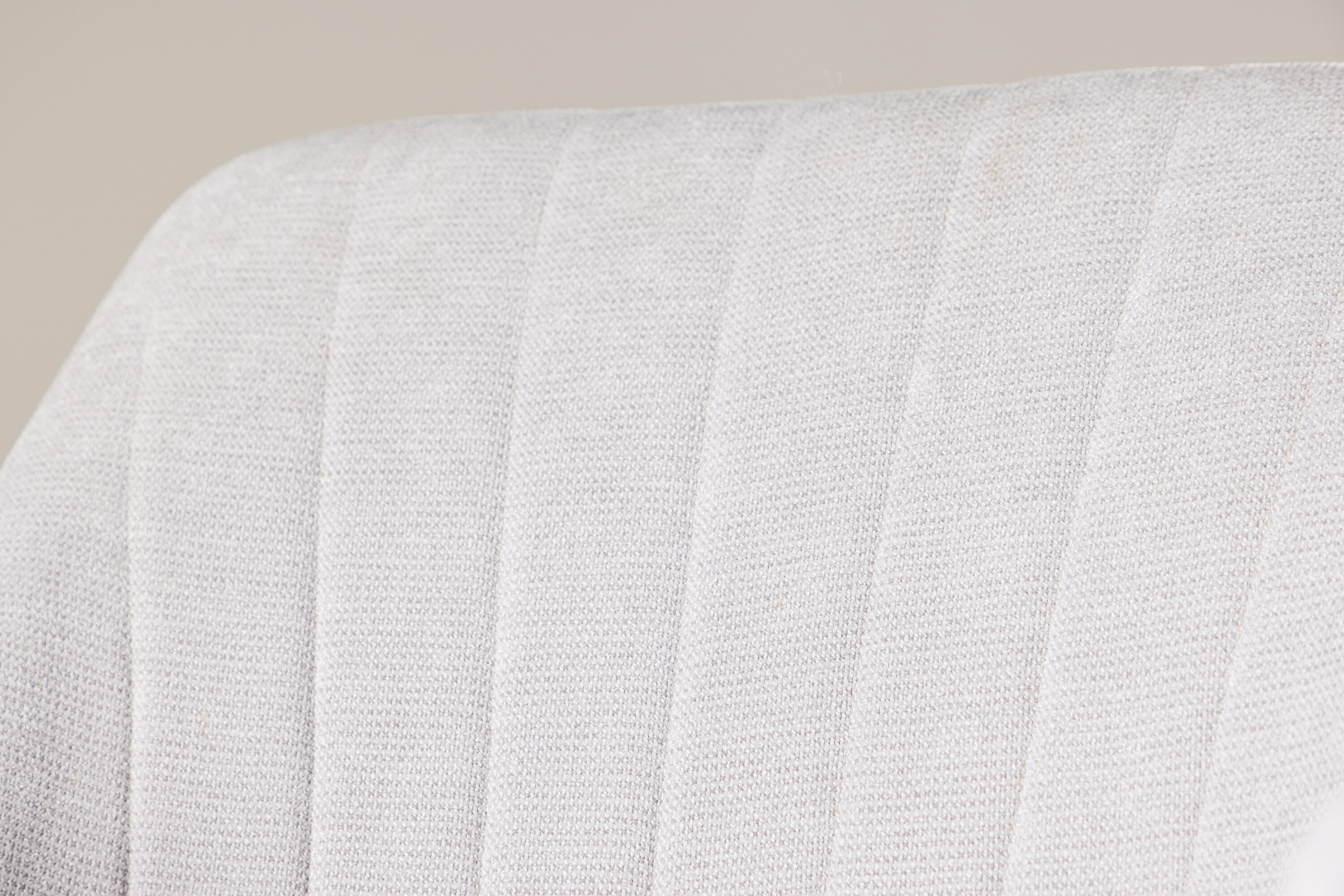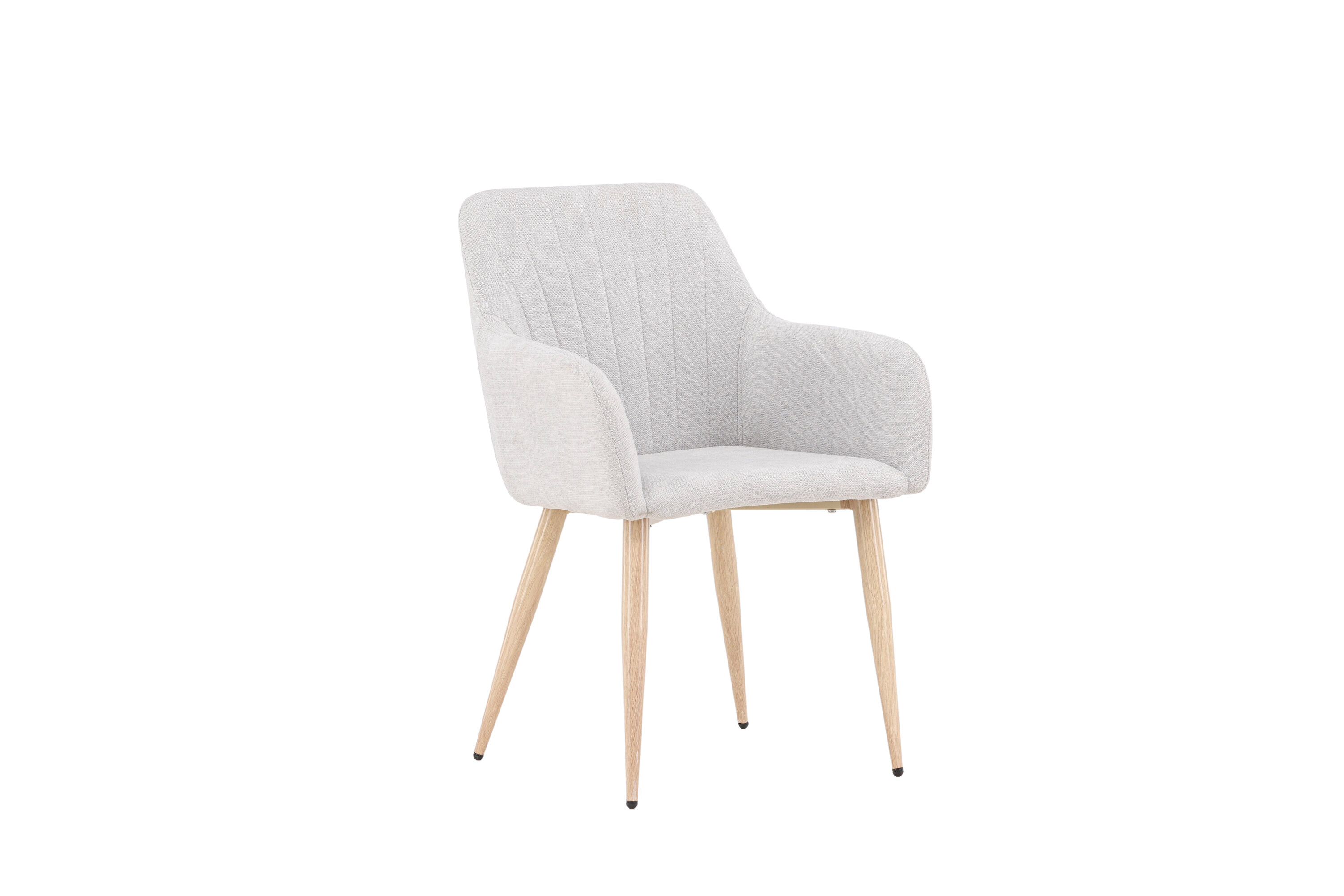 La chaise est faite de lin polyester pour une expérience d'assise confortable et a des pieds en acier pour une stabilité et une utilisation durable.